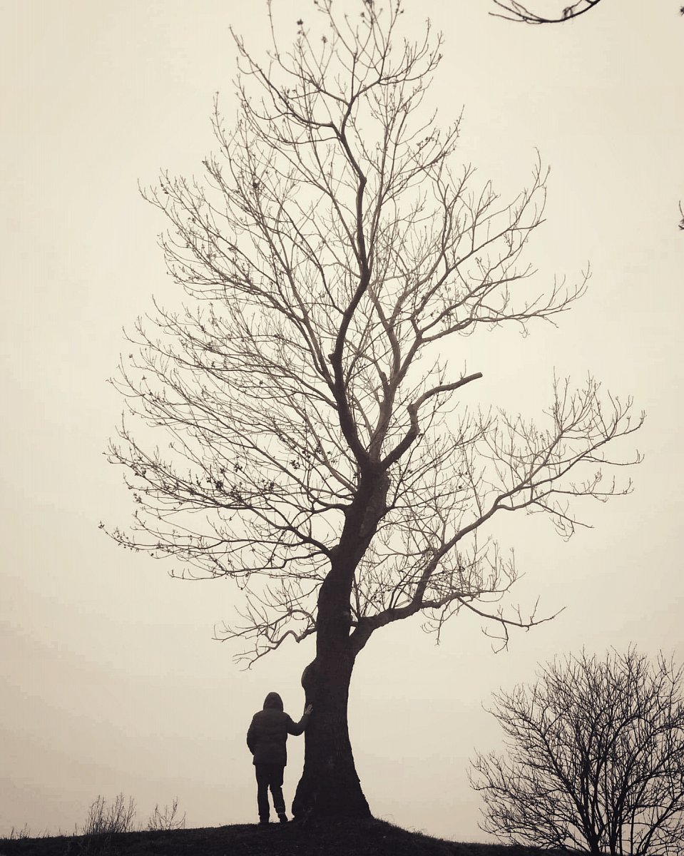 Náš tajemný strom na nás z vršku vzhlížel a my věděli, že dotek jeho kmene k naší pouti patří. Vždyť kdo jiný, než právě stromy nám dodají energii nejen v časech, kdy nám dochází...