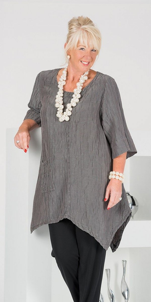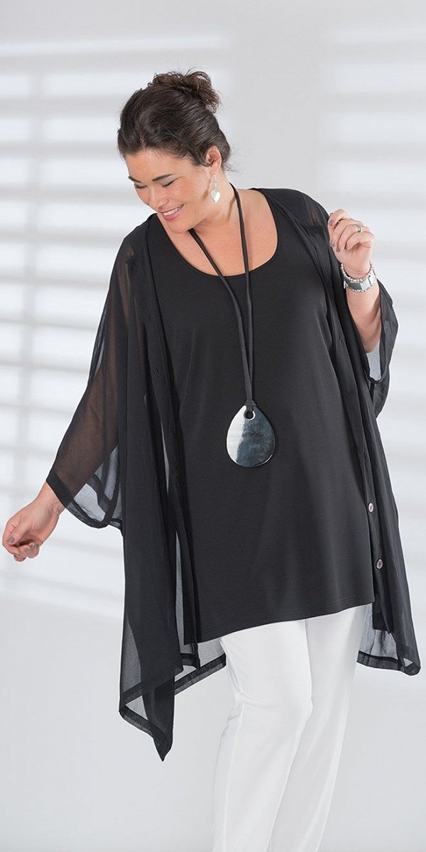 Ženy plnějších tvarů se někdy tohoto volného střihu bojí. Vyjadřují obavy, že v něm budou vypadat jako neforemná almara. Opak je pravdou. Když jde o kvalitní splývavou lehkou látku, naopak často podtrhne přednosti, decentně naznačí, co je na postavě pěkné.