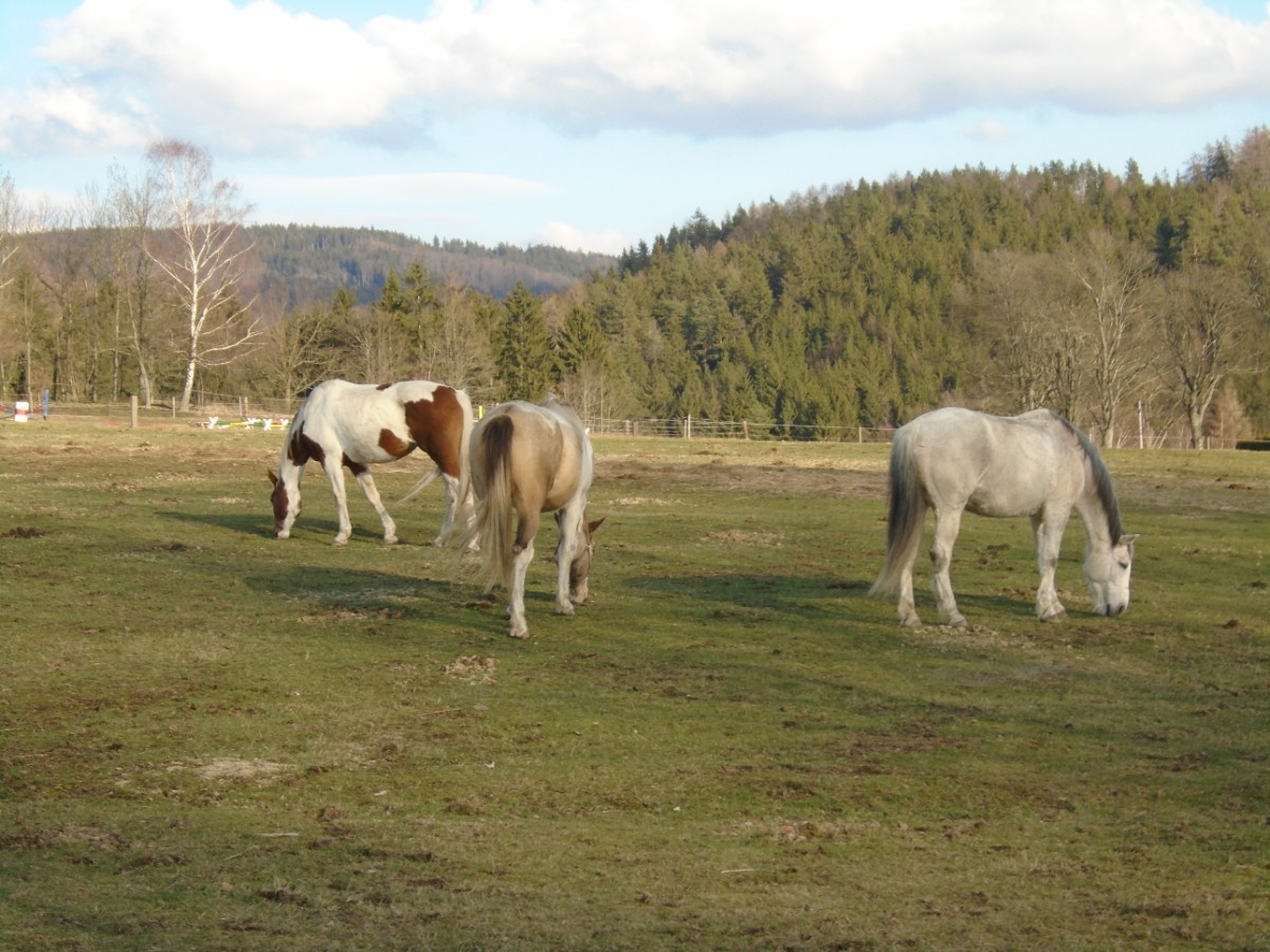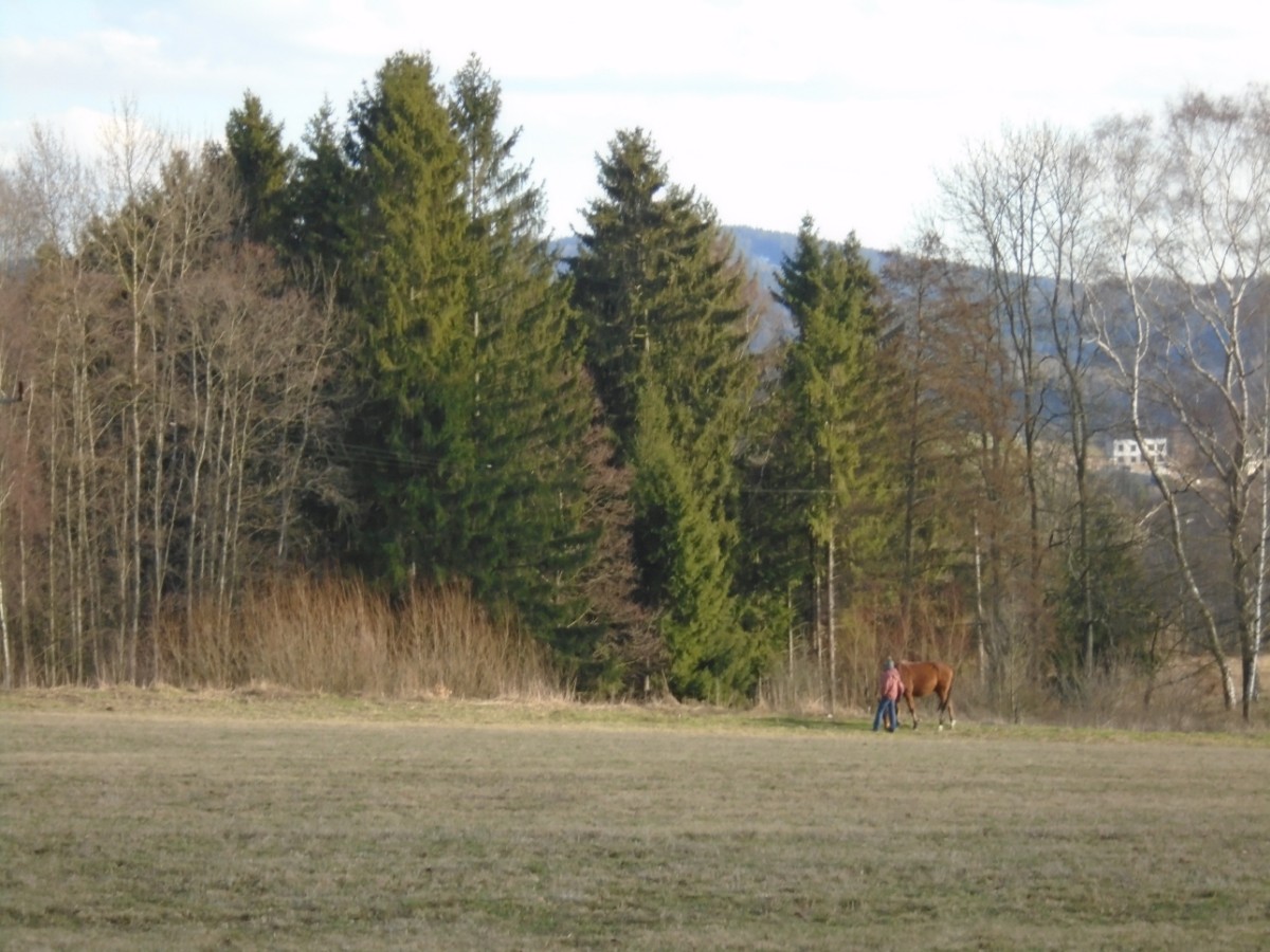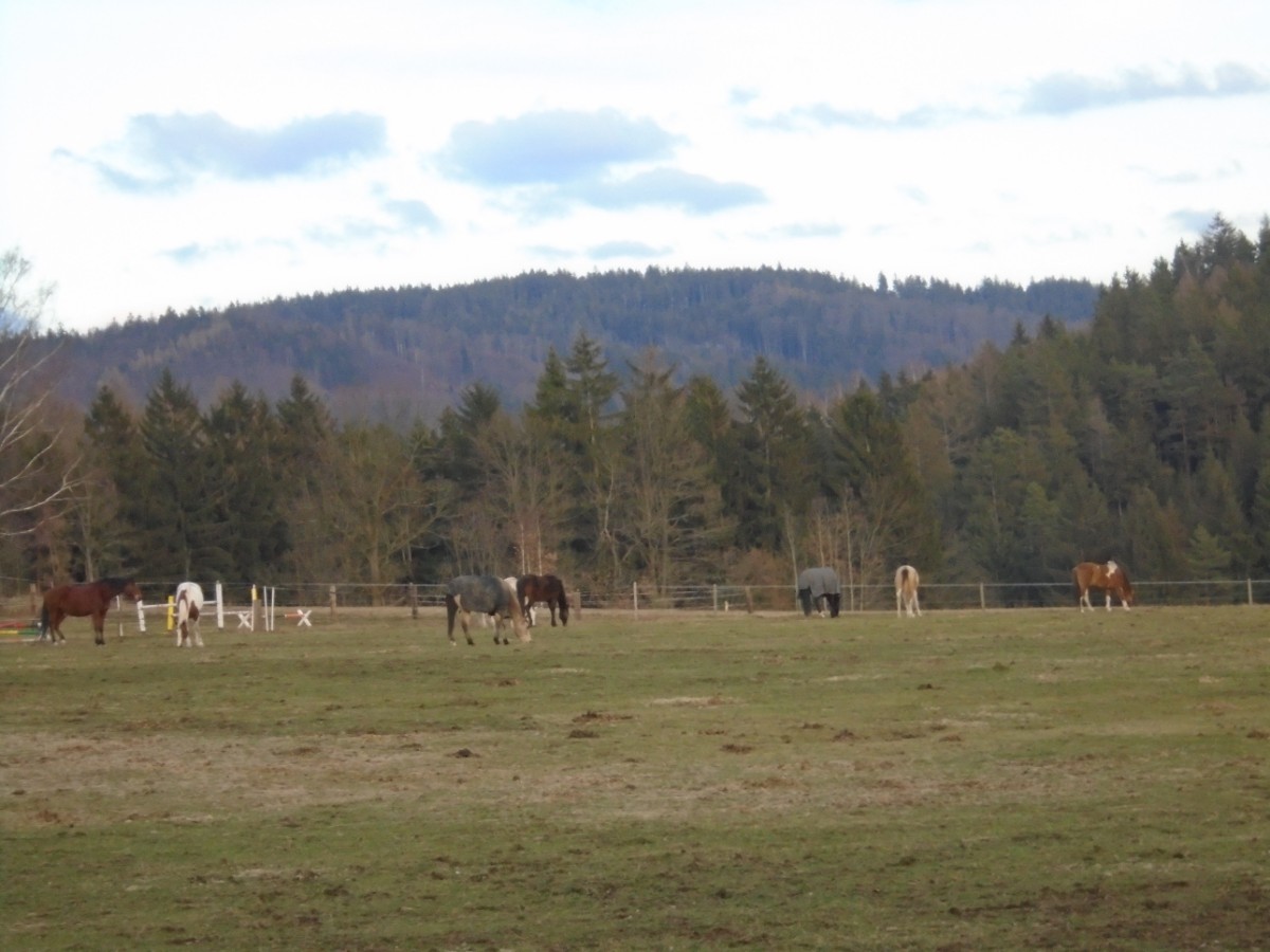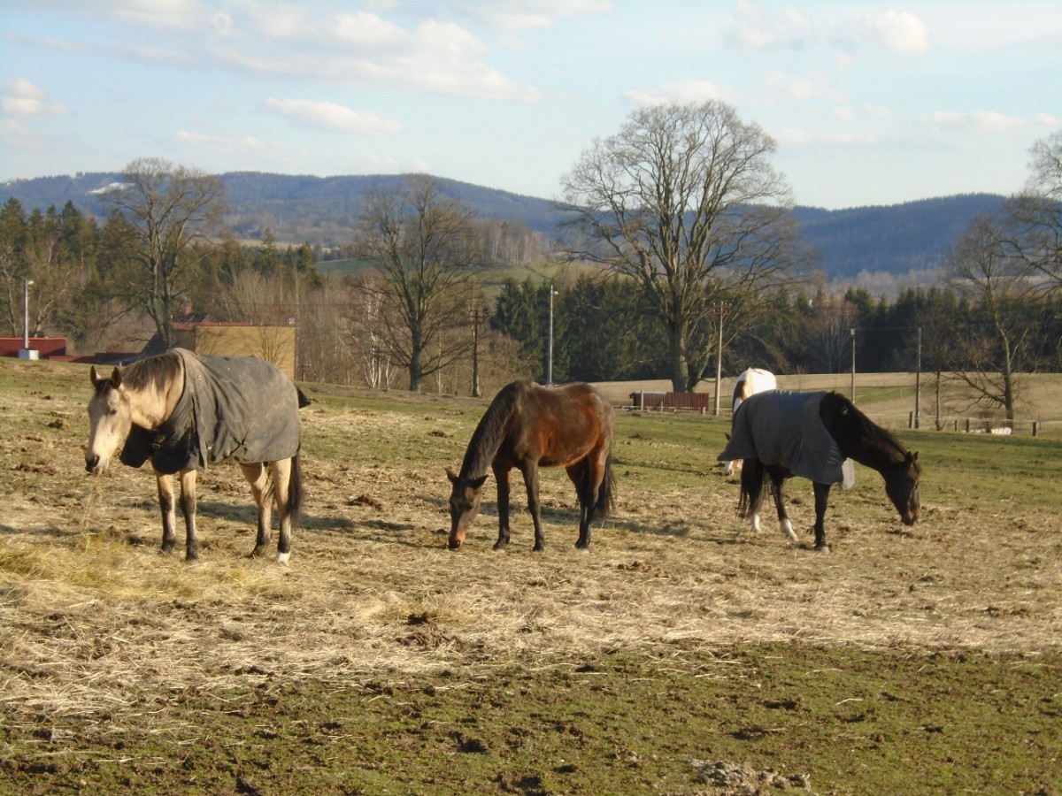 Moje kroky vedly do přírody. Trochu jsem podcenila oblečení, tak po pár desítkách metrů honem zpátky domů a bundičku měním za dlouhý kabát... To byl opravdu dobrý nápad, neboť za hřbitovem hodně a hodně foukalo. Dokonce i někerým koňům v ohradě " oblékli " majitelé ranče koňské deky... Nebudu popisovat každý svůj krok, jsem přesvědčená, že fotogalerie bude mluvit za vše.