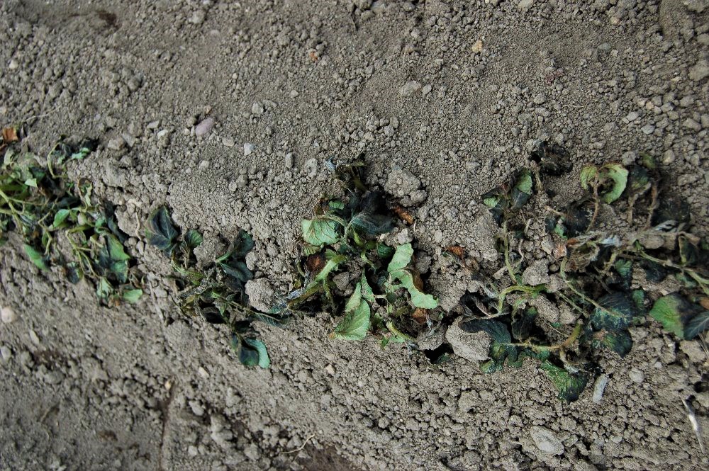 Humus v půdě má krom jiného význam i pro zadržení vody, brání vytváření půdního škraloupu, s takovou půdou se lépe pracuje, zálivková voda se do ní snáze dostává, humus ji i zadržuje (písčitá půda vsákne vodu mnohem snáze než kompost, ale neudrží se v ní). Kompost nebo hnůj zarytý pod jednotlivé rostliny nebo do řádku tedy dokáže lépe hospodařit s vodou než zemina v okolí. To je důležité zejména v době, kdy je vody málo. Okopaný záhon, na kterém se zalévají jednotlivé rostliny nebo jen řádky mají menší spotřebu vody i lidské práce než záhony zalévané plošně. Okopáním či kypřením přerušíme vzlínání vody k povrchu a omezíme výpar, dostáváme do půdy i potřebný vzduch. A tak upozornění na to abyste dali tyčky do míst, kde zarýpáte hnůj či kompost má více významů. První je jasný – víme kam sázet, ale významů je více. Víte, kde máte být opatrní při kypření půdy v době, kdy to ještě jde a kam zalévat v zapojeném porostu. Ještě tomu napomůžete, když uděláte vedle stonku zeleniny ne jedné straně zálivkovou misku. Zbytek záhonu můžete okopávat, v misce jen plít a lehce kypřit. V místě kde se zalévá je více kořenů, takto i snáze a rychleji zálivkou doplníme chybějící živiny.