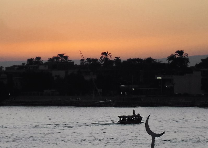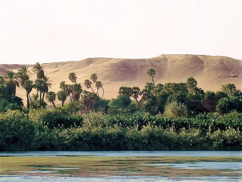 Žhnoucí slunce, proti modré obloze vzhůru se tyčící koruny datlových palem a v dáli na obzoru nekonečná skalnatopísčitá poušť. To je malebný obraz krajiny podél Nilu. Pozorný cestovatel, hovící si pohodlně v křesle na horní palubě přiměřeně luxusní nilské lodi, může občas pozorovat i malá stádečka skotu či oslíků, pasoucích se při pobřežních mělčinách a občas i pár felláhů v dlouhých galábijích, pachtících se na svých skrovných políčkách, či odpočívajících ve stínu datlovníků na břehu této majestátní řeky.