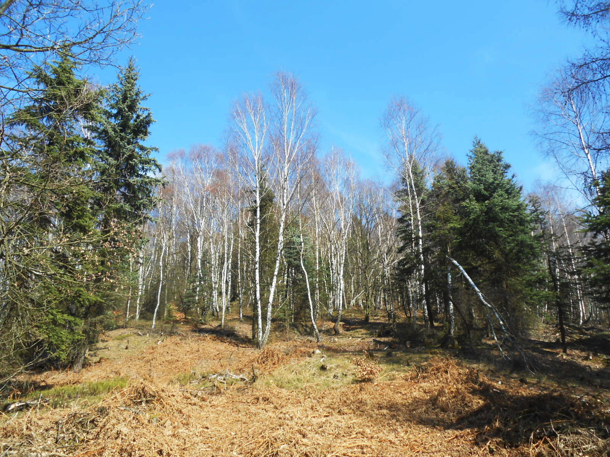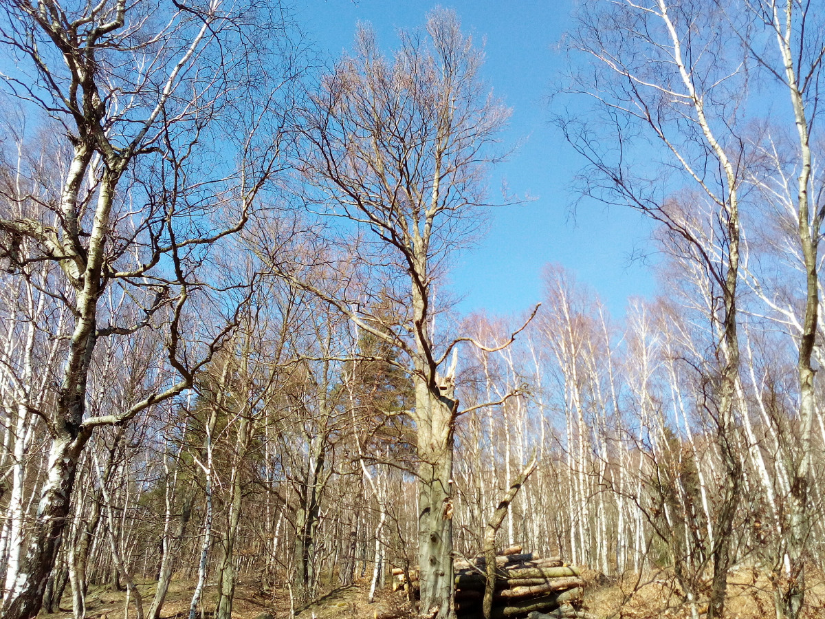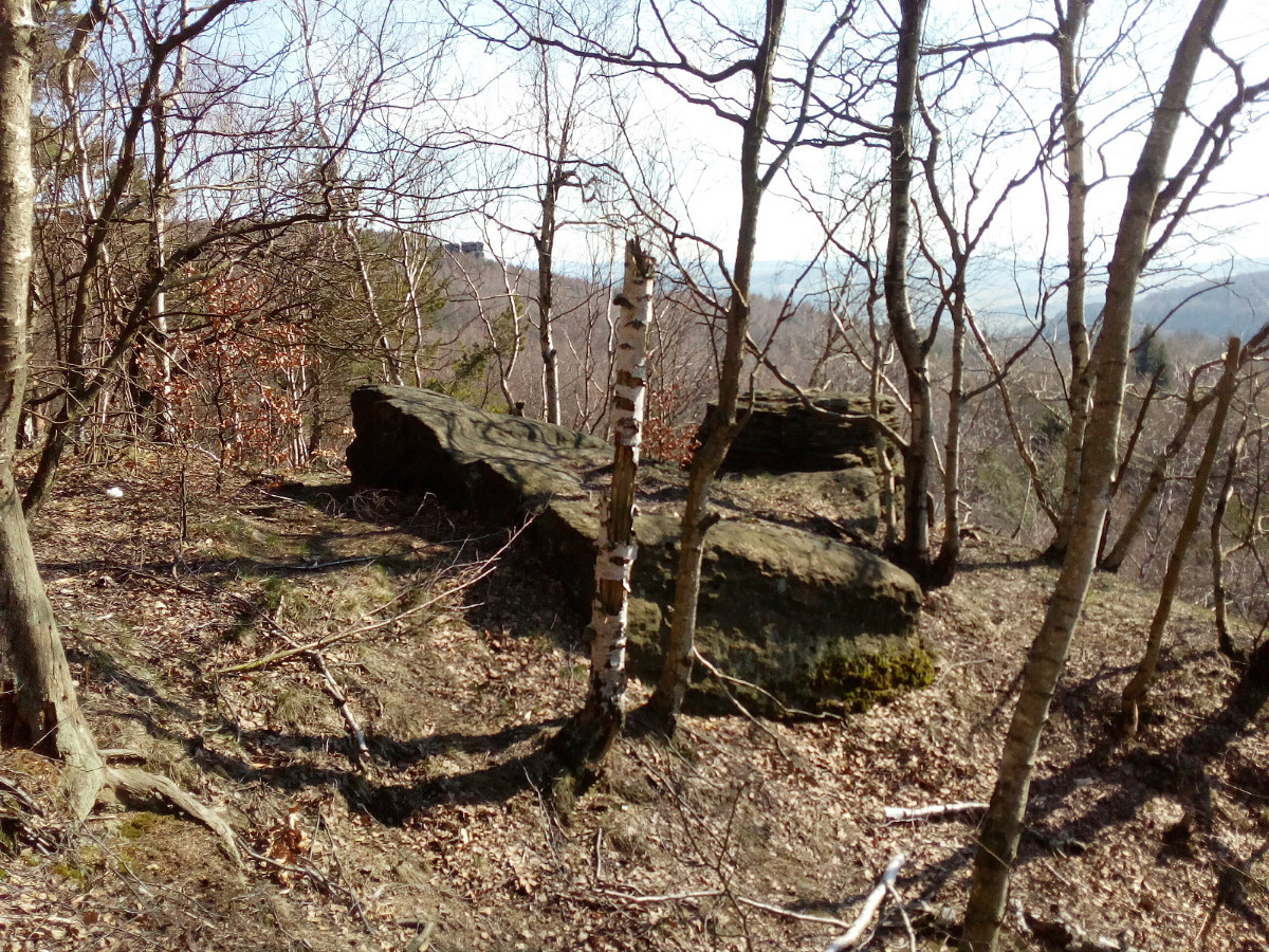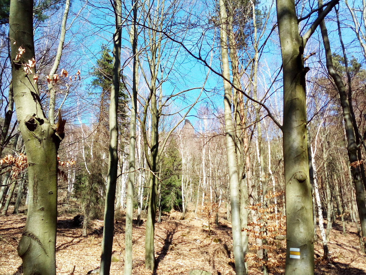Krásné nedělní dubnové odpoledne nás opět vyhnalo do přírody. Tentokrát jsme zvolili les. Je to les v Tiských skalách, kam chodíváme na podzim na houby. Terén je to spíš pro kamzíky, takže jsme tentokrát šli jen po cestě. Příroda a zima se k lesu nezachovaly moc přívětivě. Vítr způsobil polomy, všude spousta větví a listí. Listí je v pořádku, je to smíšený les, ale s vyvrácenými stromy budou mít lesníci dost práce.
