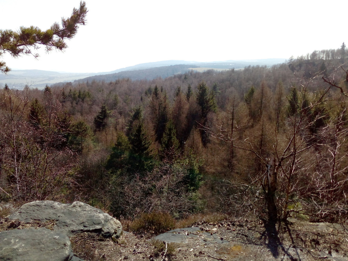 A bylo to tak. Opravdu jsme potkali celkem asi 8 lidí, jinak jsme les měli sami pro sebe. Cestou domů jsme neodolali a vyjeli jsme ještě nahoru ke skalám, takže jsem se pokusila o pár fotek z výšky směrem na Středohoří. Snad vás trochu potěší procházka dubnovým lesem. Fotek je zase trochu víc, ale les si zaslouží více pozornosti.