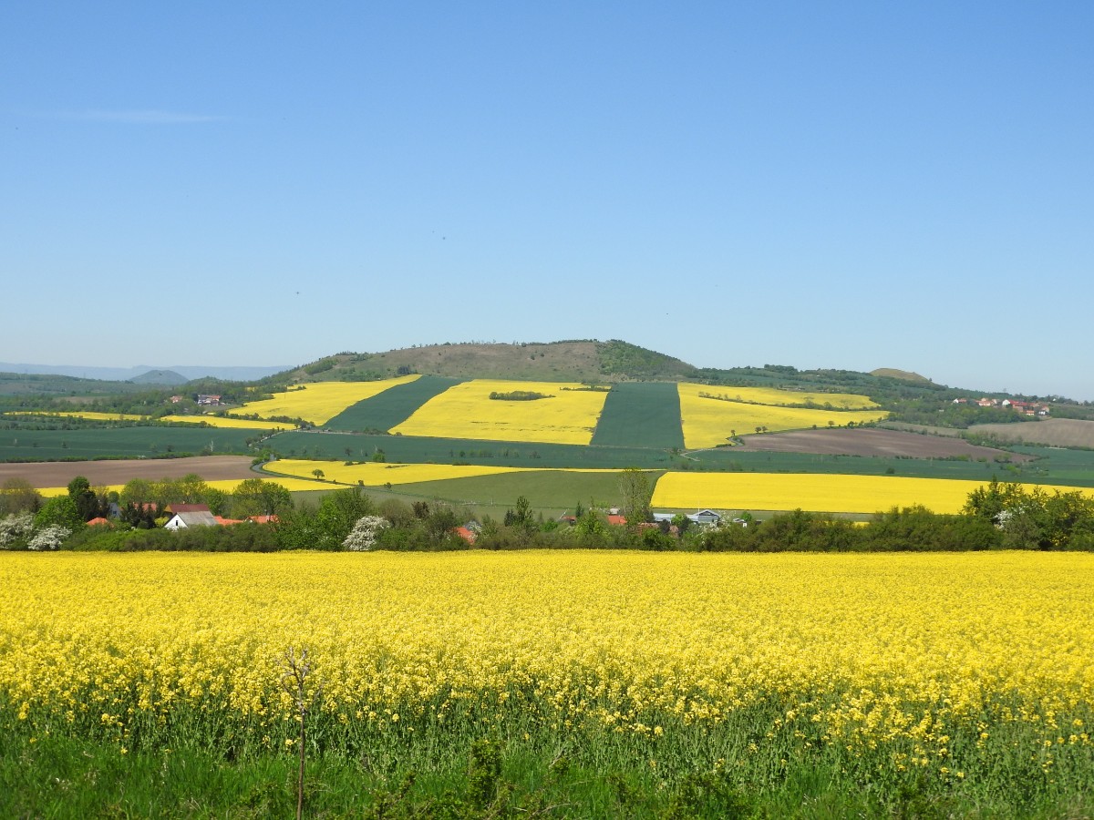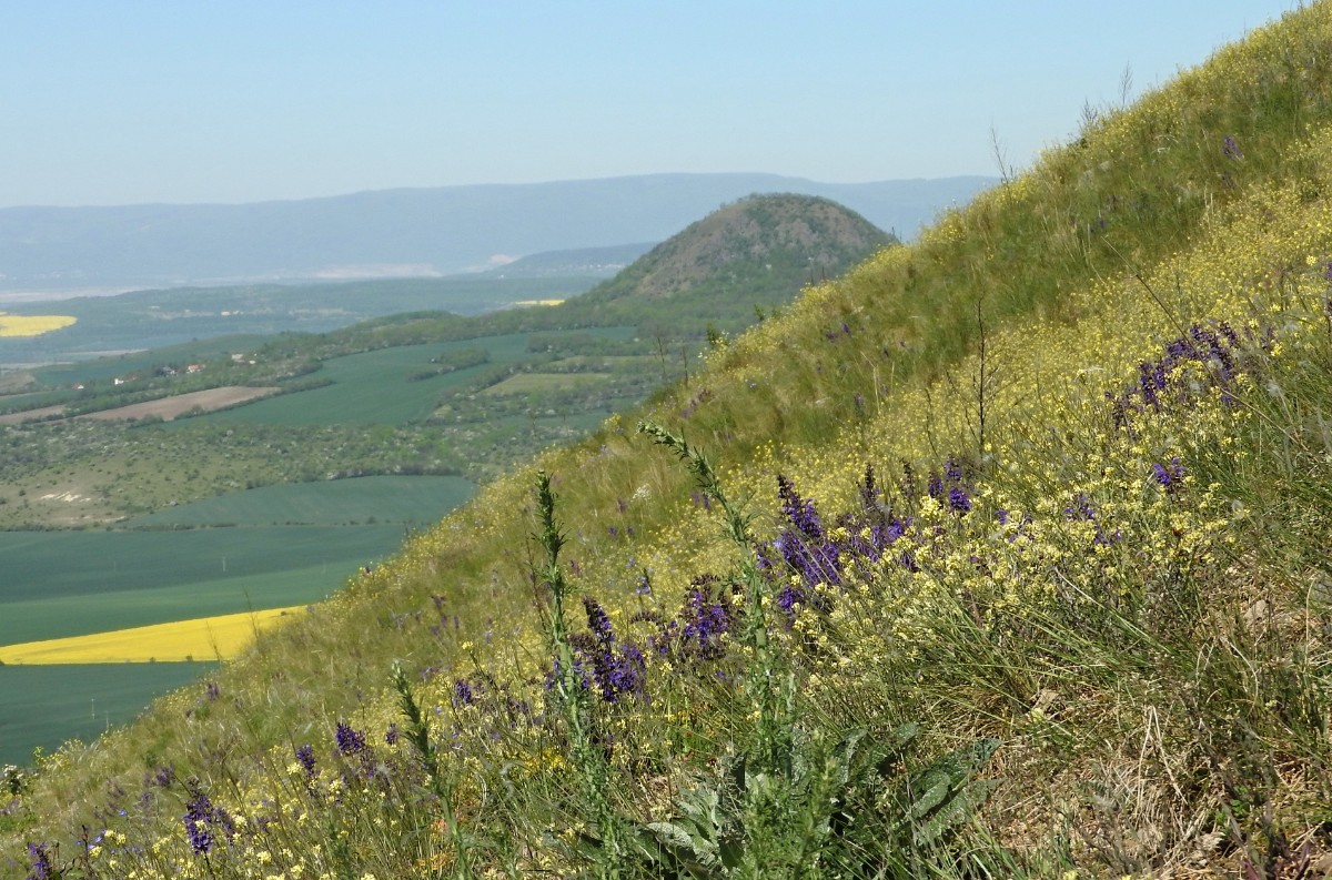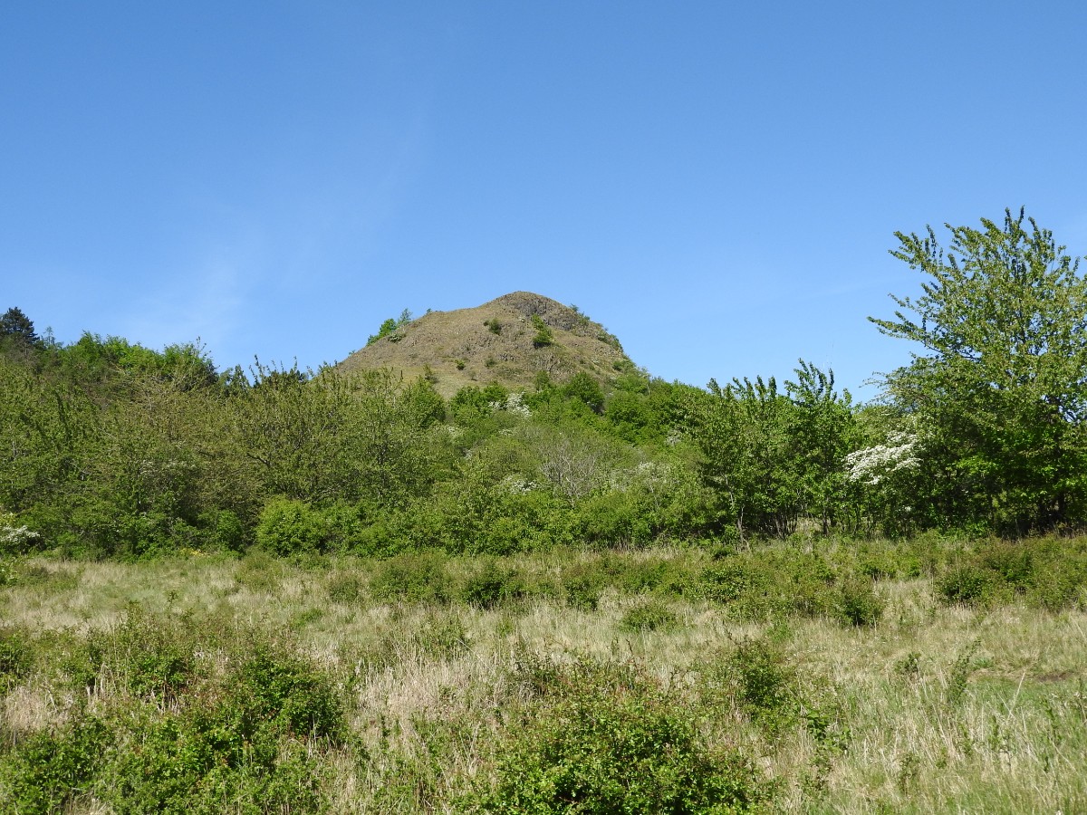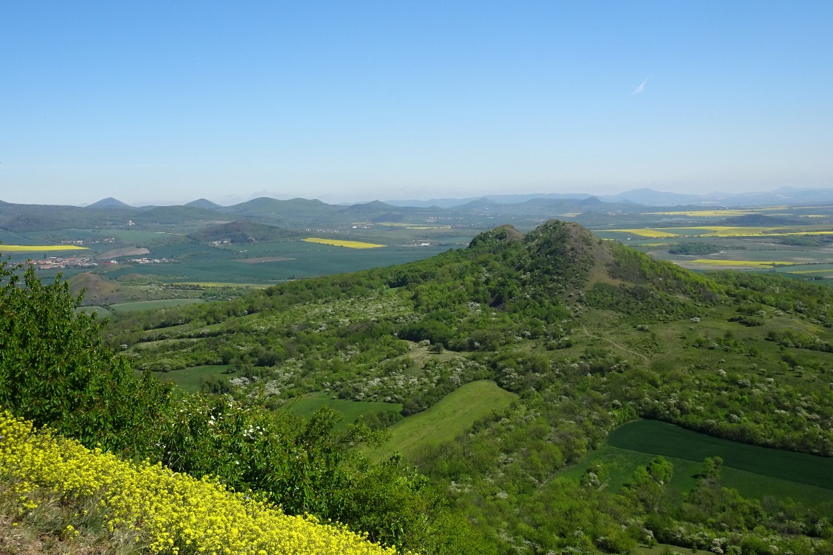 Můj výlet započal u autobusové zastávky v obci Raná, ze které máte Oblík pěkně před sebou a víte, do čeho jdete. Poté, co překonáte živou silnici, pustíte se polní cestou k hoře. Zvolna stoupáte už odkvetlými starými třešňovými sady vzhůru. Cesta se stáčí doprava a brzy narazíte na zelenou turistickou značku od Loun. Kamenitá cestička se zužuje a kroutí jako hádě. A co je hlavní, nutí vás zhluboka dýchat a nabírat do plic rozmanité jarní vůně. Oči nemůžete odtrhnout od neuvěřitelné směsi barev. Nahoře kvete poslední trs hlaváčků. Nezapomeňte se zastavit u energetického bodu a vyzkoušet jeho sílu. Vrchol nabízí překrásné pohledy na České středohoří a jižně na Louny. K západu jako na dlani máte další magické kopce - Ranou a Milou. Východním směrem do střapatého středohorského obzoru míří další dva kopce, s Oblíkem tvořící řadu - Srdov (482 m) a Brník (371 m). Sedím v suché trávě, popíjím kávu z termosky, dělím se s mravenci o svačinu, kolem poletuje otakárek. Nemůžu se vynadívat a rázem se rozhoduji prozkoumat, jestli se dají Srdov s Brníkem obejít. Na Srdov jsem se už jednou pokoušela vylézt, ale přiznám se, že od vrcholových skalisek jsem se vrátila zpátky dolů.