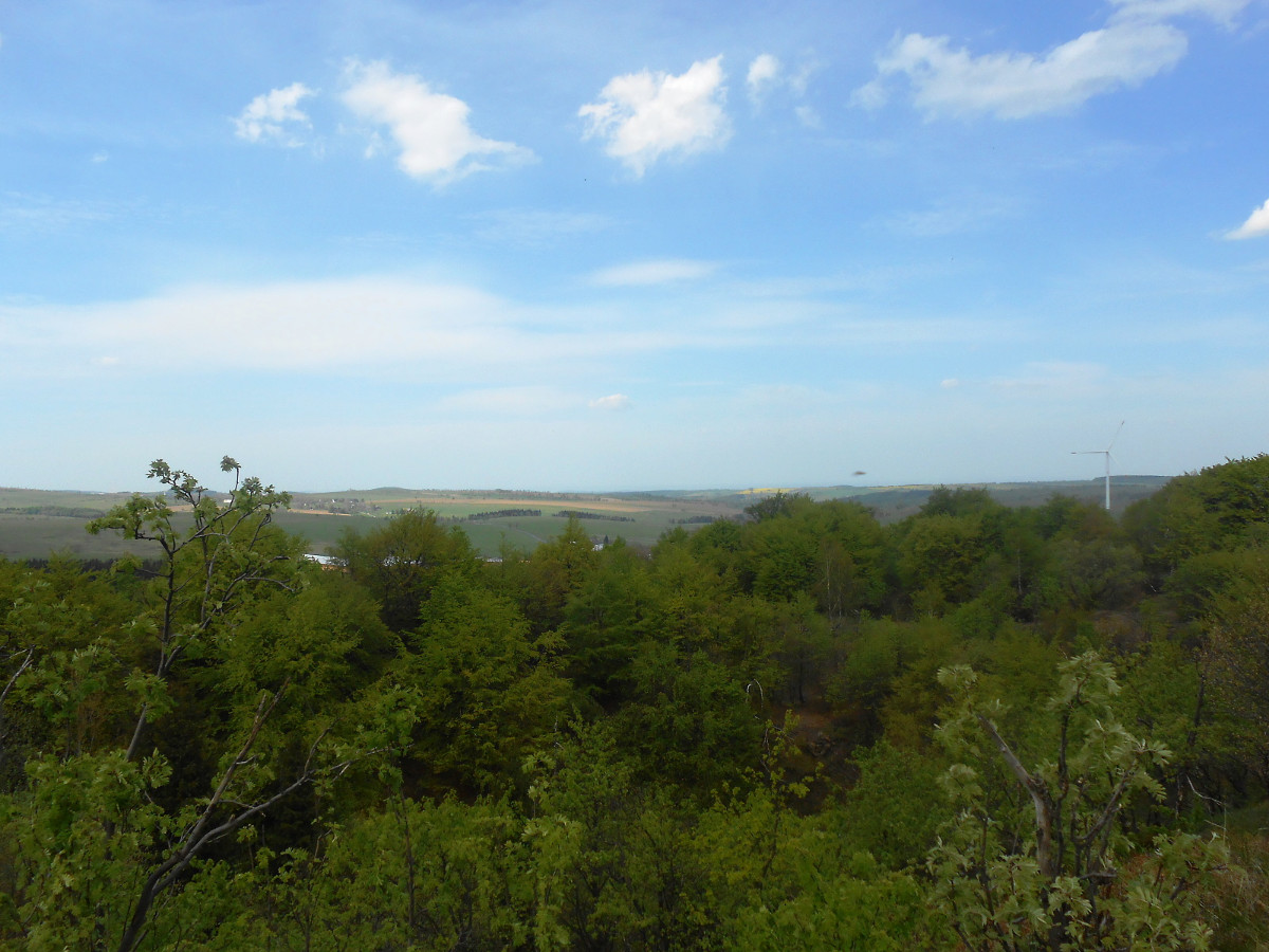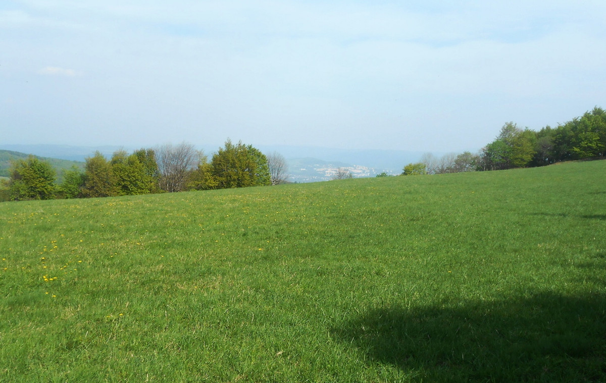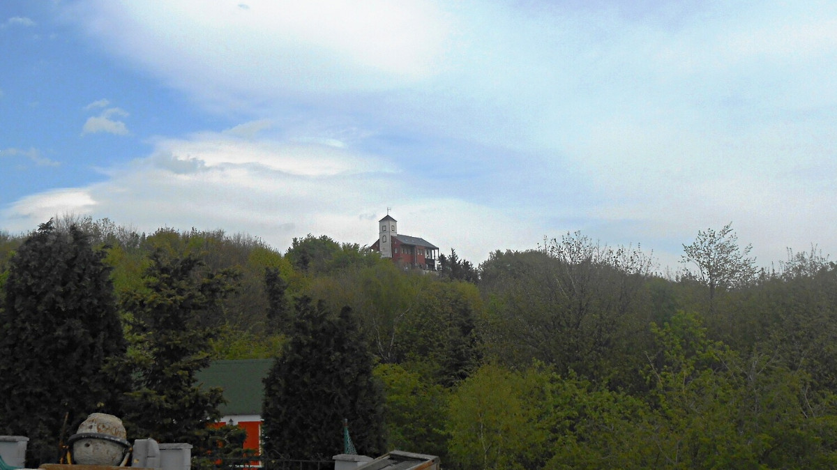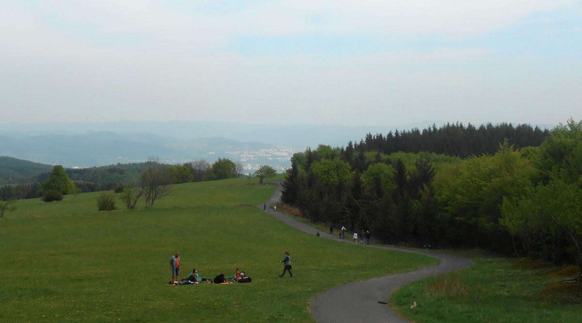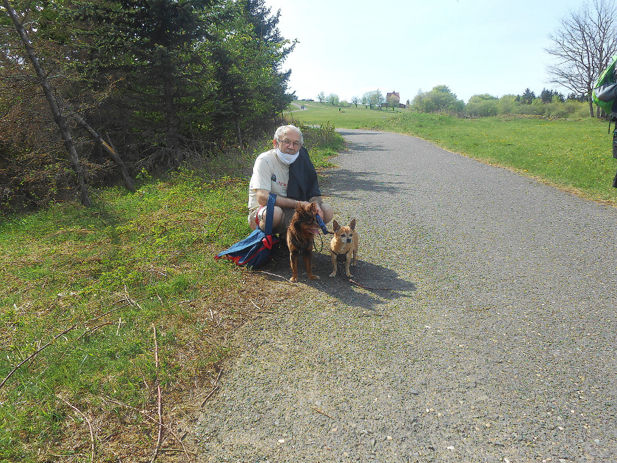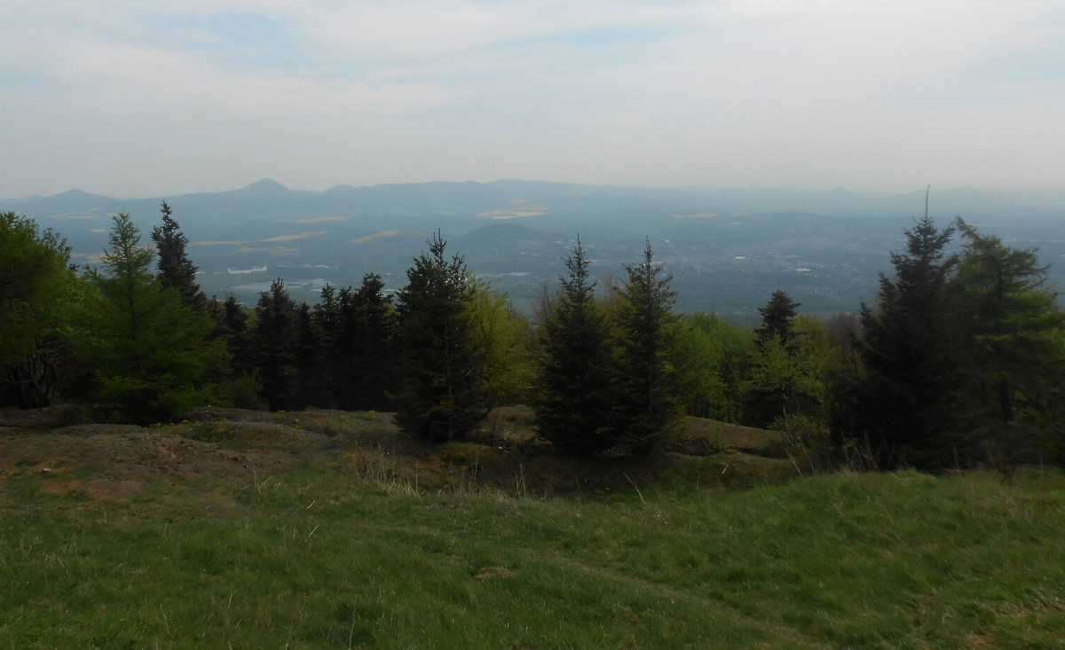 Jak jsem už napsala, já, Petr a pejsci jsme se vydali od kaple na kopec pěšky. Nebylo to daleko, počasí  krásné, jako stvořené pro výlety. Cestou jsme potkávali spoustu lidí, motorek a aut. To je bohužel daň, kterou platíme za současnou situaci. Nahoře jsme se po nějaké době sešli s Ondrou, Jitkou, Aničkou a její kamarádkou Kájou. Prošli jsme se po okolí, které je docela rozlehlé, takže jsme o lidi naštěstí nezakopávali. Strávili jsme spolu krásné odpoledne, vadou na kráse byl zamlžený obzor. Jedna zajímavost, když jsme se nastěhovali na naše sídliště, na Komárku jsme viděli z okna ložnice. Dnes je všechno zarostlé stromy, ale z kopce naše sídliště v Ústí vidět bylo.