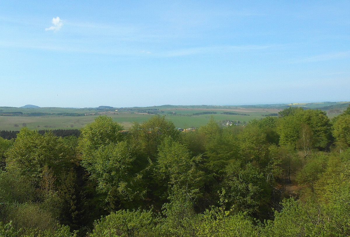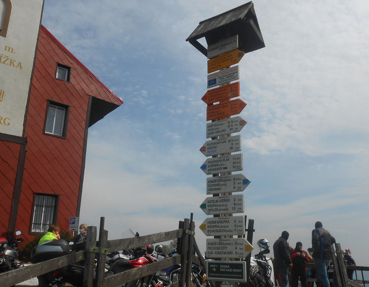 Páteční volný den 8. 5. 2020 jsme využili k rodinnému výletu na nedalekou Komárku, tedy Komáří vížku. Naposledy jsme tam byli před mnoha lety, to byly děti ještě malé. Tentokrát jsme se domluvili se synem, že bychom si udělali rodinný výlet a tak se také stalo. Na Komáří vížku se lze dostat několika způsoby. Ti zdatní turisté pěšky z Krupky, ostatní sedačkovou lanovkou z Bohosudova, anebo autem až nahoru. Mladí zvolili lanovku a my jsme s pejsky vyjeli pod kopec nedaleko Kaple sv. Wolfganga. Dál jsme šli už pěšky.