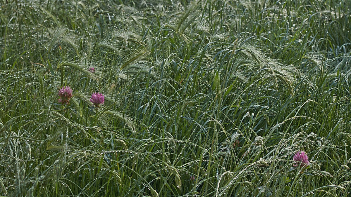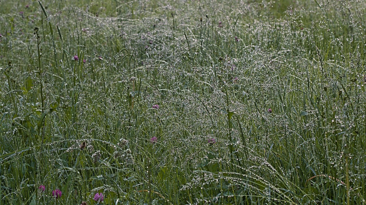 Kolem šesté hodiny jsem vyrazila z domova. Než jsem stačila dojít na louku, mlha se rozplynula. Na každém stéblu trávy i lučních květech se třpytily drobné i větší kapičky blahodárné vody. To byla paráda. Při návratu domů jsem ještě vyfotila květiny na záhonku před panelákem .