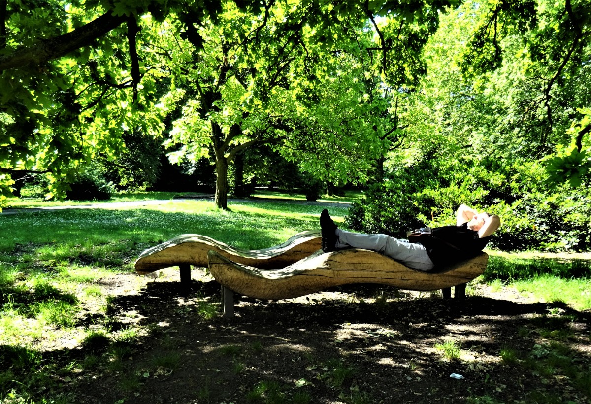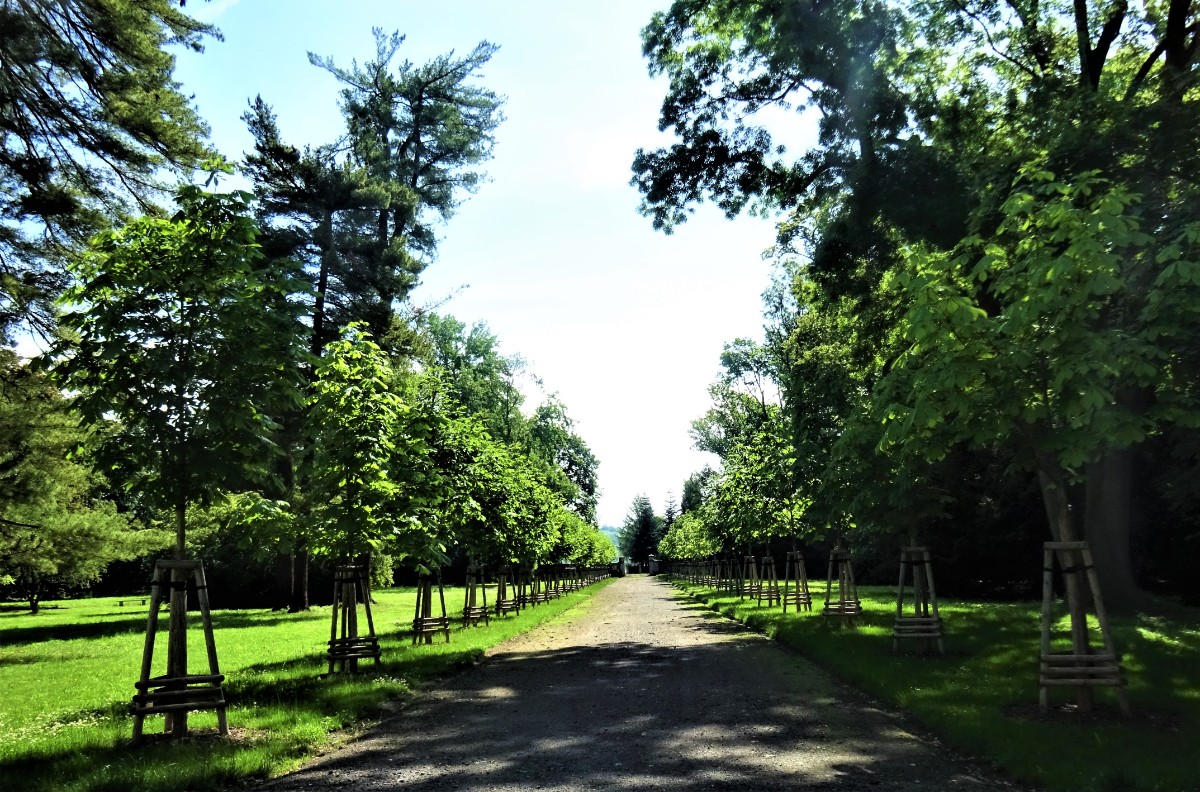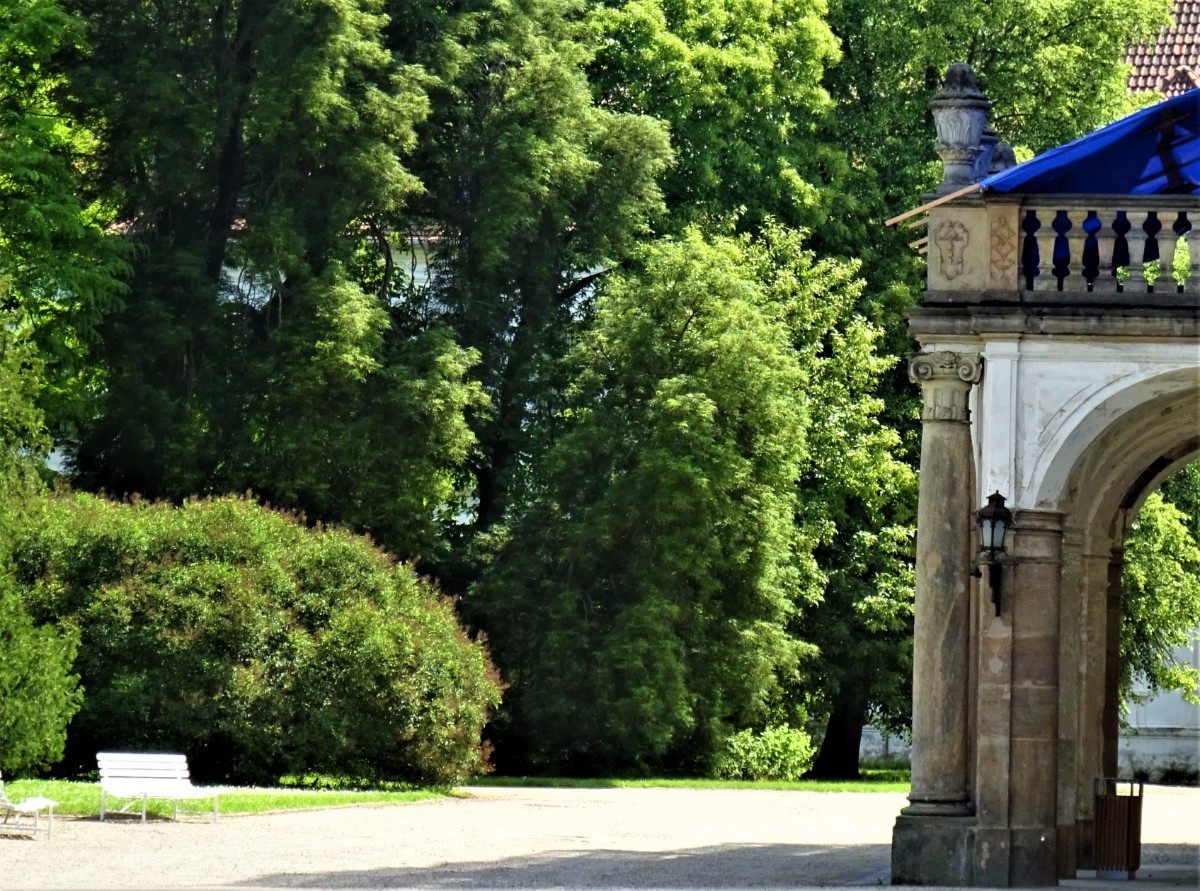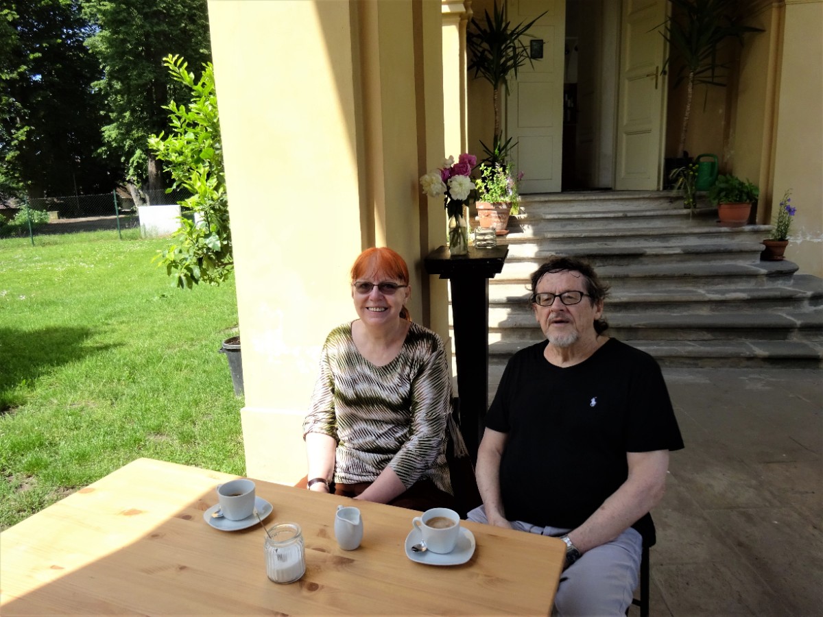 Můj průvodce prožil okamžik hlubokého zklamání při zjištění, že zámek se opravuje, a neuvidím ho tedy v celé jeho nádheře. Uznal ale také, že je to lepší, než kdyby dále chátral. I tak jsem ho viděla velkou část. Moc se mi líbil. Okouzlil mě i členitý park s řadou dekorativních prvků. Pávi nás většinou míjeli bez zájmu; pouze jeden dostál svému poslání a naparoval se jaksepatří. Prohlídku jsme zakončili opět u výborné kávy. Snažili jsme se, aby na fotkách pokud možno nebyly plachty, ohrady, míchačka a další předměty nezbytné při rekonstrukci budovy.