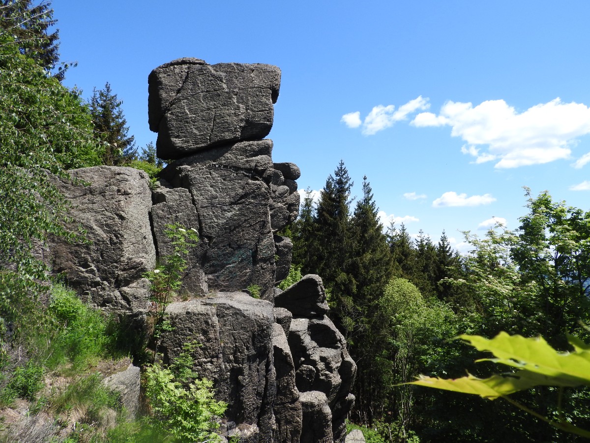 Silnice nad Kláštercem pokračuje pěkně vzhůru. Ve stoupání jsme minuli skalní útvar ve tvaru sfingy. Naším dalším cílem je bývalá hornická obec Měděnec. Zajímavý je vrch Mědník (910 m) nad ní s kaplí Neposkvrněného početí Panny Marie z roku 1672. Vzrušující je skutečnost, že vrch je provrtaný štolami, neb se zde po staletí dobývala - krušila - stříbronosná a měděná ruda. Kamínek, který jsem si přivezla, má pěknou měděnou barvu. Dnes je veřejnosti přístupná štola Marie Pomocné.