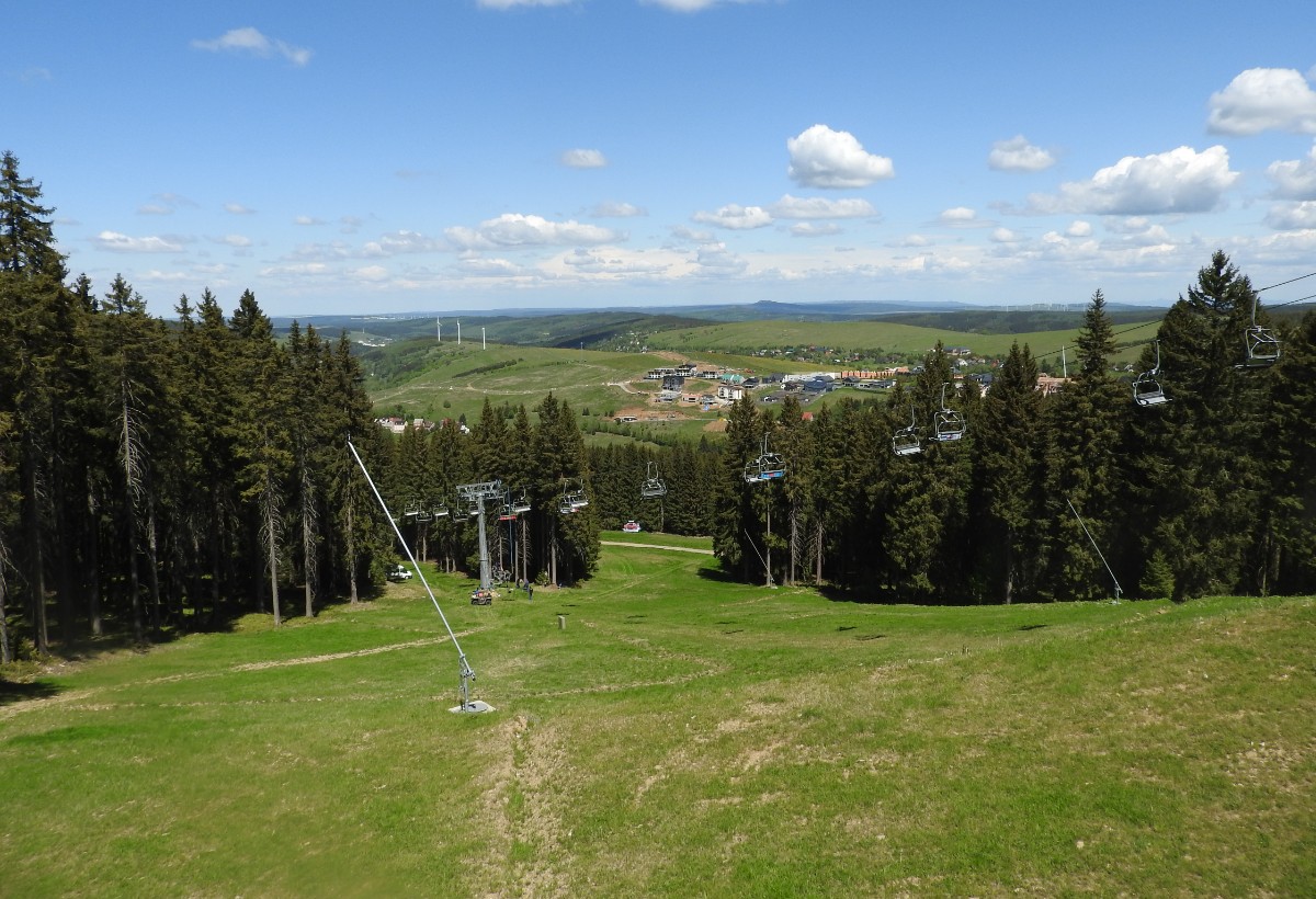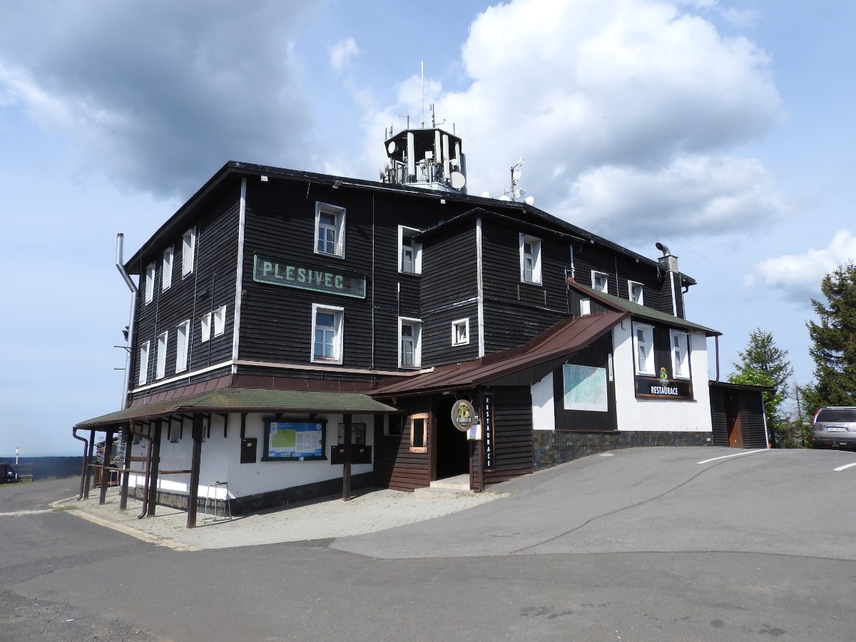 Před dojezdem do Zeleného domu nás čeká ještě nejvyšší vrchol Krušných hor - Klínovec (1244 m). Je pohodlně přístupný po silnici. Otvírají se z něho krásné výhledy i do Německa, které je odtud co by kamenem dohodil. Z množství lanovek a vleků je vidět, že vše je tu podřízené zejména zimní sezóně. Žalostný pohled skýtá kdysi honosný horský hotel a je těžko pochopitelné, jak se může nechat něco takového dopustit. Kamenná rozhledna byla bohužel zavřená.