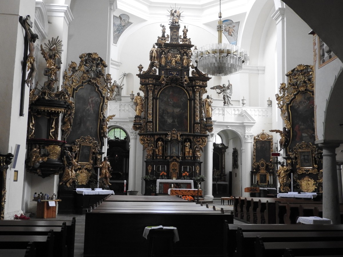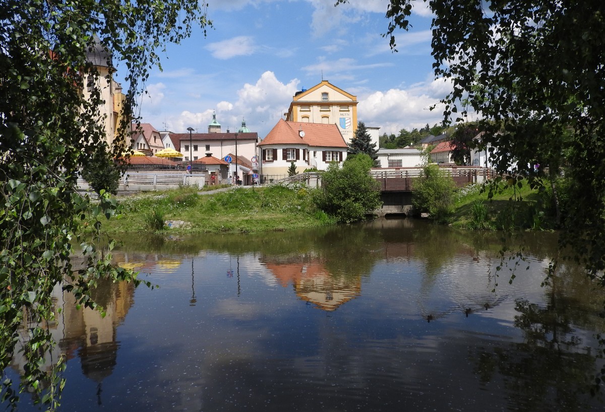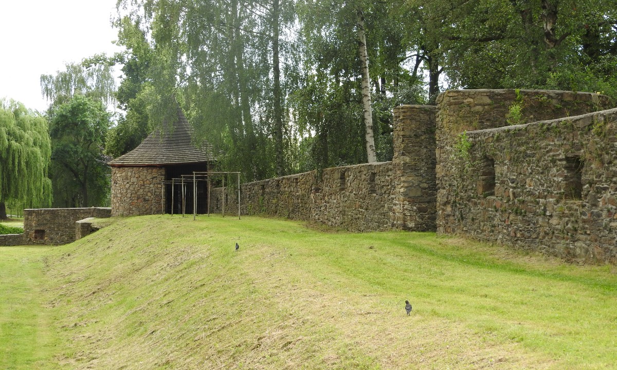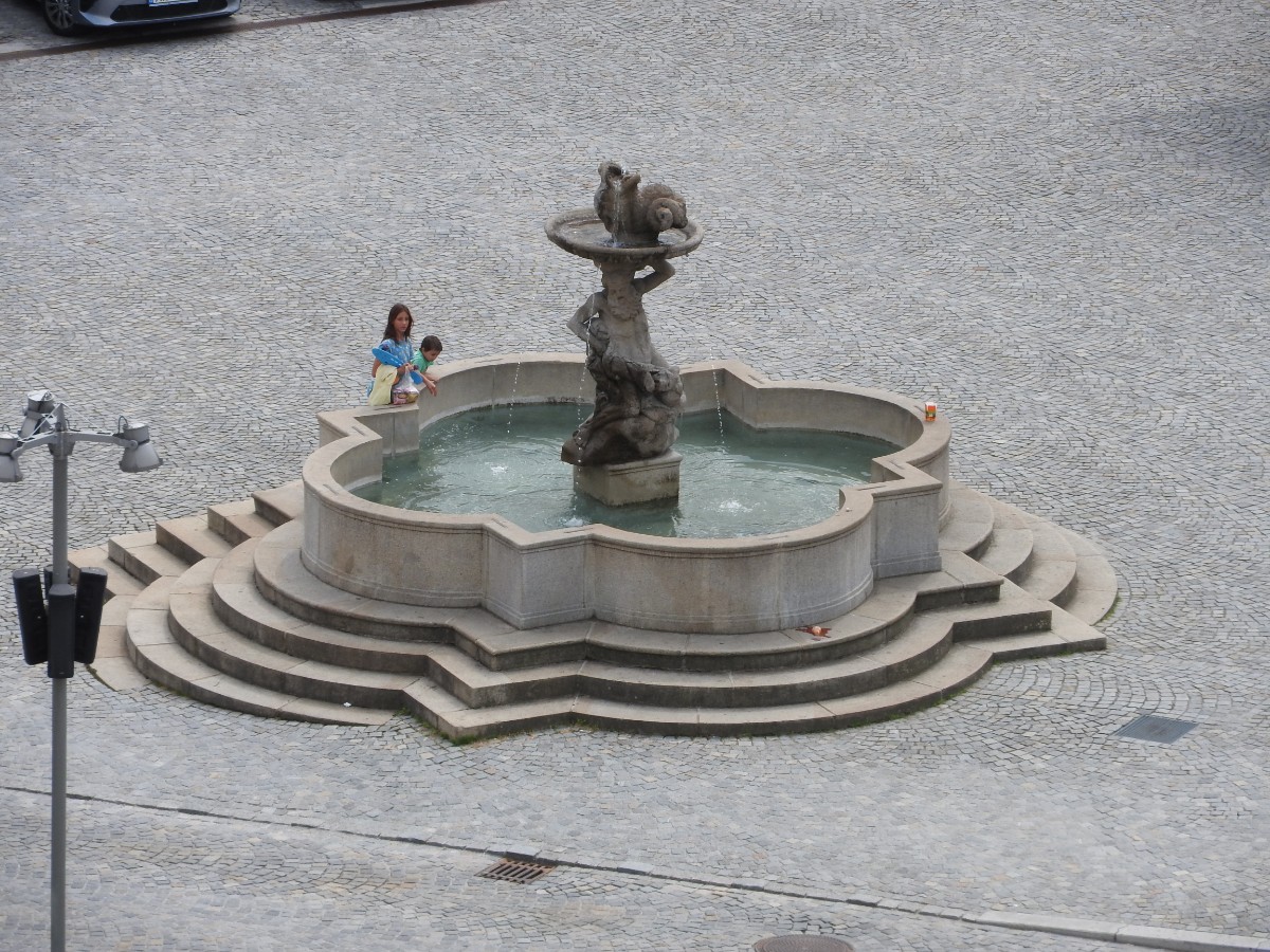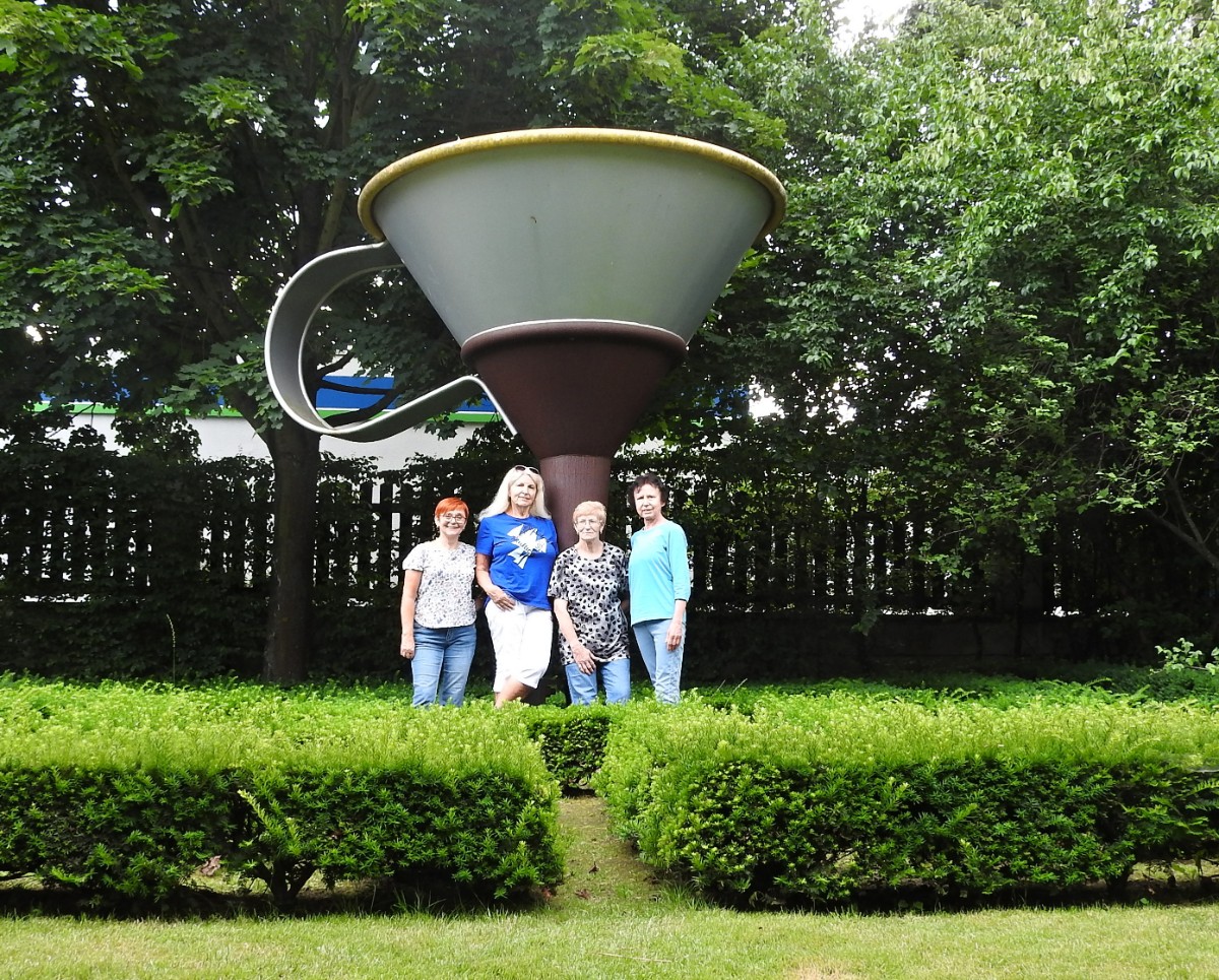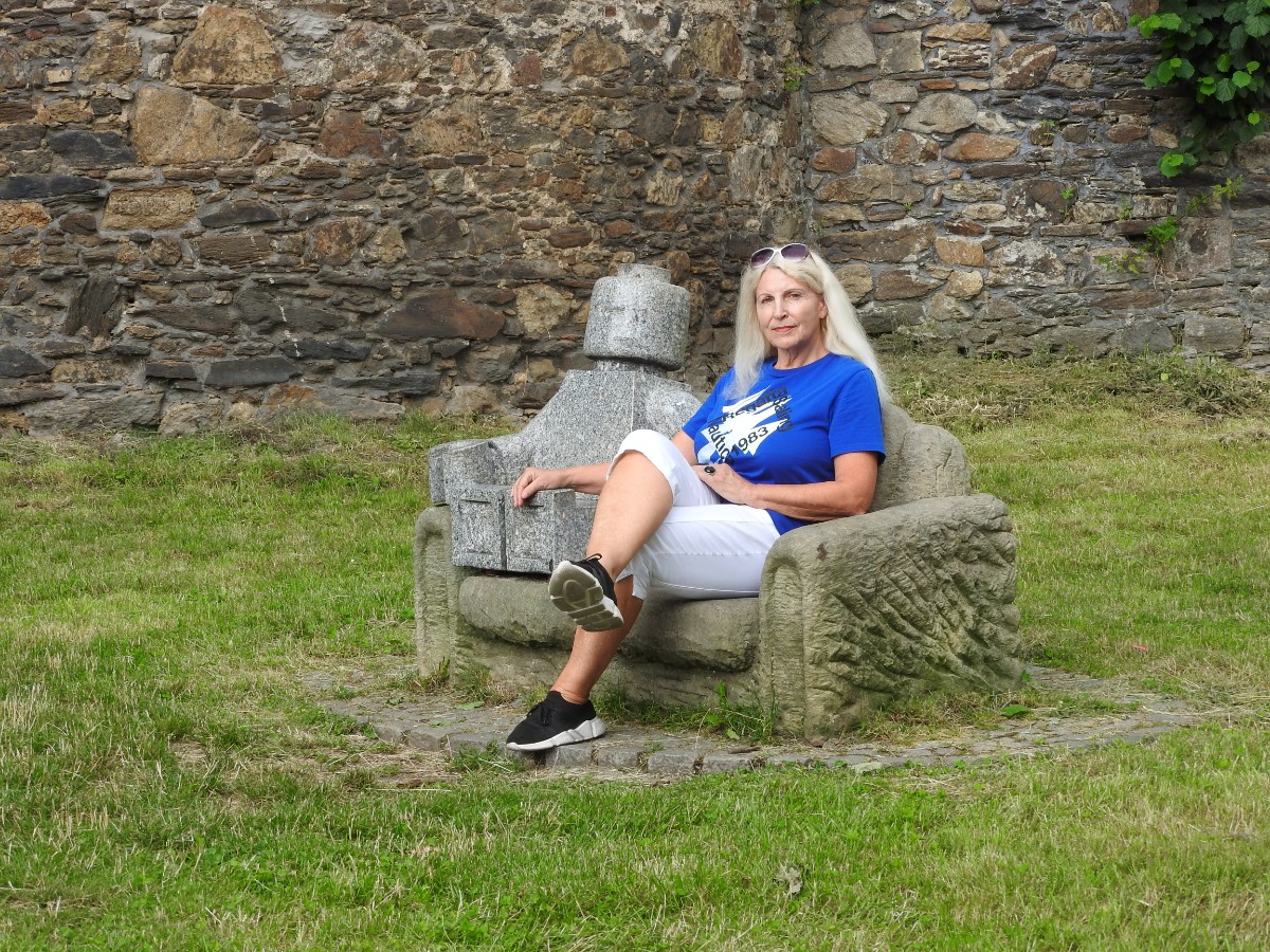 Na nádraží nás čekalo nejen sluníčko, ale také dvě usměvavé a dobře naladěné domorodkyně a procházka Havlíčkovým Brodem mohla začít. Podle Sázavy jsme se dostaly k fiktivnímu středu Evropy dle Járy Cimrmana ve tvaru trychtýře, umístěného v malém bludišti. Tady jsme vybalily malé dárečky a prostřely jimi celý stoleček v parčíku pod nádherně rozkvetlou a voňavou pavlonií plstnatou. Trochu nám kručelo v žaludcích a jejich hlasové projevy jsme umlčely v Kozlovně. Pokračovaly jsme procházkou po městě a už nás čekal domluvený výstup na věž kostela Nanebevzetí Panny Marie. Nahoru vede úzké točité schodiště a výstup s doprovodem a výkladem místostarosty města byl docela dobrodružný. Zastavili jsme se u tří zvonů, z nichž nejstarší Vilém je jedním z nejstarších zvonů u nás. Ulit byl začátkem 14. století, přesný rok se nepodařilo vyluštit. Výhledy z věže nám ukázaly celé město i okolí, na obzoru se rýsuje hrad Lipnice. Zajímavostí je, že v místnůstkách nahoře ve věži byl byt, kde se bydlelo až do roku 1973. Dost dobře si neumím denní provoz představit. Odměnou za namáhavý výstup po 144 schodech byl pohár "horká láska" s malinami. Pak jsme ještě obešly kus Havlíčkova Brodu kolem zdejších památek - Havlíčkova domu, kde je muzeum, Klášterního kostela sv. rodiny s božím hrobem, Štáflovy chalupy a Štáflovy bašty a vydaly se Parkem budoucnosti pomalu zpět na nádraží. Mezitím se palčivé sluníčko schovalo a na nádraží jsme docházely s prvními padajícími kapkami.