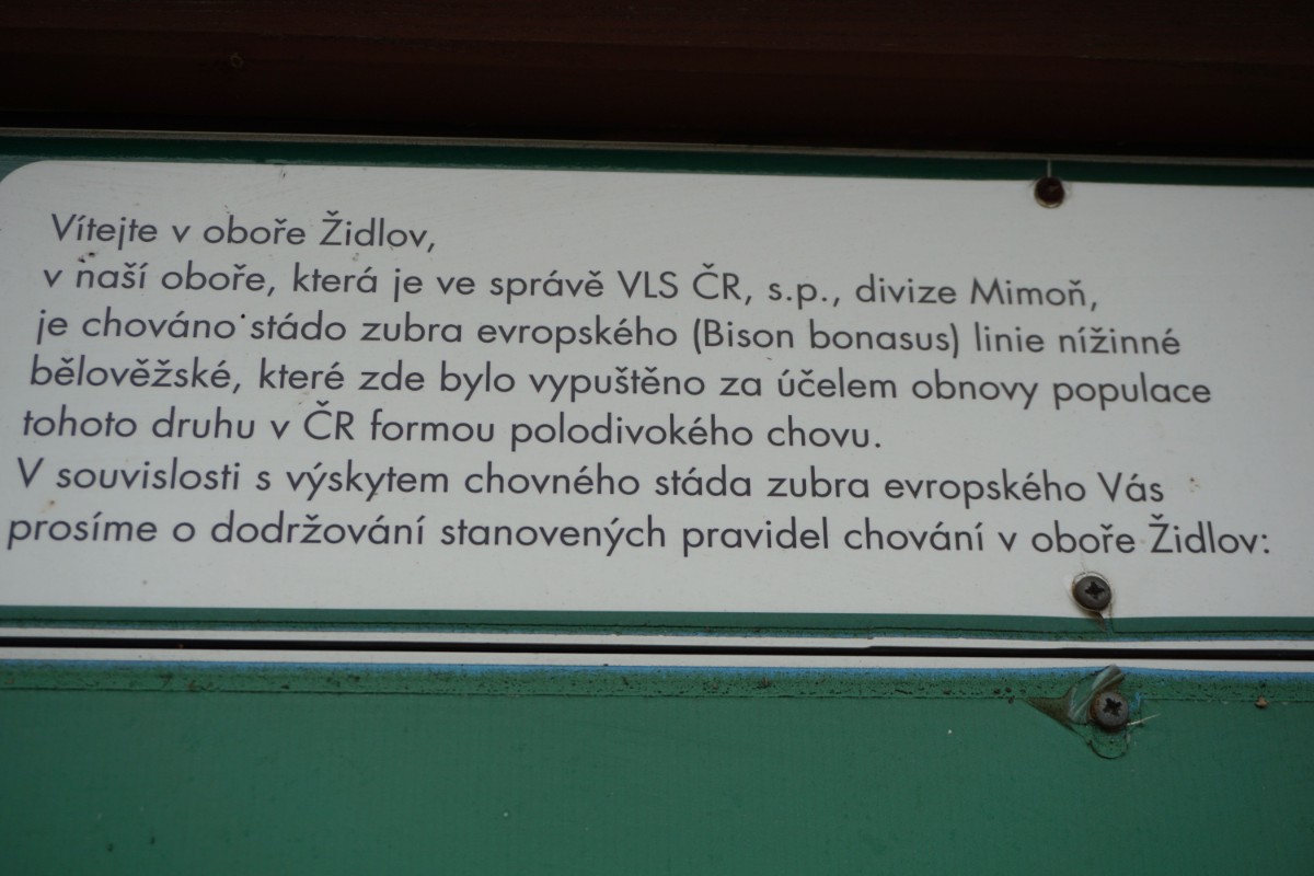 Cesta k ní vede oborou Židlov, která byla založena na místech, kde dříve cvičily střelbu sovětské tanky. V oboře dnes žijí jeleni, mufloni a dokonce stádo zubrů evropských. Aby zvířata z obory neupláchla, jsou vstupy opatřeny speciálními rošty, po kterých kopytníci nedokážou přejít. Zubři jsou naštěstí plaší a drží se převážně v klidové zóně stranou cest a cyklostezek, které oborou procházejí. I tak je třeba zachovávat obezřetnost a držet se jen na vyznačených cestách. My jsme naštěstí k mé velké úlevě žádného zubra nepotkali. Vzhledem k počasí tu nebyli kromě několika dřevorubců ani turisté či cyklisti.