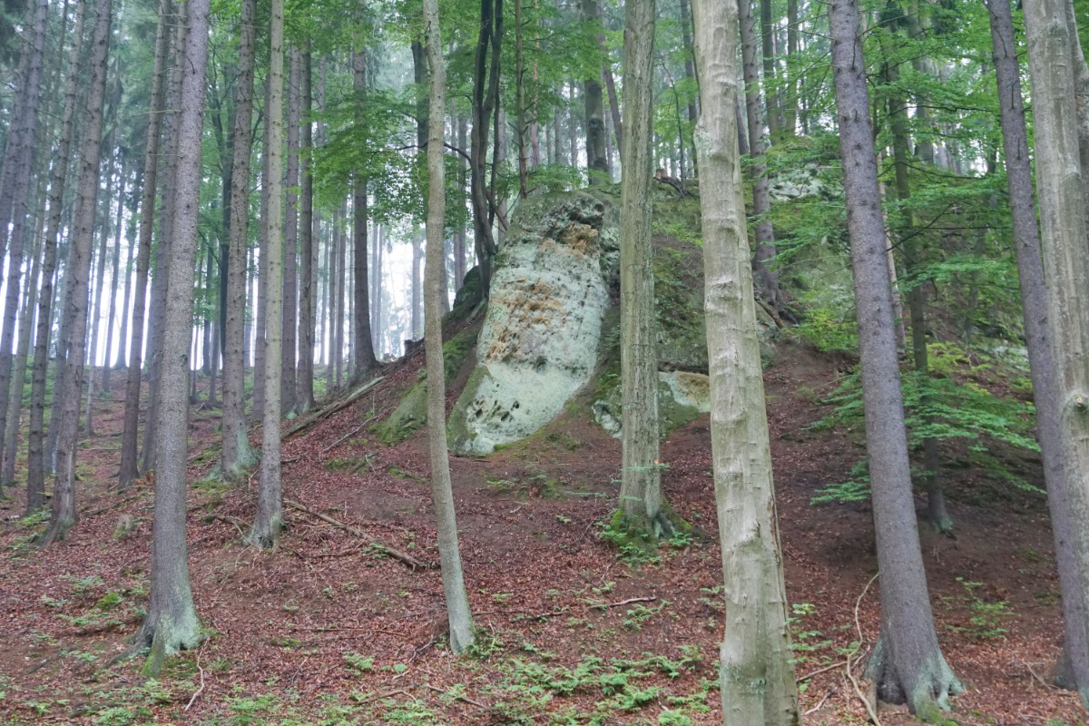 Jeden z deštivých dnů naší dovolené jsme podnikli výlet do bývalého vojenského prostoru Ralsko. Vyrazili jsme z vesnice Hvězdov, kam jsme dojeli autem. Naším cílem byla skalní poustevna Zbyny.