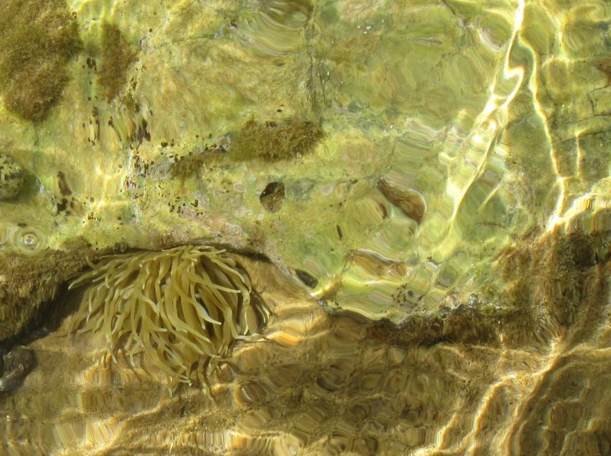 Tak se se mnou podívejte, co ještě můžeme na souši i ve vodě potkat a co se mi podařilo nafotit. Mořského ježka raději obejít, jeho bodlinky způsobují krutou bolest, ale naštěstí já tuto zkušenost s ním nemám. Kraba jsem fotila asi půl hodiny, vlnky a odraz sluníčka hatily všechny mé pokusy ho zdokumentovat. Je krásné vidět pod vodou třpytivou škebli. Na břehu je škebliček, ulit a lasturek taky hodně, ale už je houfně nesbírám, dovezu si domů opravdu jen pár kousků. A naposled si nechám ty nejmenší - mravenečky, co vám klidně nalezou do batohu nebo vás škaredě kousnou, když si na ně na ručníku lehnete.