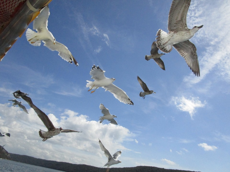 Včera mě budilo krákání vrány nebo krkavce, ale ptáka jsem nezahlédla. Protože jsme u moře, tak k němu patří rackové, kteří provázejí hlavně lodě, protože tuší příležitost dostat nějakou potravu, hlavně, když se na lodi grilují ryby. Na moři jsem v dálce zahlédla delfíny, ale vyfotit se to nedalo. Mořské rybky taky foťákem nezaberu, voda se vlní a rybičky jsou hybné potvůrky. Vylovené taky nenafotím, protože rekreační rybolov je povolen až od 1.září. Samozřejmě zde lítají "dajaké motýle", mouchy, včely, vosy. A ještě na jedny malé tvorečky jsem zapomněla, poštípat vás můžou dotěrní komáři, které z pokoje vyháním elektrickým odpařovačem.