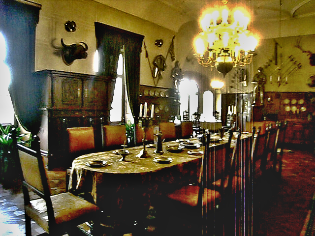 Vybrali jsme si okruh prohlídky – sály a salony. Viděli jsme nespočet jak palných, tak i chladných braní, loveckých trofejí, krásně prostřené tabule, porcelán ve vitrinách, obrazy, klenotnice, nádherná kachlová kamna a hned několik, další zajímavé drobnosti, stále ještě krásnou, prostornou funkční kuchyni. Rozhodli jsme se, že na podzim, než dojde k uzavření památek, ještě dáme věž a sklepení. Bude čas vhodný na to, aby byla co nejlepší viditelnost z věže. Potom, pokud bude doba příhodná a nebude nás trápit korona, možná dojde i na vánoční, resp. adventní prohlídku.