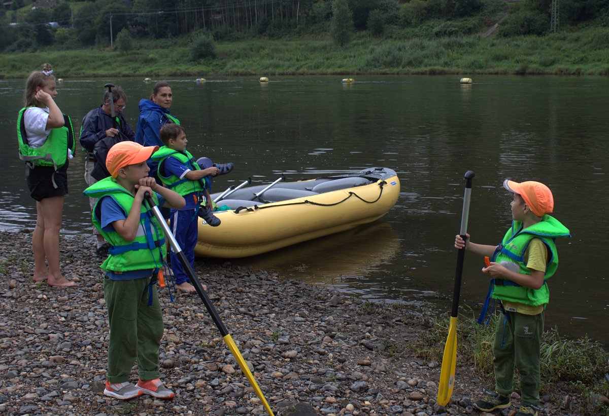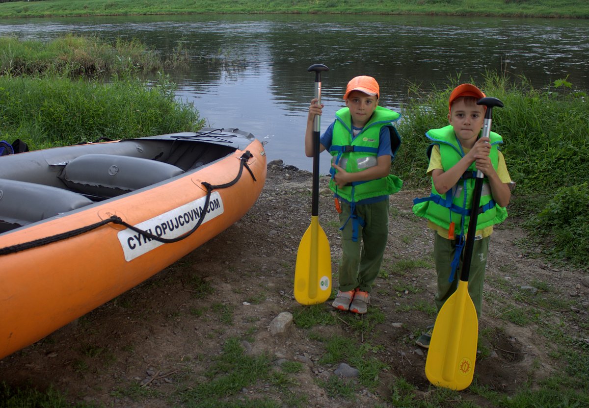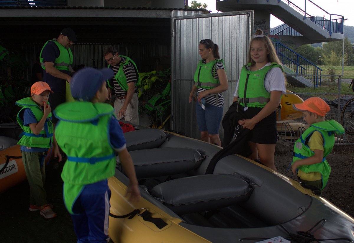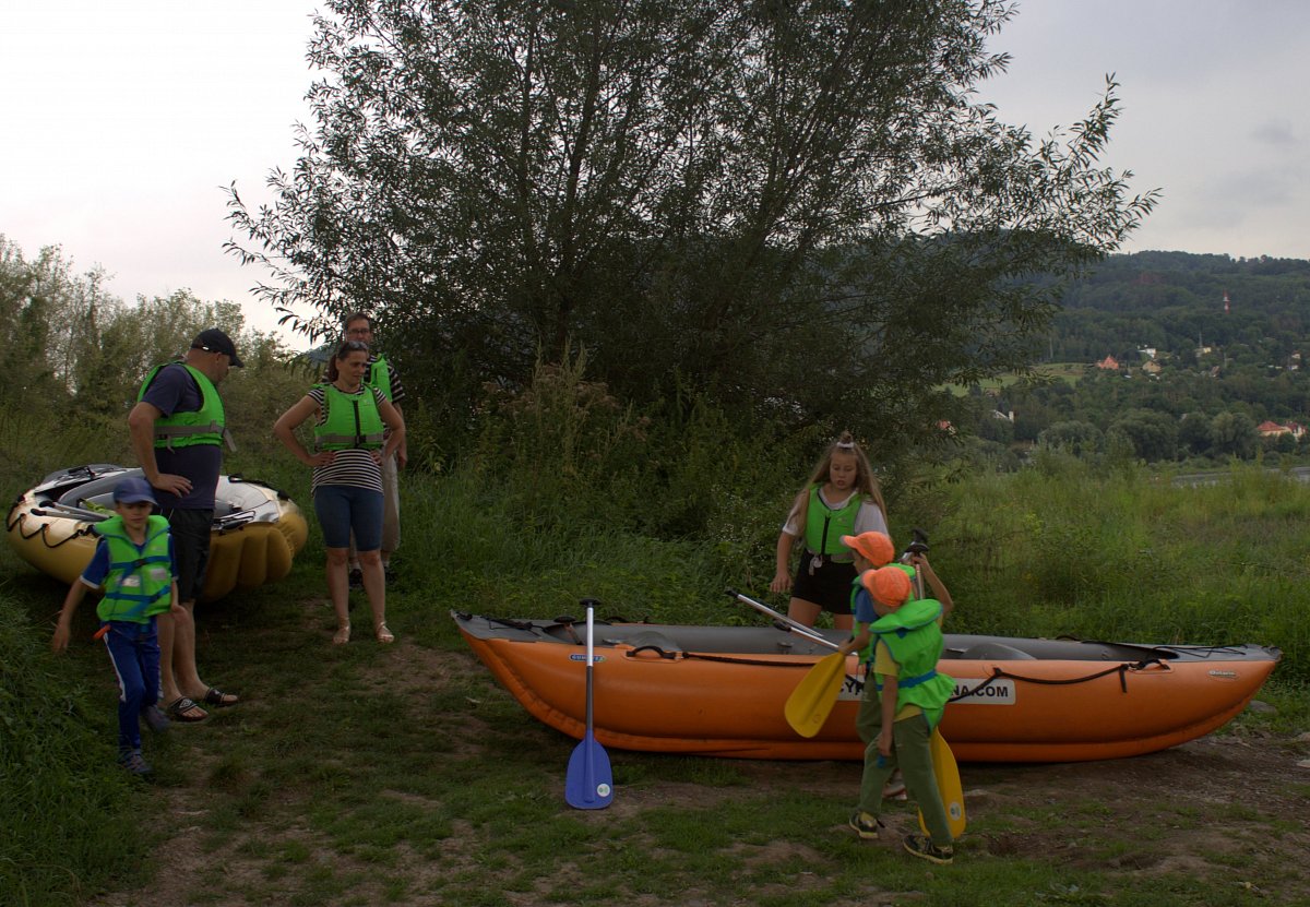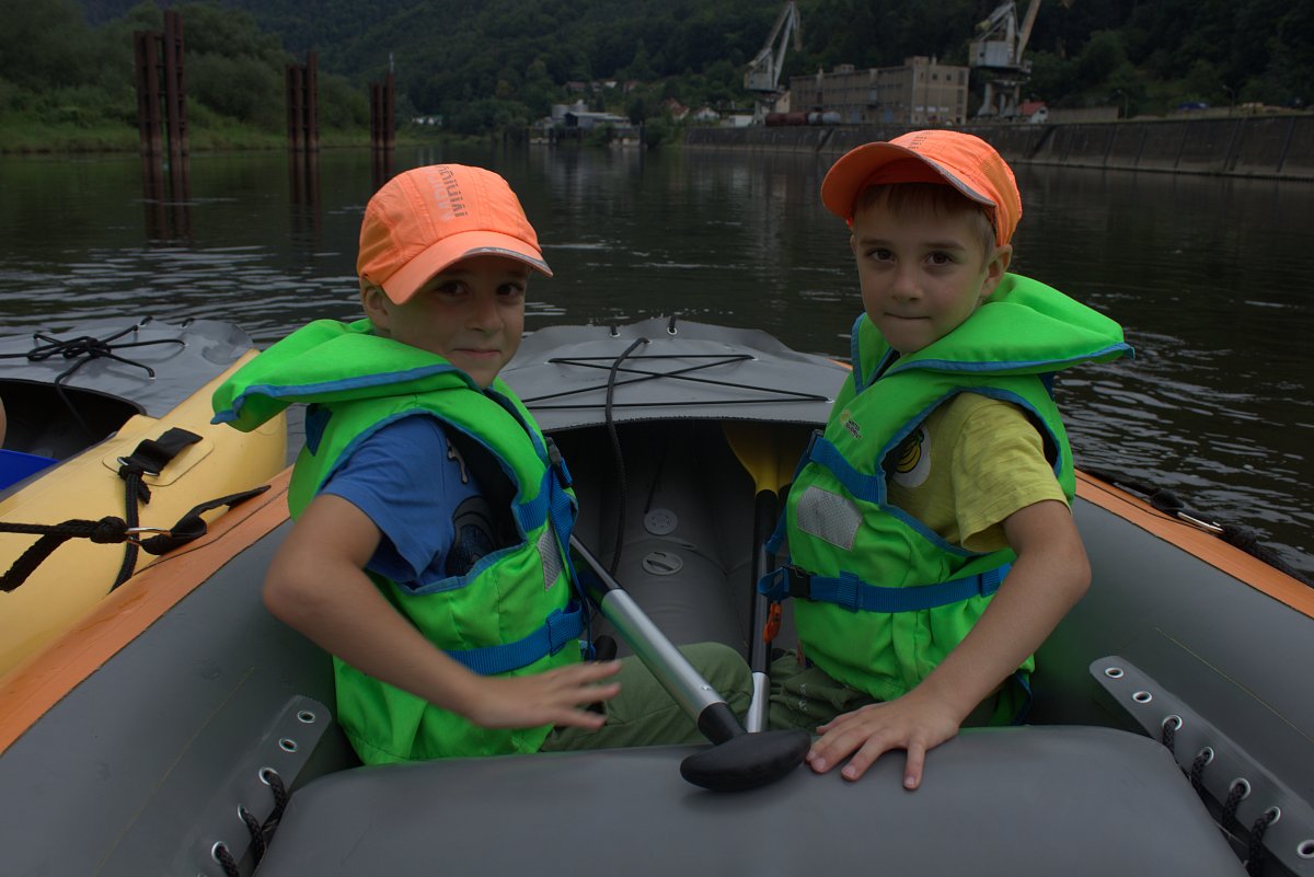 Máme dvě dcery - jednu u nás v Holešově, a ta, když nám svěřovala své tři kluky - naše vnuky Andreje, Míšu a Marečka, souhlasila, že se plánované plavby můžou zúčastnit také. Druhá dcera, která  žije již více než dvacet let v Děčíně, tak ta má dvě děti - puberťáky. Matěj, ten s námi nemohl jet. Chytá za HC Junior Děčín ve fotbalové brance, a měl zrovna důležitý zápas v Ústí. Patnáctiletá Zuzka byla silnou oporou týmu č. 1, ve kterém byla kapitánkou naše dcera Radka, a dalšími členy byl děda Mirek a vnuk Andrej. Kapitánem druhé lodi byl Venda, já jsem byla pověřena fotografickým zdokumentováním plavby a strčili k nám dva vnuky.