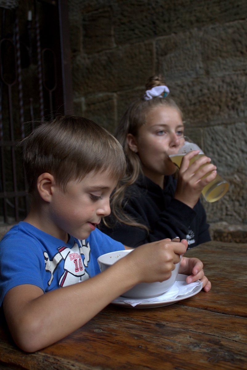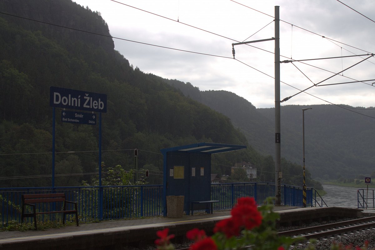 Kouzelná krajina podél řeky a zalesněné kopce se skalami nad řekou umocňovaly nezapomenutelný zážitek z plavby. Všechno ale jednou končí, zrovna, když jsem se naučila pořádně pádlovat, tak jsme museli zakotvit. V Dolním Žlebu už na nás čekal přívoz, kterým jsme se přeplavili na druhý břeh do vodácké hospůdky pod železičním mostem. Horká polévka, chlazené pivo a výborná malinovka nám přišla k duhu. Trhanec se šodó byla taková třešnička na dortu. Potom už jsme za hustého deště přešli na železniční stanici a vlak nás přepravil zpět do Děčína.