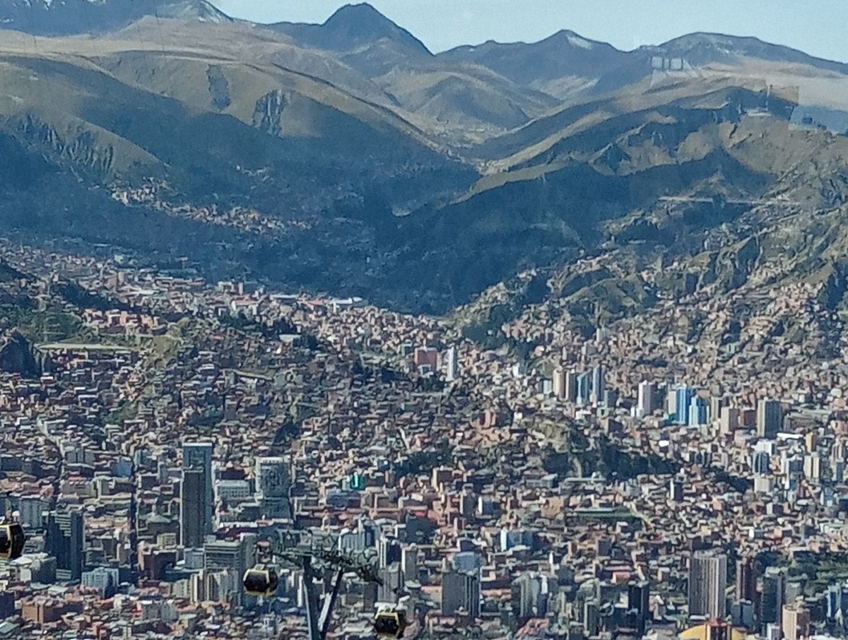 La Paz je pozoruhodné město, které klesá z nadmořské výšky chudé aymarské čtvrti El Alto (cca 4150 m) o více než tisíc metrů níže, kde žijí potomci Evropanů v bohatých domech a kde není neobvyklé vidět poslední modely luxusních aut.