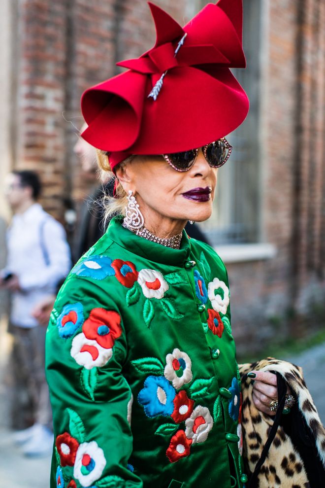 Jedno z pravidel v módním průmyslu zní, že by žena ve vyšším věku na sebe neměla upozorňovat přehnaně výraznými barvami a vzory. Jenže pravidla jsou od toho, aby se porušovala, a tak se v šedém davu na ulici občas objeví nějaká zářivá bytost, za kterou se každý otočí.