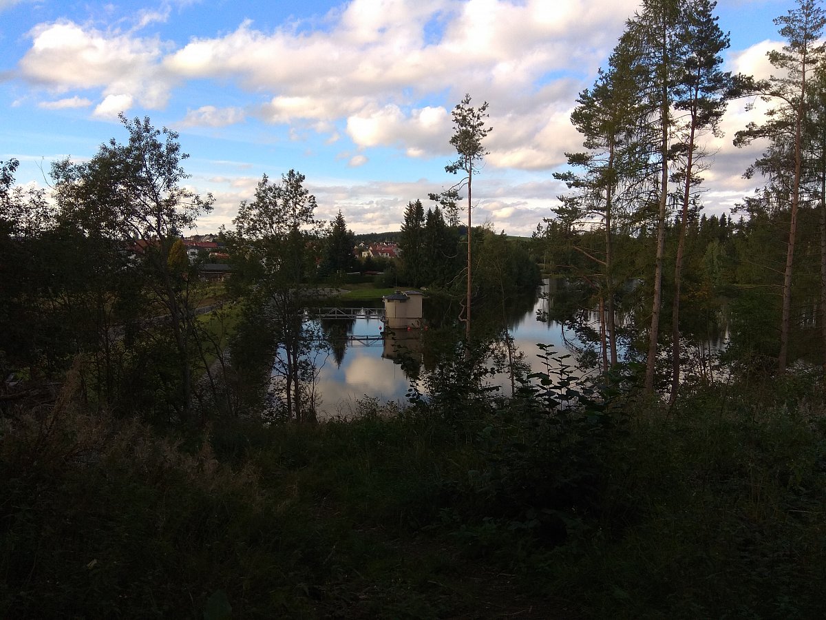 Pořád se držím modré a ta mě přes Plíčky dovedla okrajem lesa až nad nádrž Staviště. To je údolní vodní nádrž vybudovaná někdy v padesátých letech minulého století s cílem zásobovat město pitnou vodou. Pak z toho ale nějak sešlo a dneska slouží pouze jako záložní zdroj. Veřejnosti není přístupná.