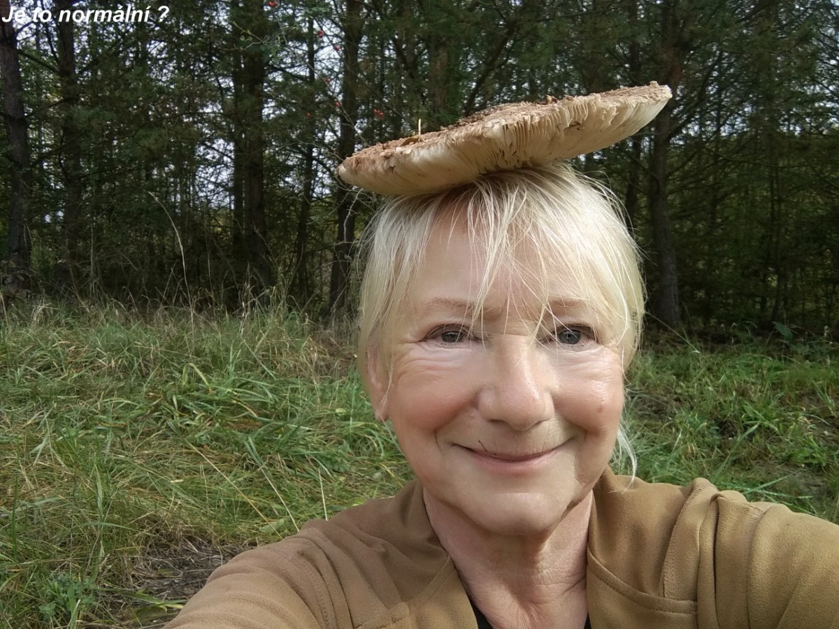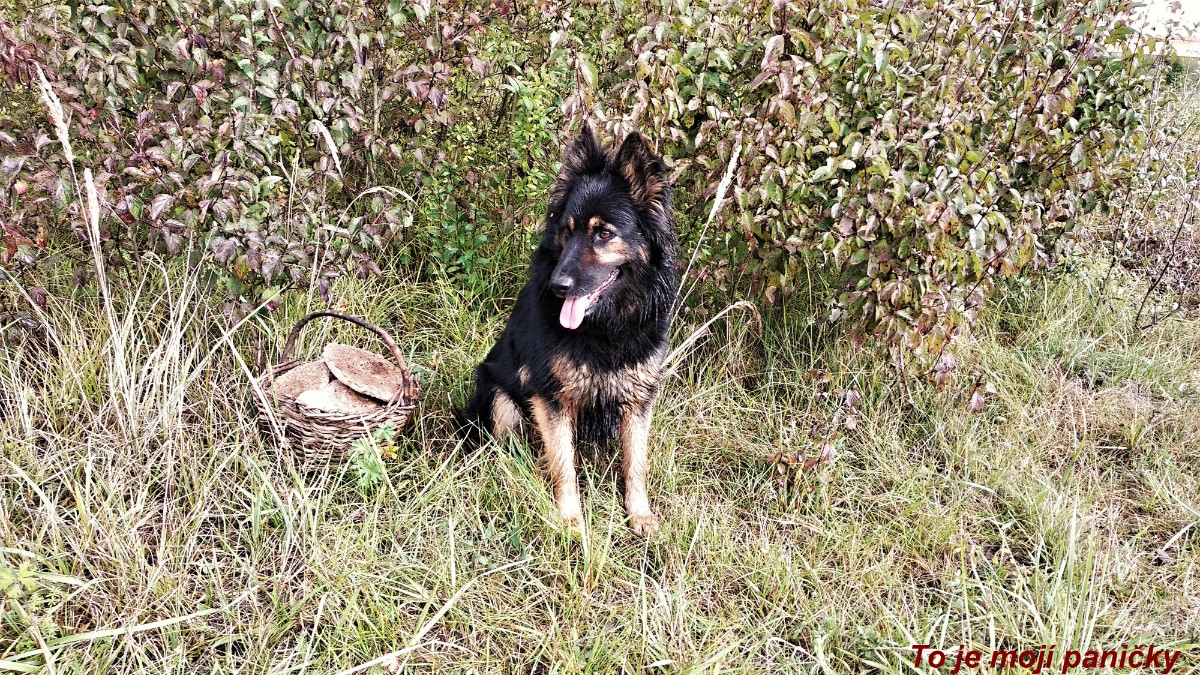 Když jsem dovytřela, otevřela jsem i domovní dveře, aby vše rychleji uschlo. Mezitím telefon, bráška volal, jenže ouha, jak Mysty uslyšela můj hlas, skočila verandou dovnitř a zahamtala úplně vše vytřené. No, nadávala jsem, jak se říká, jako špaček (i když jsem špačka nikdy nadávat neslyšela). A šla jsem vytírat znova. Pak jsem vzala pejskovou, košík, nožík rybičku, nazula gumáky a před polednem jsme vyrazily. Jistěže opět začalo pršet. Po dešti opět přijde slunko, tak se i stalo, i když na chvilku. Máme místa, kde najdu bedly, našla jsem. Našla jsem i 2 kozáky a něco klouzků. Mám nainstalovaný program Na houby a vždy mi to řekne Aleluja to pro jistotu. Co neznám, nepoznal ani ten program, dá několik druhů. Mystynka skotačila okolo mě a oběma nám bylo fajn. Moc ji chválím, máme skvělou přivolávku, tak ji bez obav mohu pustit na volno. Sice stopařka je, ale nedovolí si rozeběhnout se za srnkou.