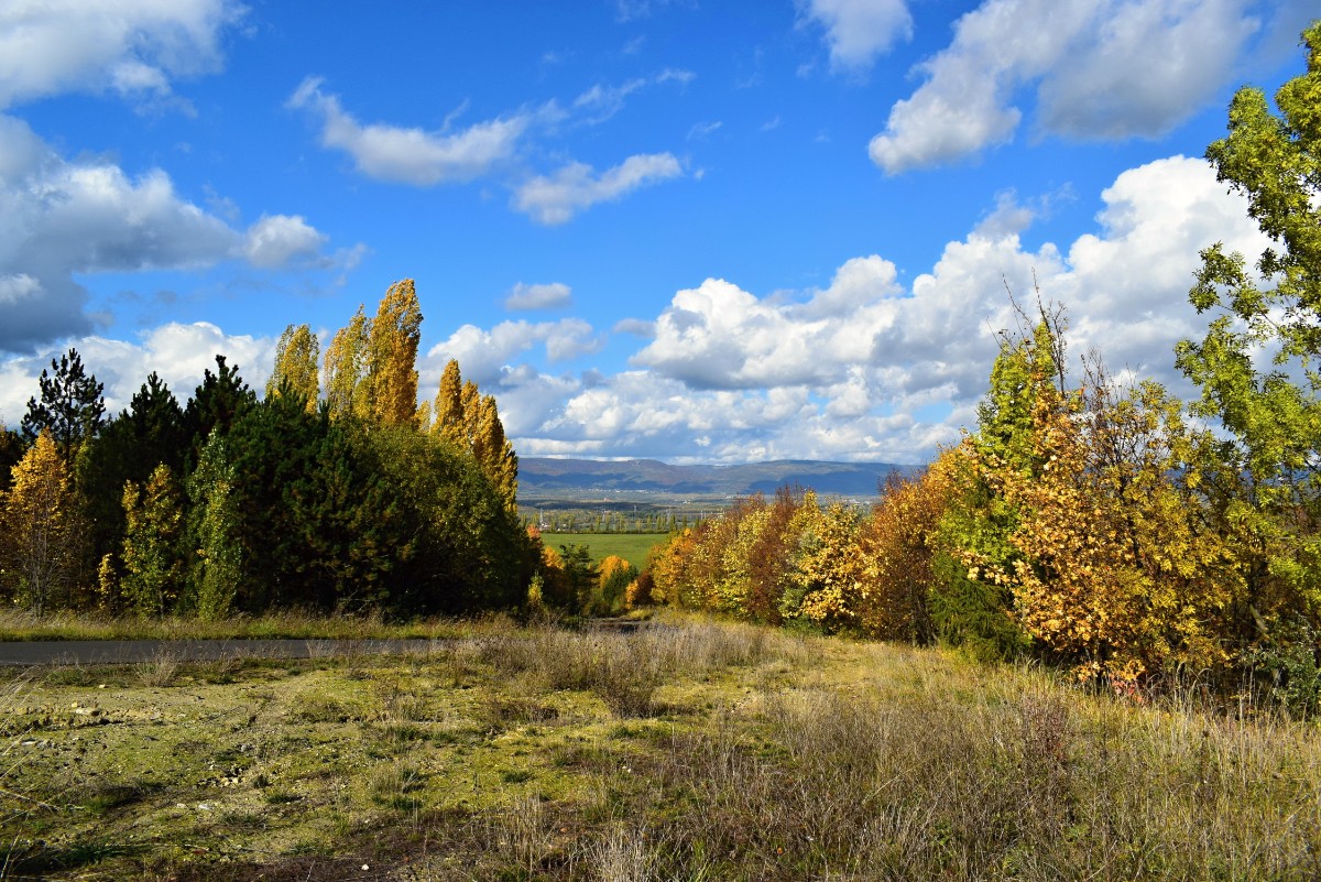 Závěrem tohoto víkendu se nám zaskvělo parádní říjnové babí léto a jak jinak, šup ven do přírody. Opět stromy zabarvené do měkkých teplých tónů, než spadnou listy z jejich korun, člověk žasne nad tou krásou. Doly u nás přidaly několik tabulí na naučných stezkách a u cyklostezek a to se mi moc líbí, že si každý může něco přečíst o historii území, kterým prochází.  Chválím takový počinek, je to smysluplné, dát na vědomí lidem, jaké to tu kdysi bylo a jaké to bude, záleží už na našich následovnících.