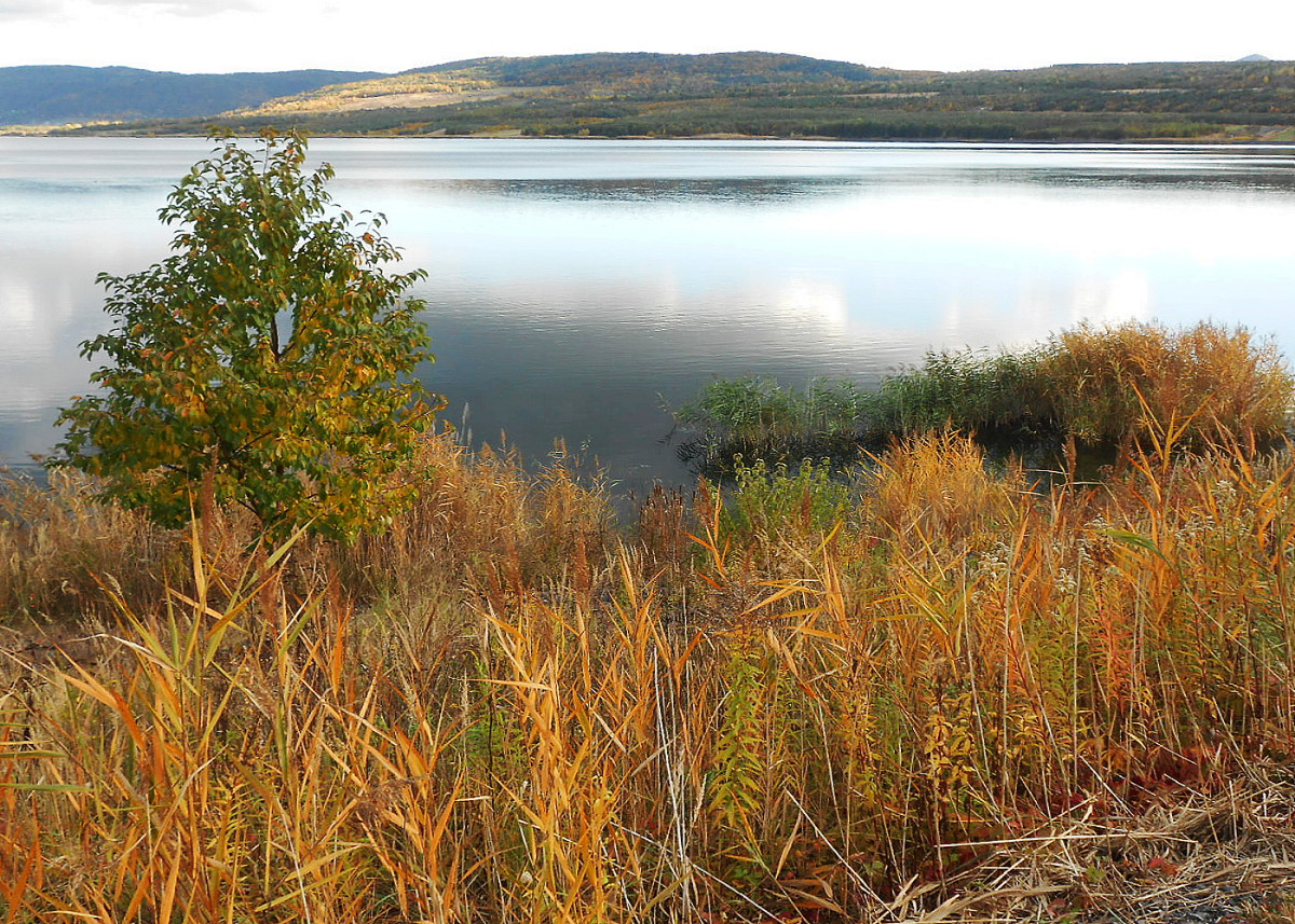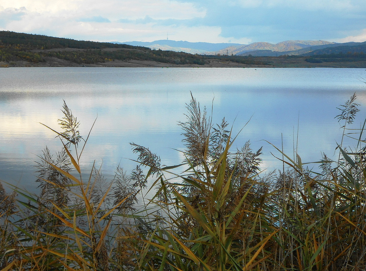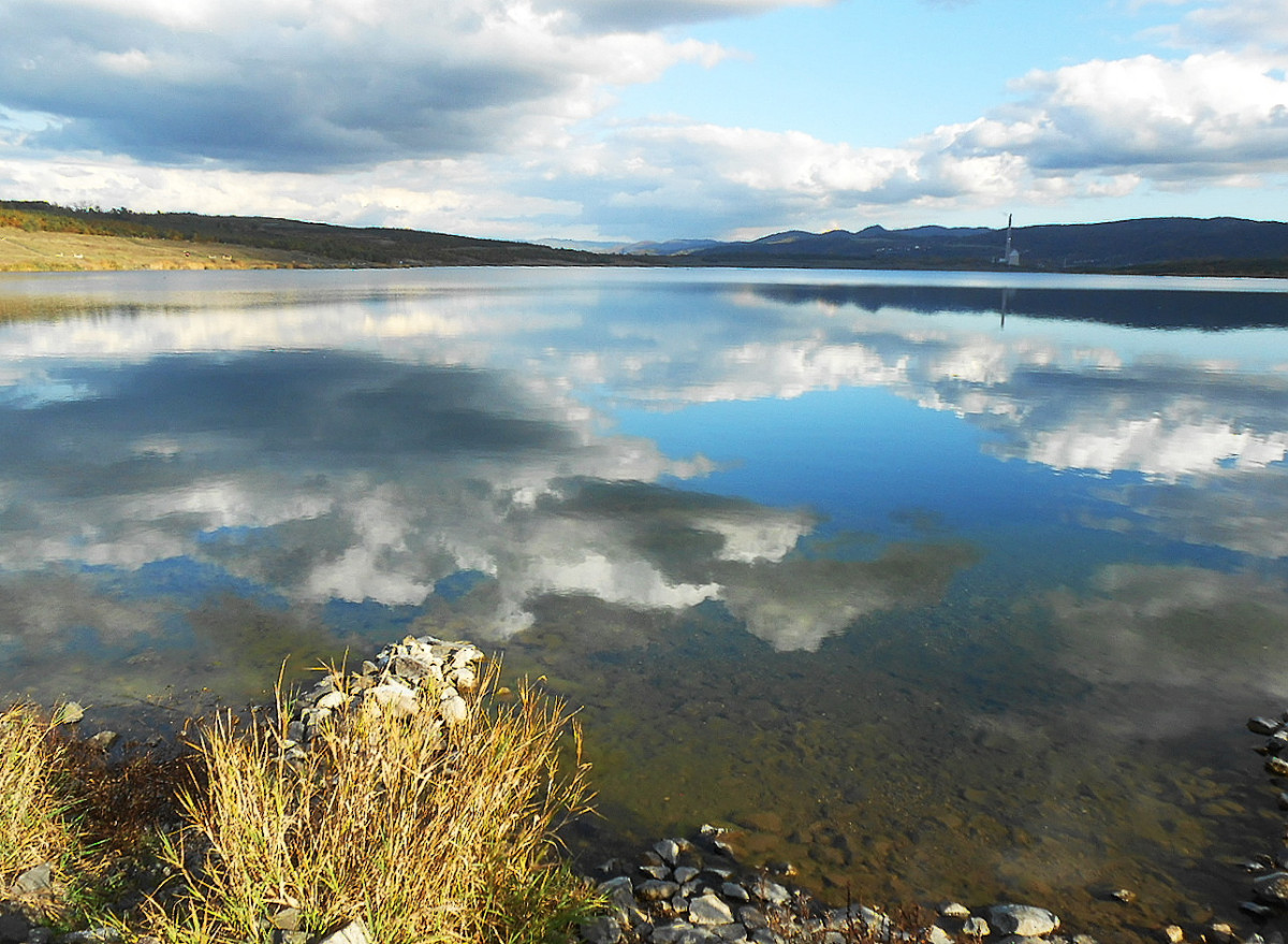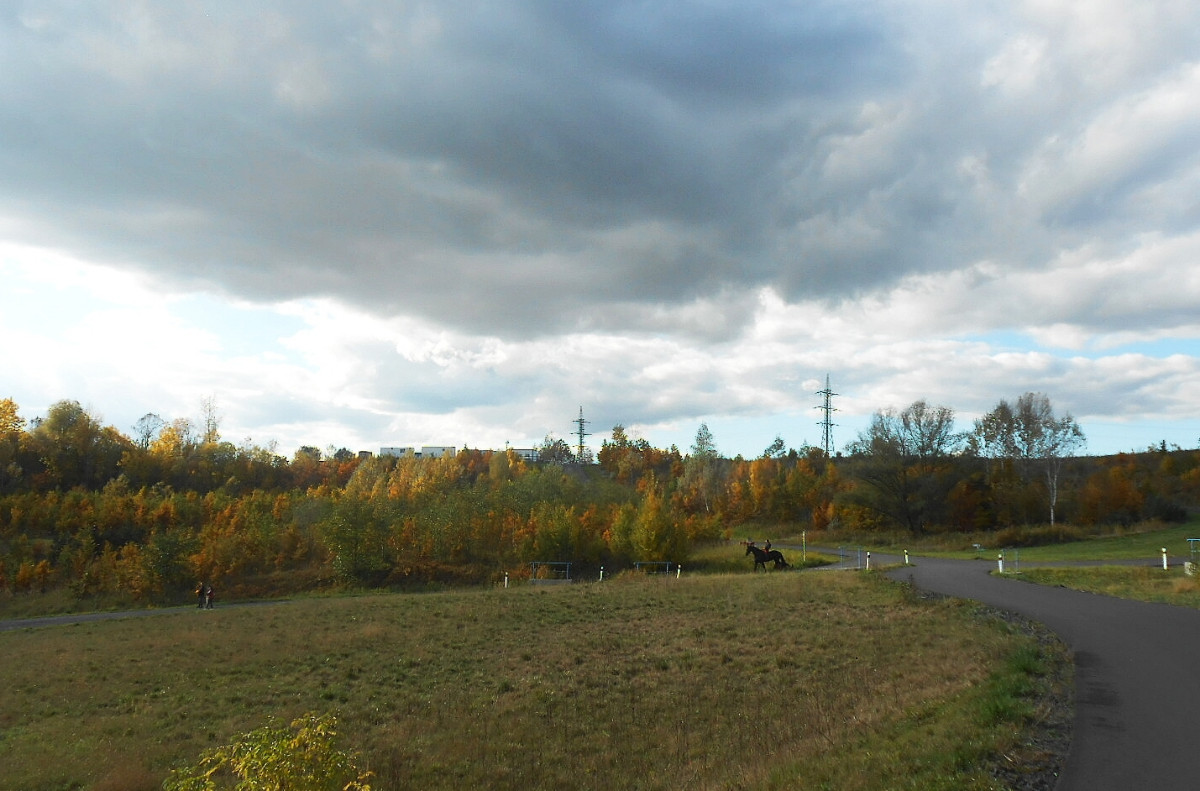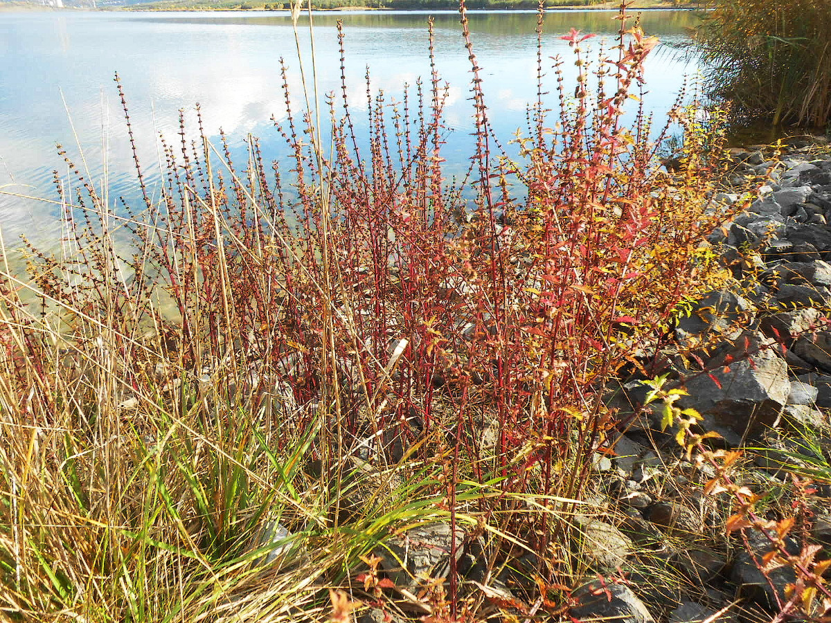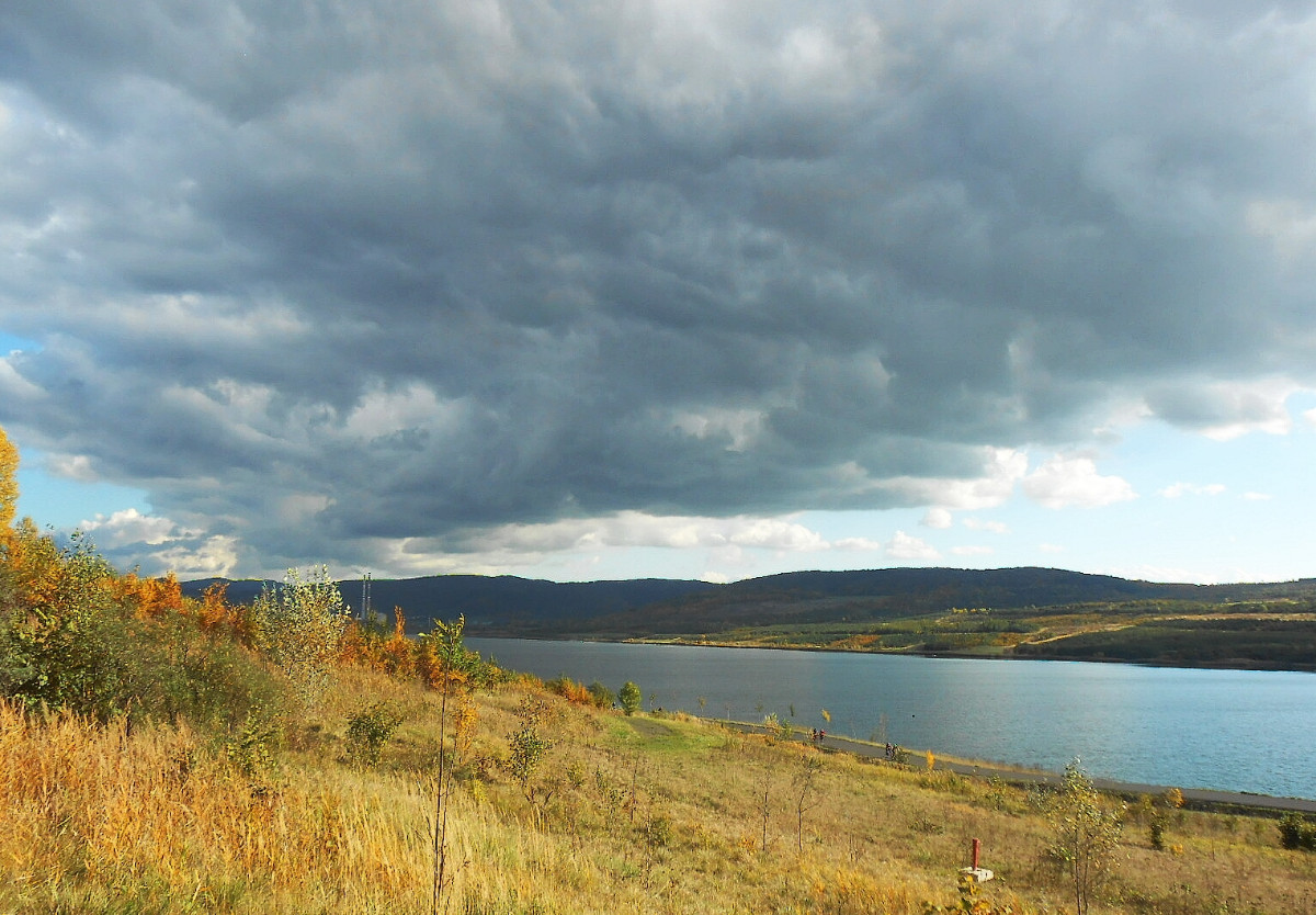 Tak jako každý rok se i letos podzim předvádí ve své plné kráse. Kontrast mezi vodní hladinou a nebem byl úžasný, protože nebylo úplně modro, takže odlesk mraků ve vodě neměl chybu. Potkávali jsme spoustu pejskařů s miláčky od čivavy, až po dogu. Několik se mi jich povedlo s dovolením majitele vyfotit, na dogu jsem se radši neptala. Mezi úlovky počítám i letadlo a letku ptáků, pravděpodobně to byly volavky.