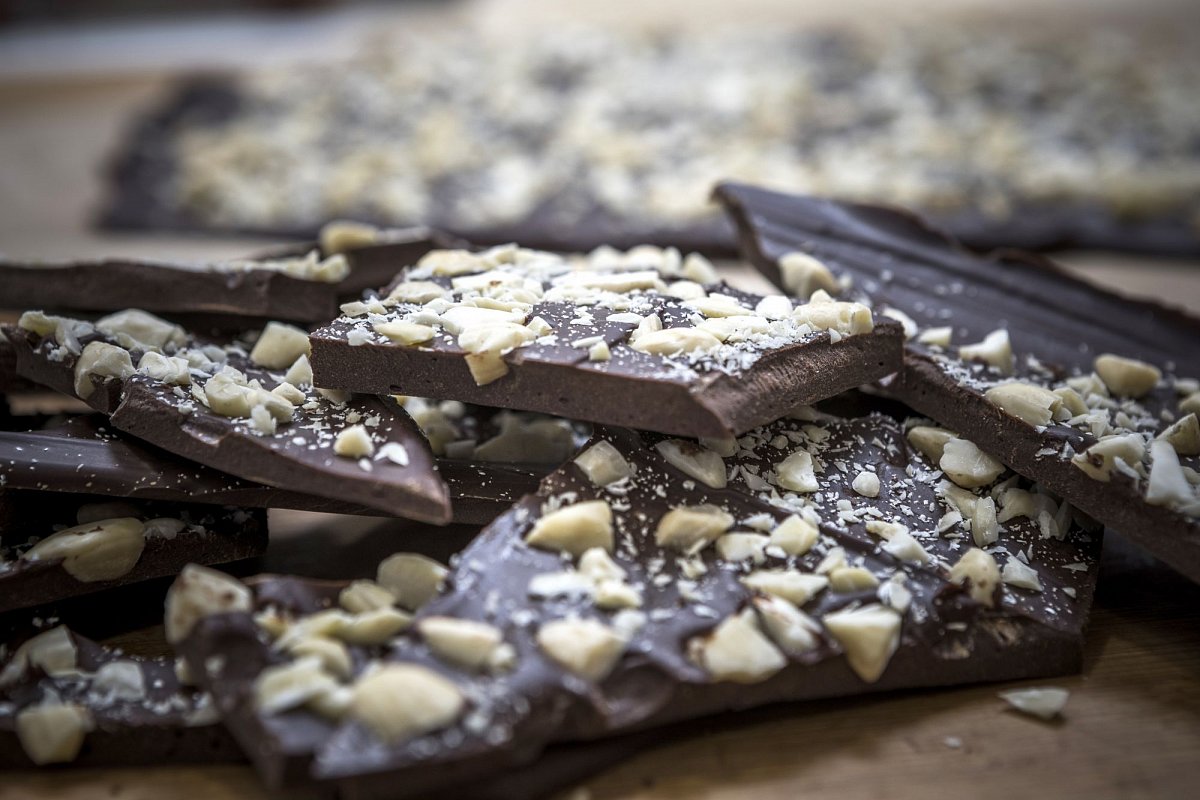 Je půl osmé ráno a všude kolem voní pražené kakaové boby a ještě horká čokoláda. V hrabyňské čokoládovně vznikají nejčerstvější výrobky značky MoonChocolate – hořké čokolády různých příchutí a vesmírných názvů, jako je Horizont událostí, nebo mléčné čokoládové měsíční kameny s příjemným skořicovým akcentem. A taky limitované edice a novinky. Naposledy třeba tmavá mléčná čokoláda s himalájskou solí nebo s praženými vlašskými ořechy a právě testované pralinky s chilli.