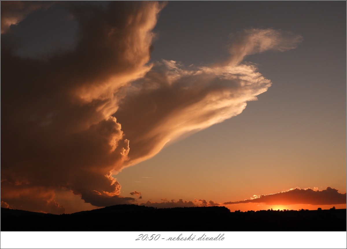 Stává se vám to také, vyjdete z domu, pozvednete oči k obloze a s úžasem hledíte na to nebeské divadlo? Nad hlavou vám plují mraky. Někdy nádherné barvy, jindy neobvyklé tvary, pak zase lehounké obláčky a z toho těžká mračna těhotná deštěm. Někdy obloha vypadá, jakoby ji namaloval ten nejlepší malíř, rozmáchlé tahy štětcem a neskutečně namíchané barvy. Pak zase měl malíř splín a maloval podle své duše. Vypatlal všechnu šedou a tmavě modrou barvu.