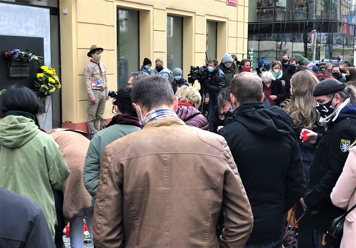 Před památníkem 17. listopadu na Národní třídě, připomínající boj za svobodu a demokracii v České republice, se od ranních hodin zastavovaly desítky lidí, kteří zde zapalovali svíčky. Policie tentokrát hlavně hlídala epidemiologická opatření, tedy aby se netvořily velké hloučky lidí a aby lidé měli zakryty ústa a nos rouškami.