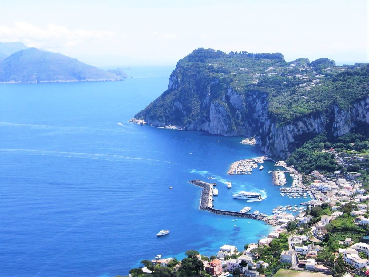 Z vrcholu od vily je nádherný pohled na scenérii kolem. Pod samotnou skálou dole, na níž vila stála a kde je dnes malá vesnička, býval privátní císařův přístav, kudy se nahoru do vily dostával.