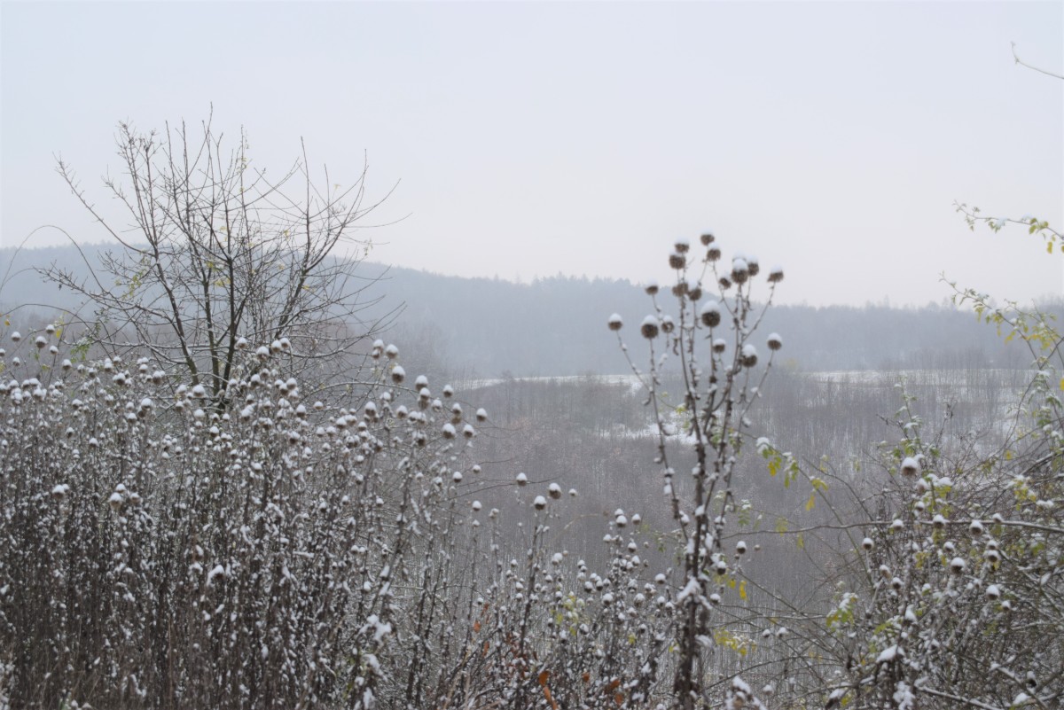 Konečně u nás poprvé zasněžilo. To byla krása, probudit se do bílého rána. Bělostná peřinka pokryla  vše a rázem byl svět čistší, světlejší, hezčí. Chápu, že pro řidiče žádná radost, však také na silnicích už odpoledne byla špinavá břečka, díky posypové soli.
