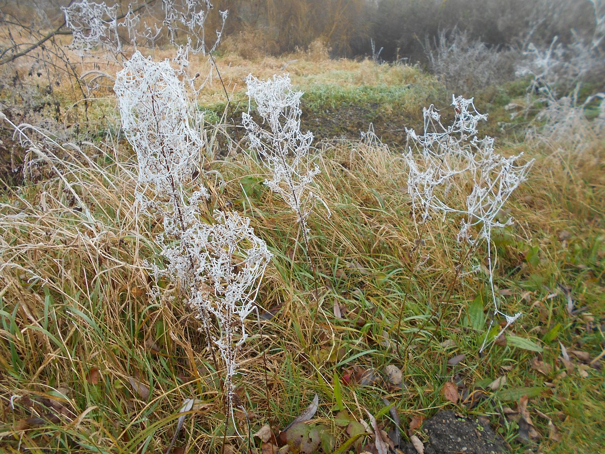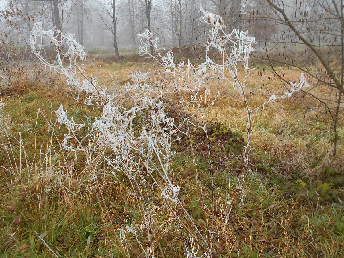 Jinovatka nebo-li námraza vzniká za mlhy, při nižších teplotách, tentokrát - 2 stupně, na stromech, trávě i na pavučinách.
