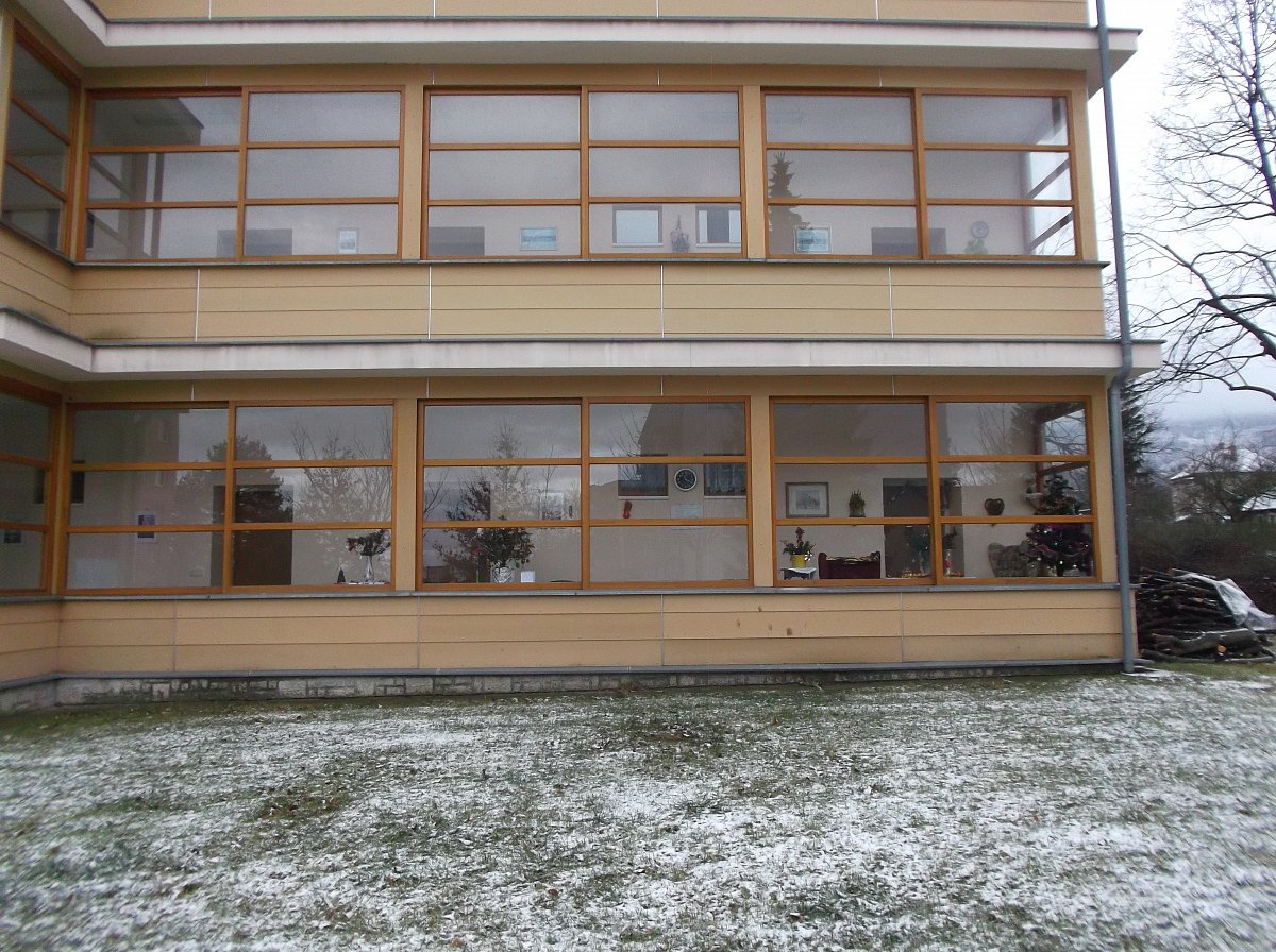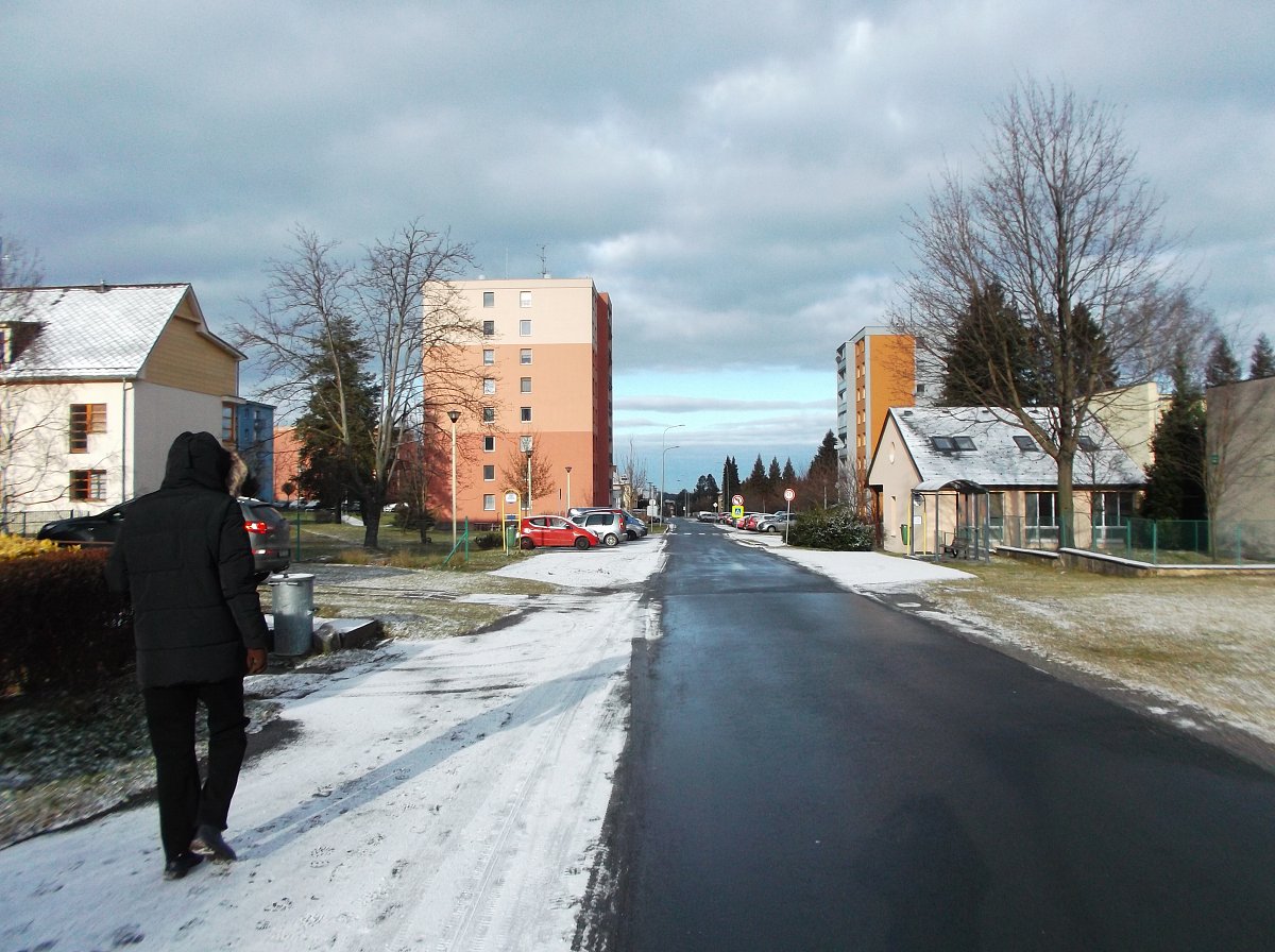 Letos nebylo počasí nijak lákavé, po obloze se honily šedivé mraky, a my jsme usoudili, že také nutně potřebujeme pohyb. Na rozdíl od mraků jsme se nehonili, ale s foťákem jsme mírným krokem vyrazili na svůj oblíbený okruh. Hned zkraje jsme míjeli Dům s pečovatelskou službou. Dříve to byla přízemní mateřská školka. Dětí ubylo, pokročilých přibývá, tak tu město moudře zřídilo pěkné bydlení pro seniory.