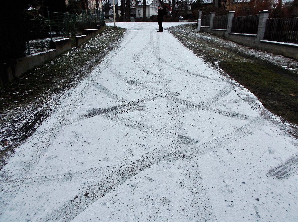 Ráda fotím, co mě zaujme, i když můj protějšek nad tím občas kroutí hlavou. Naštěstí mi foťák půjčí, i když mou činnost občas pokládá za ztrátu času. A tak si vyfotím zajímavou kresbu na chodníku, nebo skoro prázdné hřiště v parčíku u našeho sídliště. A za parkem stopy na křižovatce.