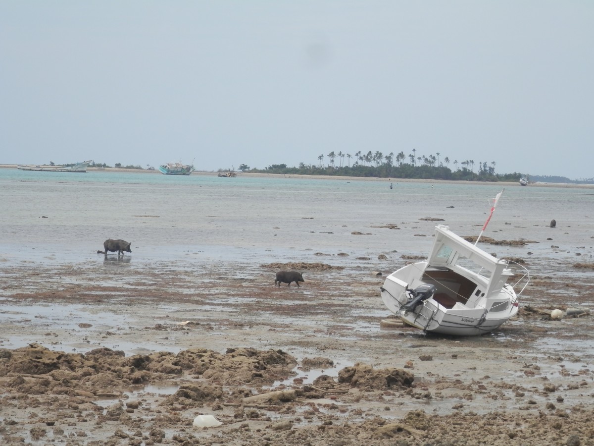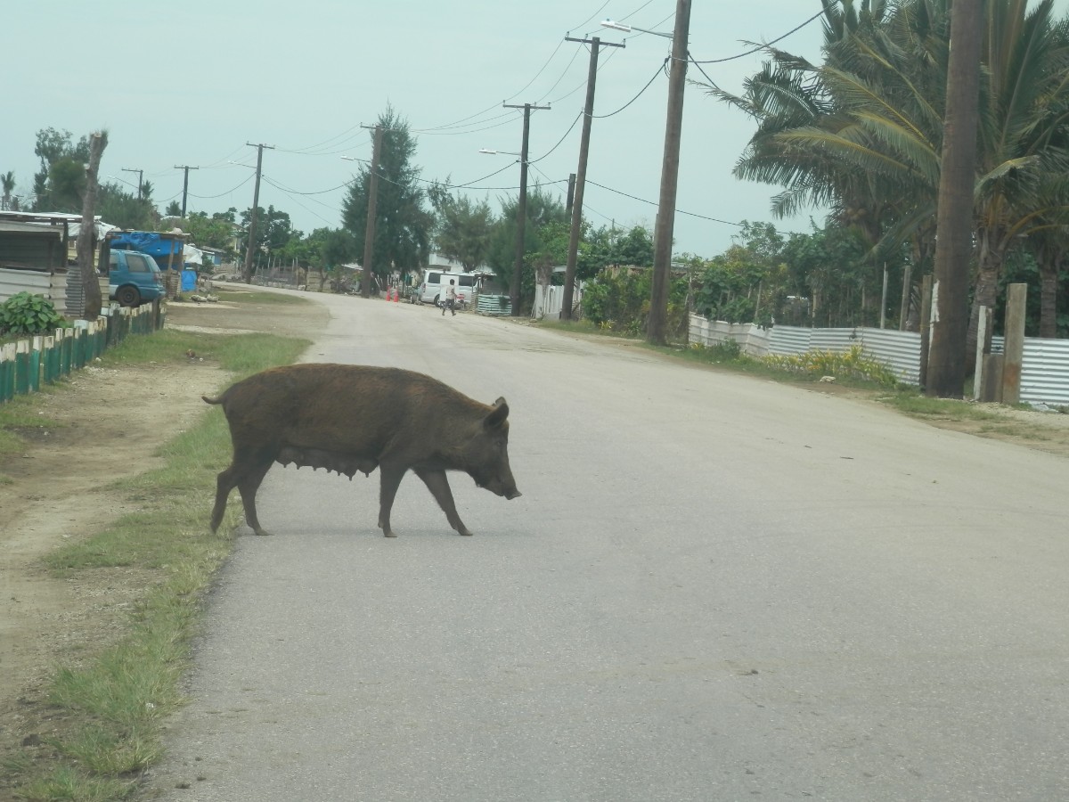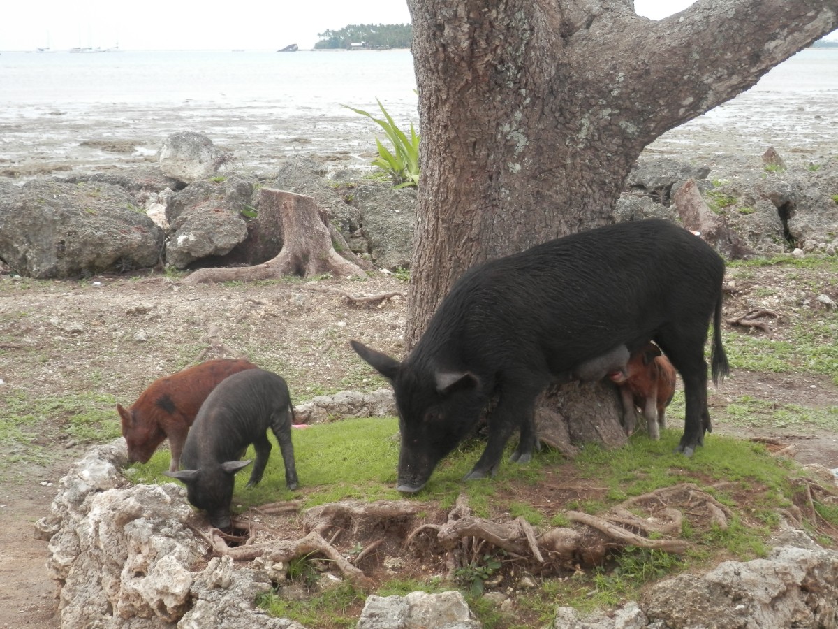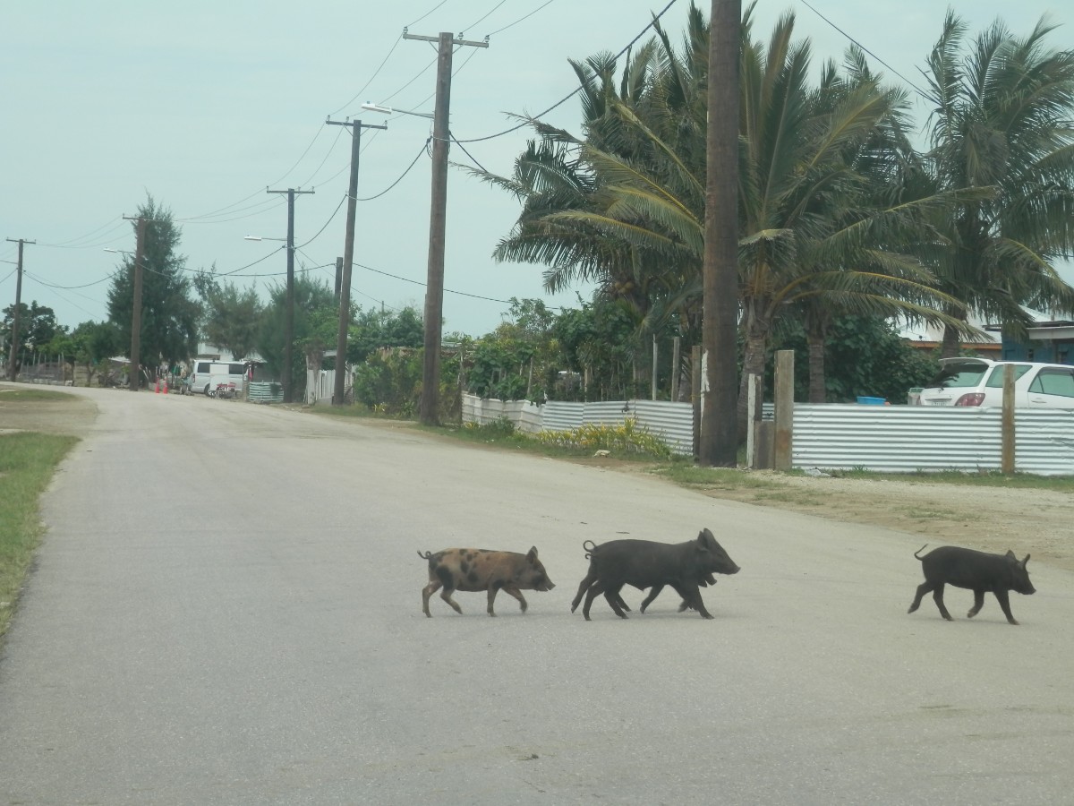 Každý den vyrážíme na průzkum ostrova. Začneme v hlavním městě tohoto polynéského království. Tonga je nezávislá od roku 1970, předtím byla britským protektorátem, ale nikdy zcela neztratila samosprávu. V současné době vládne král Tupou VI., který sídlí v královském paláci postaveném v 19. století na Novém Zélandu a převezeném na lodi na Tongu. Nedaleko paláce je nábřeží s výhledem na moře. Jsou tam rovněž dobré restaurace. Na Tonze není jednoduché koupit základní potraviny, jako jsou mléčné výrobky, sýry nebo pečivo. Běžně jsou k dostání pouze balené potraviny v čínských obchodech. Pravděpodobně každý z 200 místních Číňanů je obchodníkem. Časem jsme objevili jeden obchod, kde se dalo koupit pečivo a mléčné výrobky. Bylo ale třeba přijít včas a vystát frontu. Místní obyvatelé si potraviny z velké části vypěstují sami na svých políčkách. V hlavním městě se rovněž nacházejí dva velké kostely. Jeden z nich byl poničen cyklónem a v době naší návštěvy nebyl přístupný. Druhý z nich je pro nás zajímavý, protože ho světil slovenský kardinál Jozef Tomko, který byl přítelem papeže Jana Pavla II. a letos se dožívá 97 let. Naproti poškozené katedrále se nachází asi nejdůležitější historická památka Tongy – hroby králů tonžské dynastie. Kromě relativně honosného centra Nukuʻalofy jsme zabloudili i do chudé čtvrti na břehu moře. Už cestou je nám jasné, že oblíbenou součástí jídelníčku Tonžanů jsou vepři. Od našich čuníků se ale liší tím, že se krmí sami, a to v moři. Chytře využívají odlivu a konkurují svým hospodářům požíráním měkkýšů, korýšů i ryb, které uvíznou v mělké vodě během odlivu. Potravy je zřejmě dost jak pro lidi, tak pro vepře, protože není vidět, že by zvířata někdo z „pastvy“ odháněl.