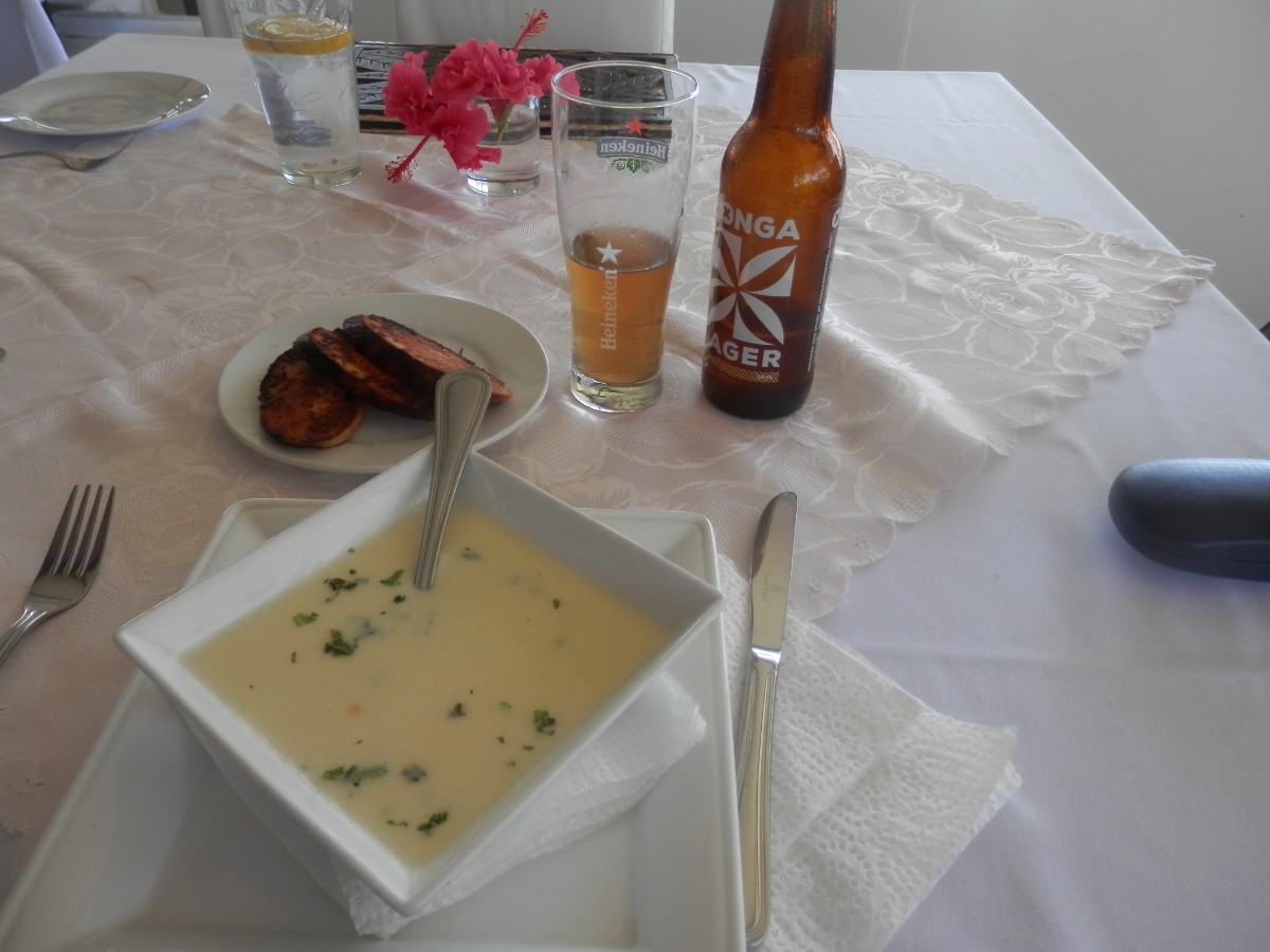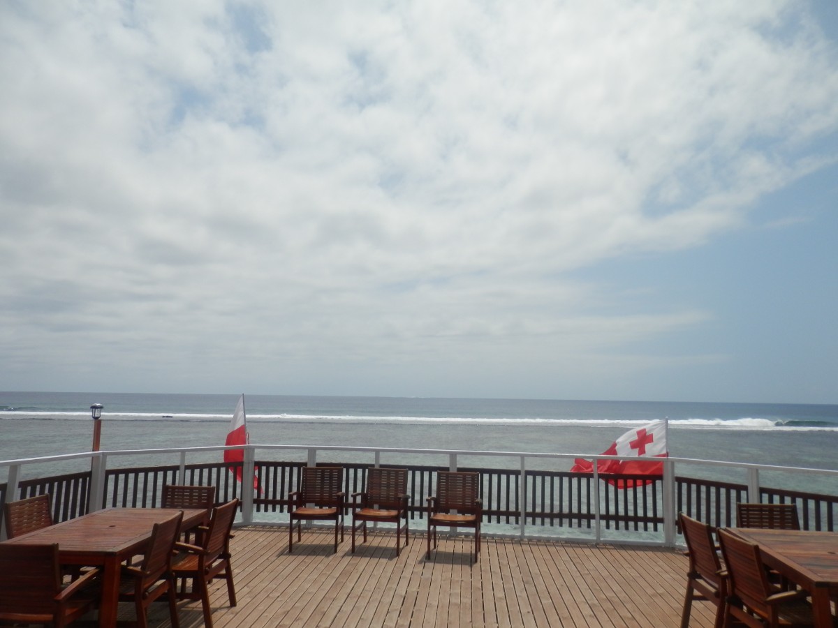 Bydlíme v malé chatičce u australského manželského páru, ostatní hosté jsou většinou z Nového Zélandu a Austrálie – Tonga a ostatní tichomořské ostrovy jsou pro tyto země něco jako Chorvatsko pro Čechy. Nedaleko je krásná, téměř prázdná pláž a kolem dokola bujná zeleň tropické vegetace. V noci jsme zde zažili nevídanou tropickou bouřku, kdy nepřetržitě se opakující blesky „rozsvítily“ noční oblohu, ozývalo se dunění hromu a střechu chatičky bičovaly proudy vody. Břeh moře byl nedaleko, ostrov je plochý a kolem dokola obrovský Tichý oceán, jehož hučení jsme velmi jasně celou noc slyšeli – nemohla jsem se zbavit obavy, že přijde tsunami a smyje nás do moře. A ráno zase svítilo sluníčko, vypařovala se voda a všichni se tvářili, jako by se nic nestalo … Mezi hosty ale nebyli pouze „protinožci“ – jeden den ráno slyšíme čistou češtinu a krajanka žijící v Sydney si po delší době ráda popovídala ve své mateřštině. Jindy se zase v jídelně objeví mladý ruský kuchař z Bali, aby si od majitelů půjčil surfovací prkno. Bylo příjemné si procvičit ruštinu uprostřed Pacifiku! Samotní Tonžané však mluví tonžsky, což je jeden z polynéských jazyků. Je zajímavé, že snad všechny jazyky světa převzaly právě z polynéských jazyků slovo „tabu“ – jeho varianta „tapu“ je na Tonze vidět všude, kde je něco zakázáno.