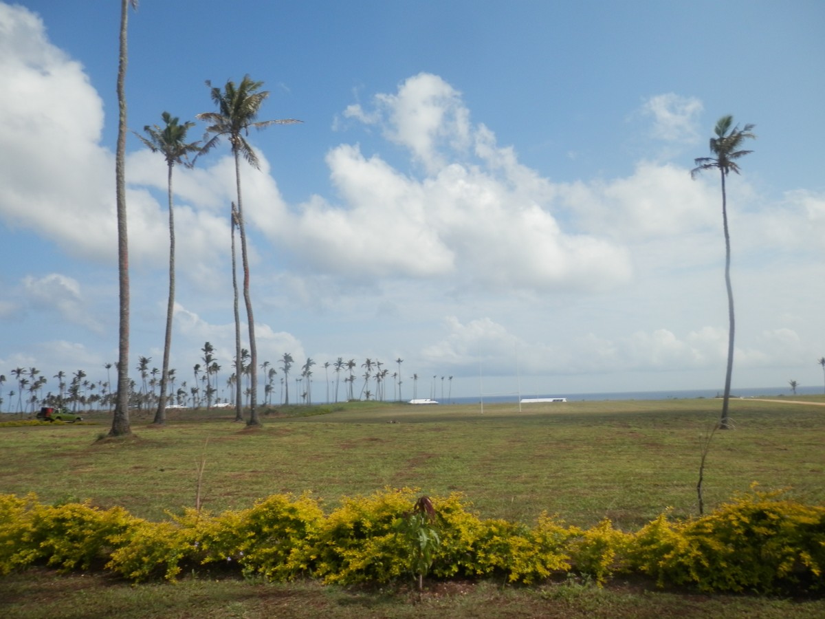 Již při půjčení auta byla jasné, že jsme opravdu v trochu jiném světě – řadicí páka byla na volantu jako kdysi u Trabanta. Pro řízení auta na Tongatapu, což je hlavní ostrov souostroví, je nutný místní řidičský průkaz, který je ale pohotově vystaven hned na letišti. Ubytováni jsme byli na nejsevernějším cípu Tongatapu, takže musíme projet napříč celým ostrovem. Vzdálenost 36 km zdoláme za necelou hodinu. Ostrov je totiž hustě obydlen, a proto je třeba jet pomalu. Ostatně čas zde má trochu jinou dimenzi a je na co se dívat. Tongatapu je zcela plochý korálový ostrov. Všude jsou buď vesnice nebo pečlivě obdělaná políčka (yamy, taro, maniok, dýně, melouny, zelenina a banány). Životní úroveň je na slušné úrovni, domky jsou úhledné a pohodlné. Všude vlají tonžské vlajky a symboly Tonžské ragbyové federace. Tato malá ostrovní zemička rodí jedny z nejlepších ragbistů na světě. Většina z nich hraje ve špičkových klubech na Novém Zélandu. Tonga je pravidelným účastníkem mistrovství světa v ragby a i malé děti si zde pamatují datum 1. října 2011, kdy tonžští „mořští orlové“ zostudili Francii porážkou 19 : 11. Zesnulý bratr mého manžela hrál za národní tým Československa v ragby, a proto nás tento sport na Tonze zaujal, ačkoliv neznáme ani jeho pravidla. Navštívíme proto i trénink reprezentantů Tongy.