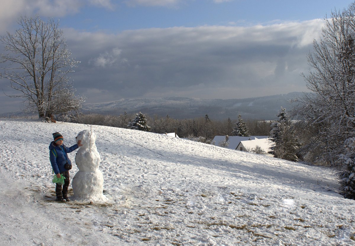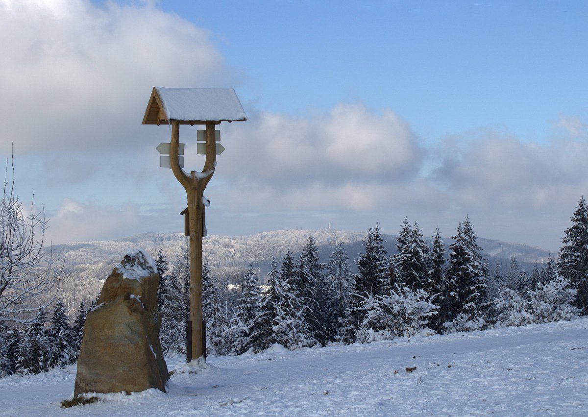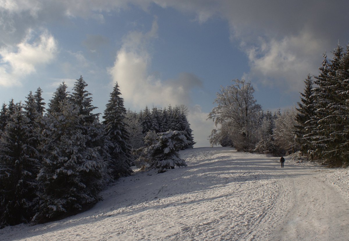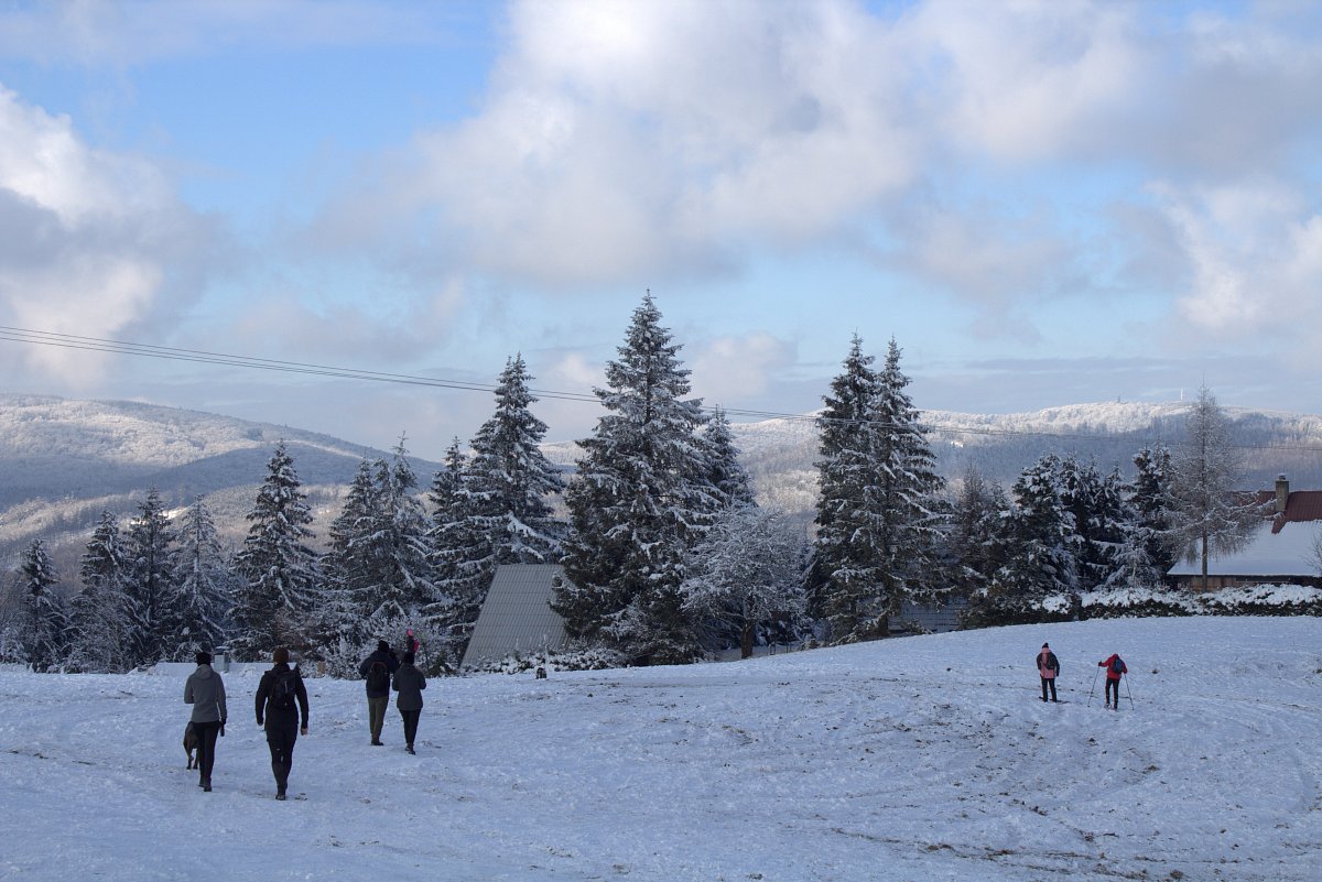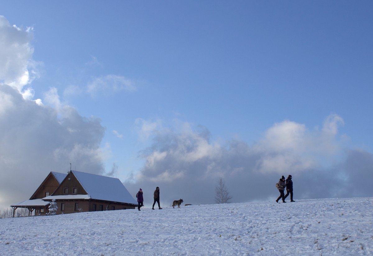 Trošku jsme se posilnili, zahřáli čajem z termosky a vydali jsme se na naplánovanou docela dlouhou cestu zpět, blíž k domovu, na vyhlášenou rekreační destinaci Rusavu. Už pár roků jsme tudy nešli, v hlavě jsme ji měli uloženou spíše jako běžkařskou lyžařskou trasu.