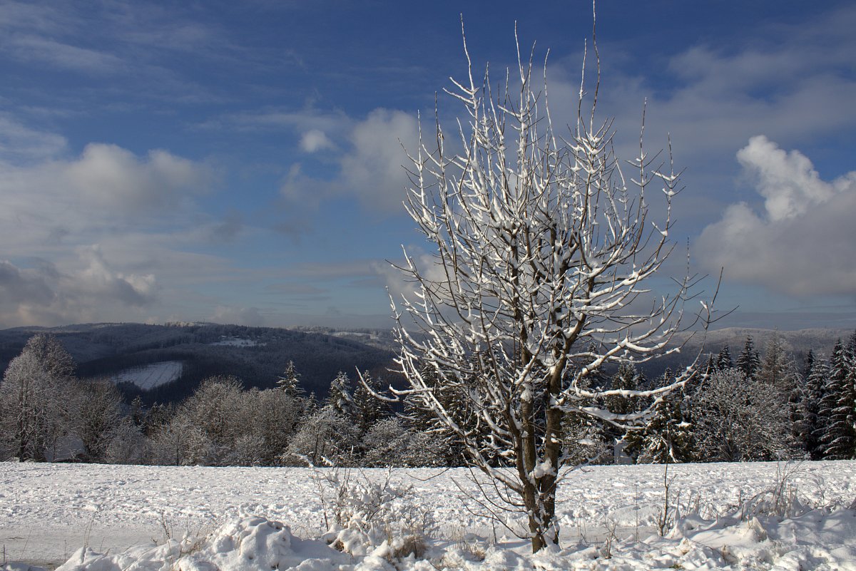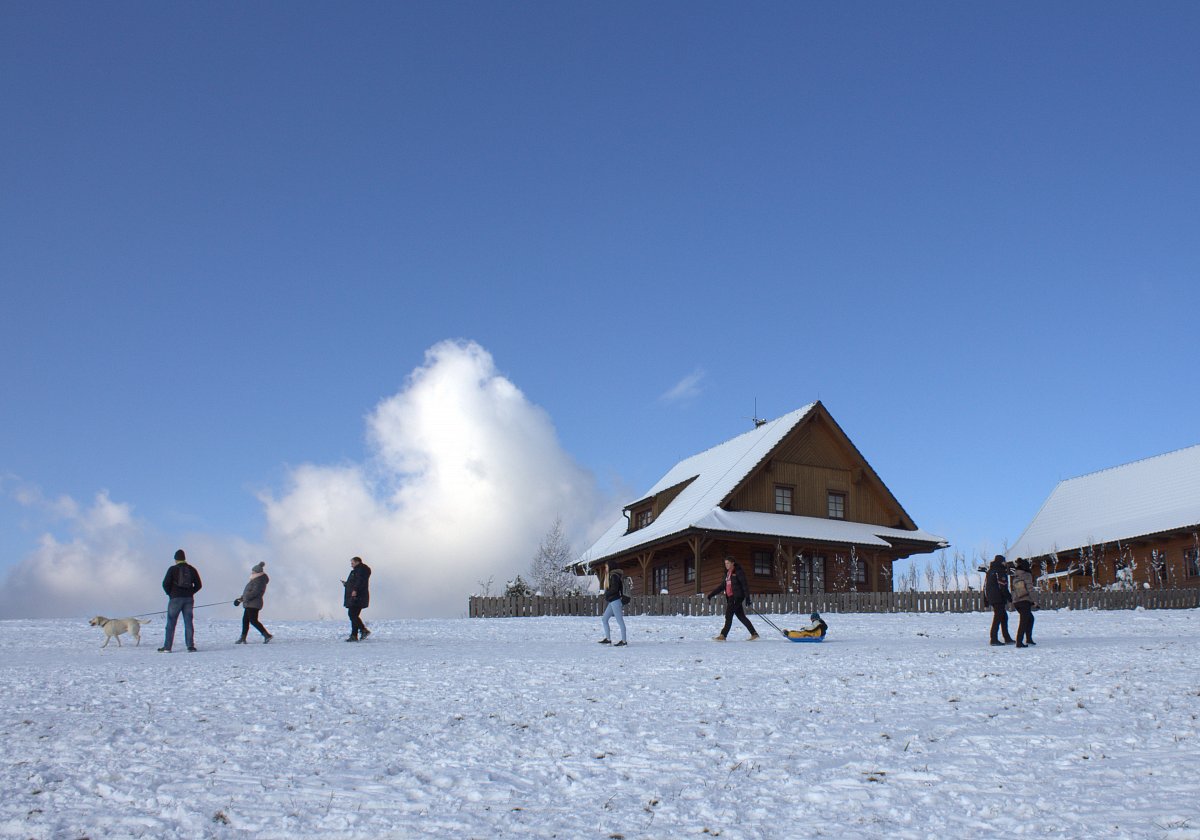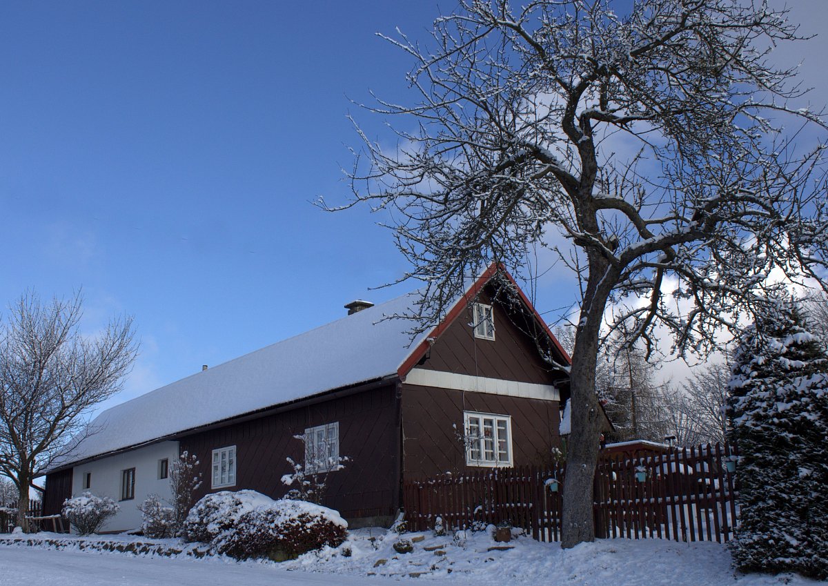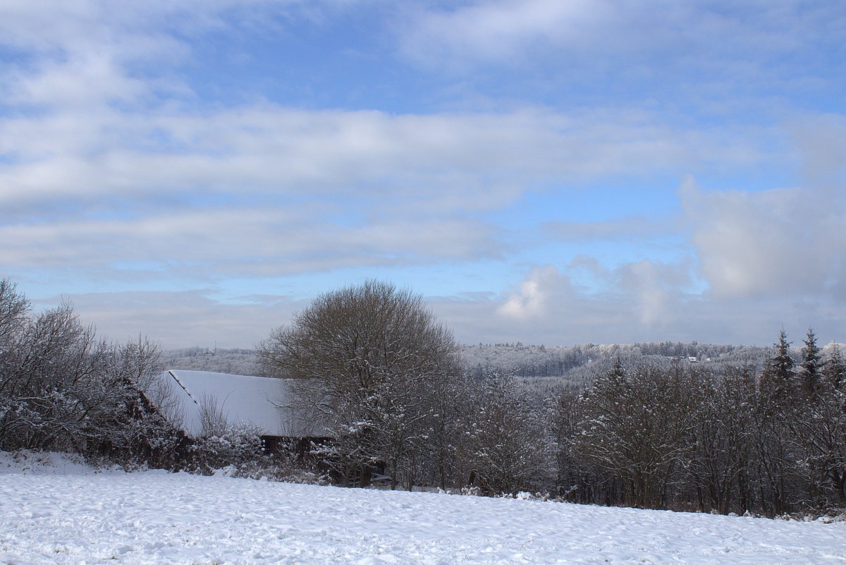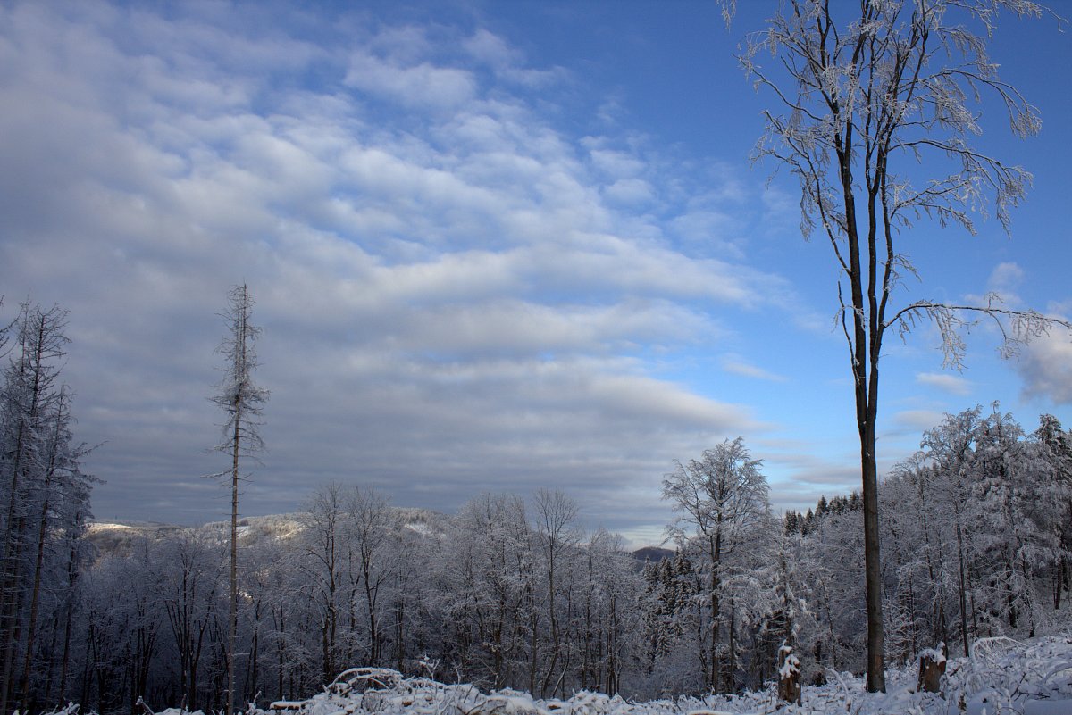 Trošku jsme se posilnili, zahřáli čajem z termosky a vydali jsme se na naplánovanou docela dlouhou cestu zpět, blíž k domovu, na vyhlášenou rekreační destinaci Rusavu. Už pár roků jsme tudy nešli, v hlavě jsme ji měli uloženou spíše jako běžkařskou lyžařskou trasu.