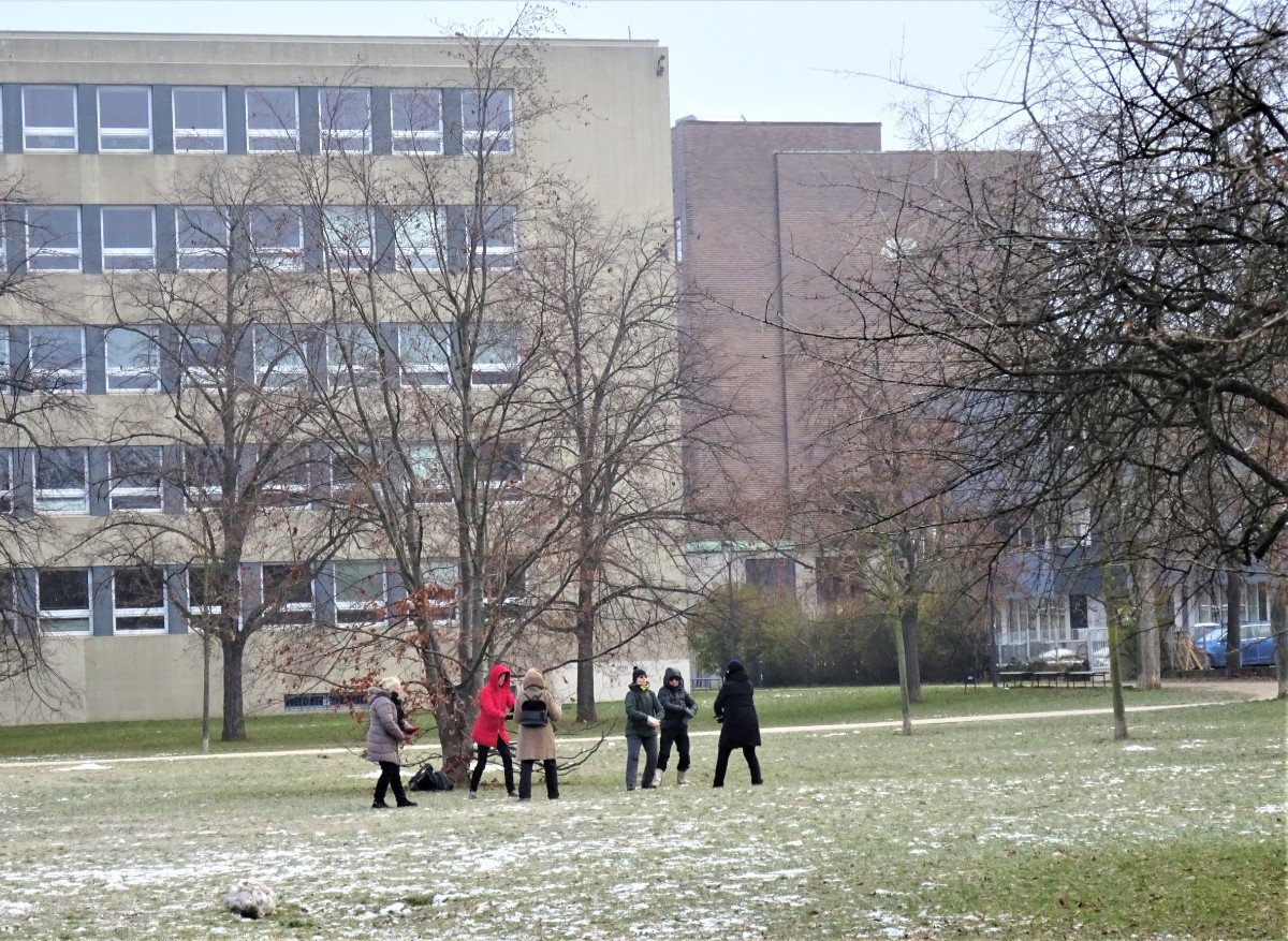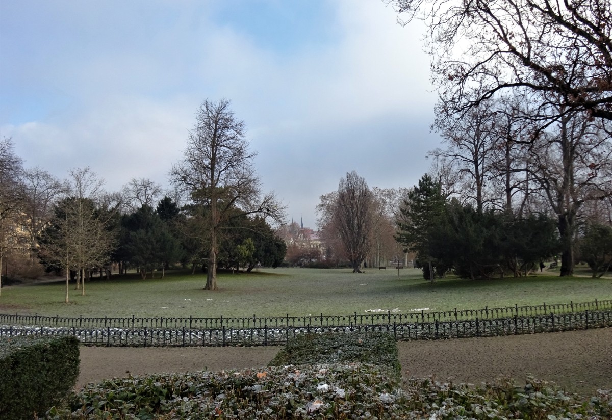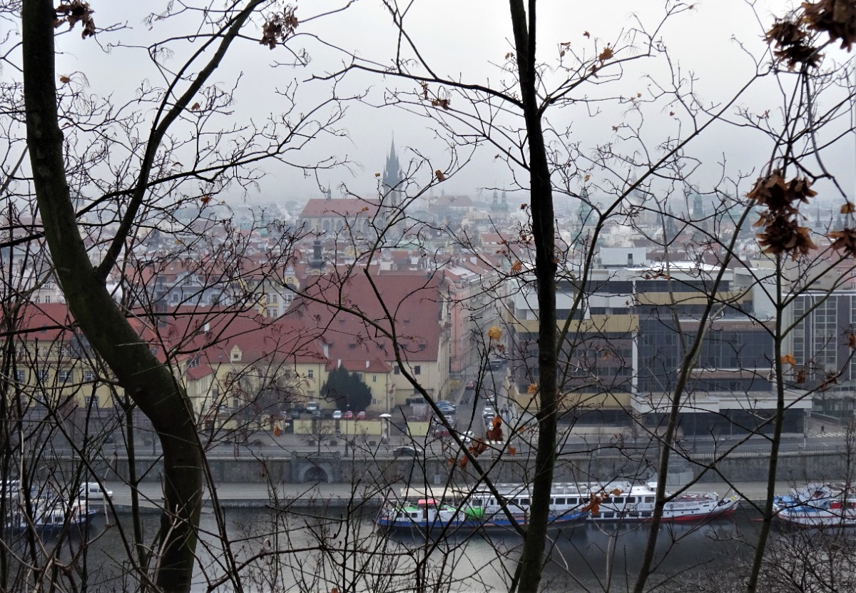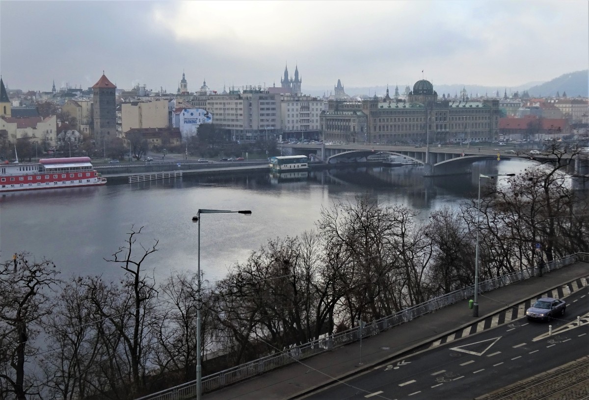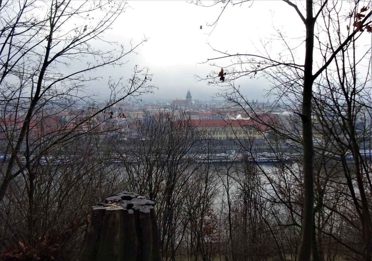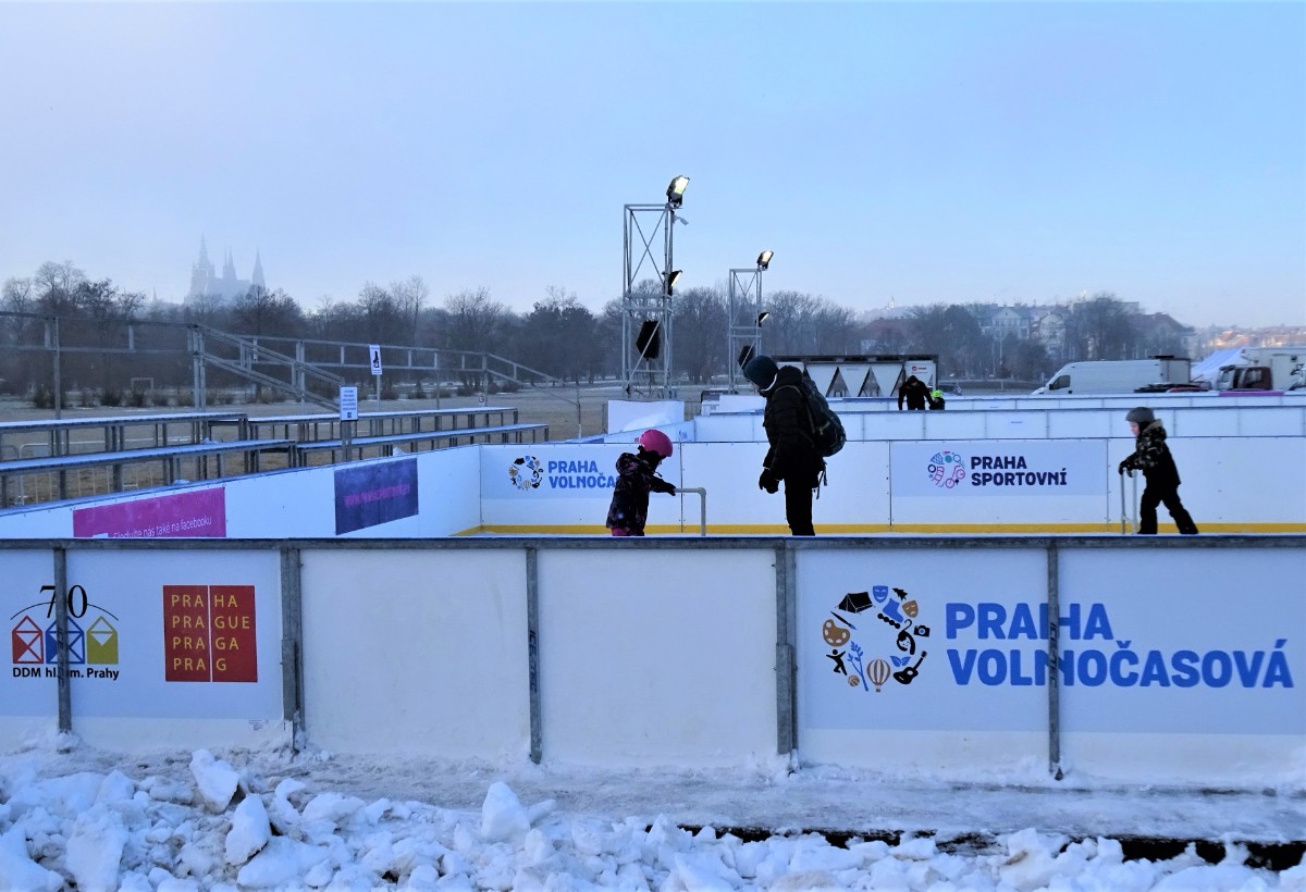 Slunce nepřicházelo, sníh nepadal a já jsem už moc potřebovala pohyb. Vyjela jsem tedy dopoledne na osvědčené místo, na Letnou. Vystoupila jsem u Sparty, abych se podívala na bruslení. Bylo tam několik dětí s rodiči. Pohled na ně, s Pražským hradem v pozadí, mě potěšil. Odtamtud jsem se vracela směrem k Letenskému zámečku, který získal loni novou fasádu, v původní barvě. Jako novorenesanční výletní restaurace byl postaven v roce 1863.