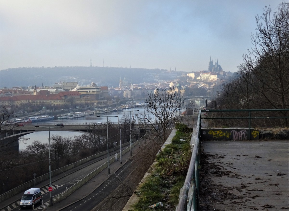Dívala jsem se na město pod sebou, krásné i v lednové mlze. Pokračovala jsem k budově bývalého Expa. Prošla jsem platanovou alejí, kterou ráda fotí Martina. Nakonec jsem se zastavila u kostela sv. Klimenta, nejstarší dochované sakrální stavby na území Prahy 7. Hodinová procházka mi udělala velmi dobře.