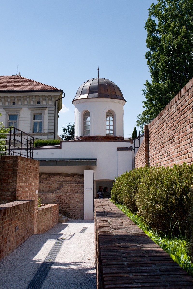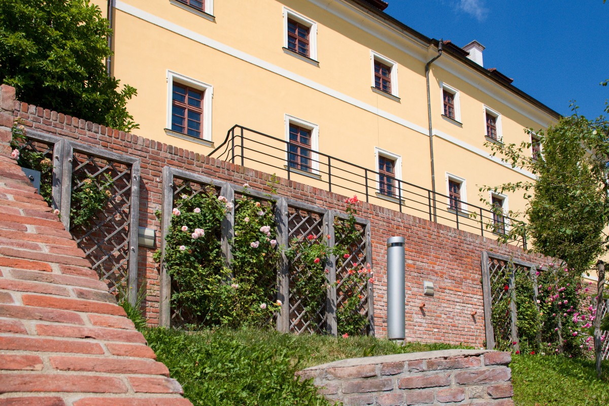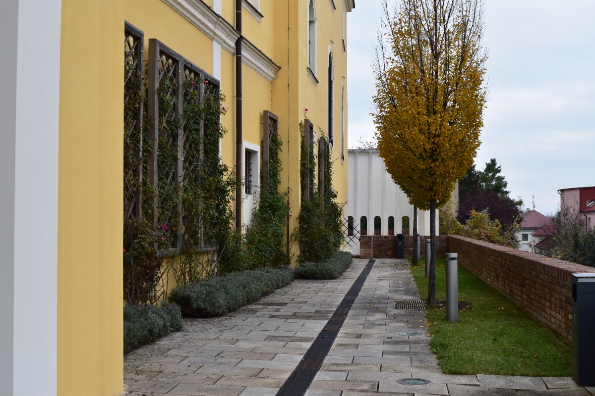 Stinné zákoutí je příjemné v horkém létě, kdy na jižní terasy praží slunce. V pozadí je jedna z kupolí schodiště Bono Publico, která přivádí na schodiště denní světlo.