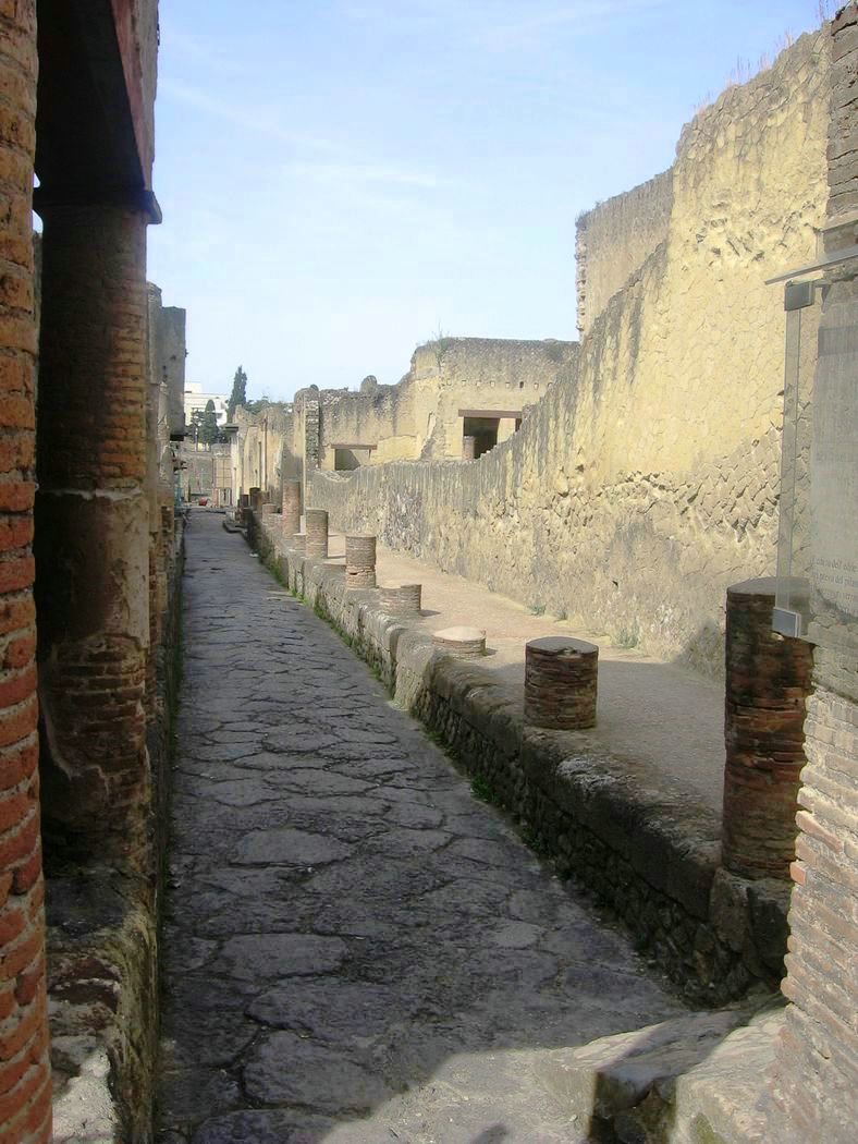 Přímo s posvátnou bázní jsem kráčela ulicí vydlážděnou několik tisíc let starými omletými kameny, nakukovala s pokorou a v duchu i omluvou do jednotlivých domů a představovala si, jak to tam muselo být honosné a krásné. Protože na rozdíl od Pompejí bylo Herkulaneum městem „smetánky“, městem patricijů, a tak tam žilo daleko méně lidí než v Pompejích - zhruba prý tak 4 tisíce.