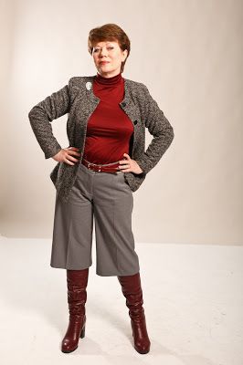 Mnoho žen však kozačky s přibývajícími roky vyřazuje ze svého šatníku a volí raději na chladné dny boty kotníčkové nebo sportovní. Je to škoda, protože kozačky dovedou často jednoduchý outfit povýšit na nepřehlédnutelný. Argumenty proti nim jsou ve vyšším věku většinou následující: Mám silná lýtka, nemůžu sehnat vysoké boty, které pohodlně dopnu. Necítím se v nich, opticky zkracují nohy. Málo nosím sukně, takže je nevynosím. Nelíbí se mi kalhoty nacpané v kozačkách.