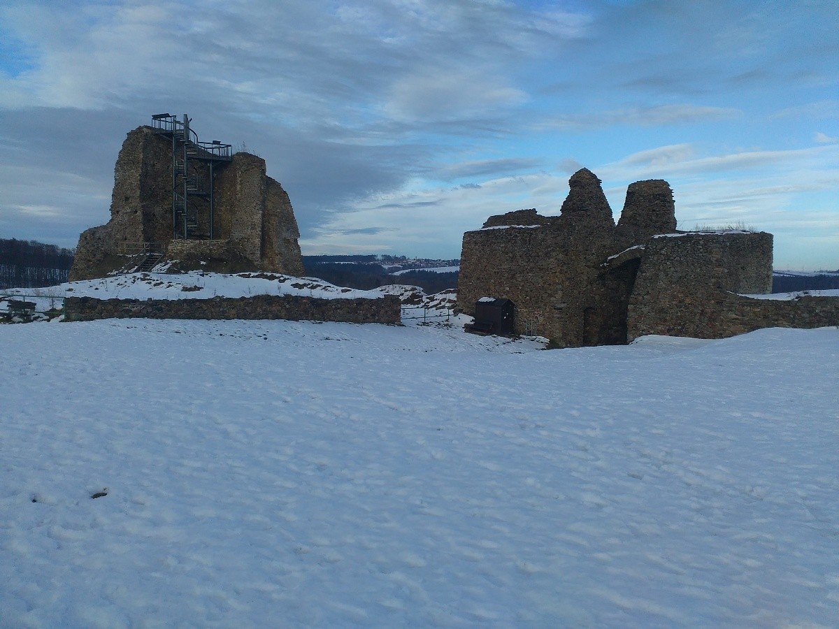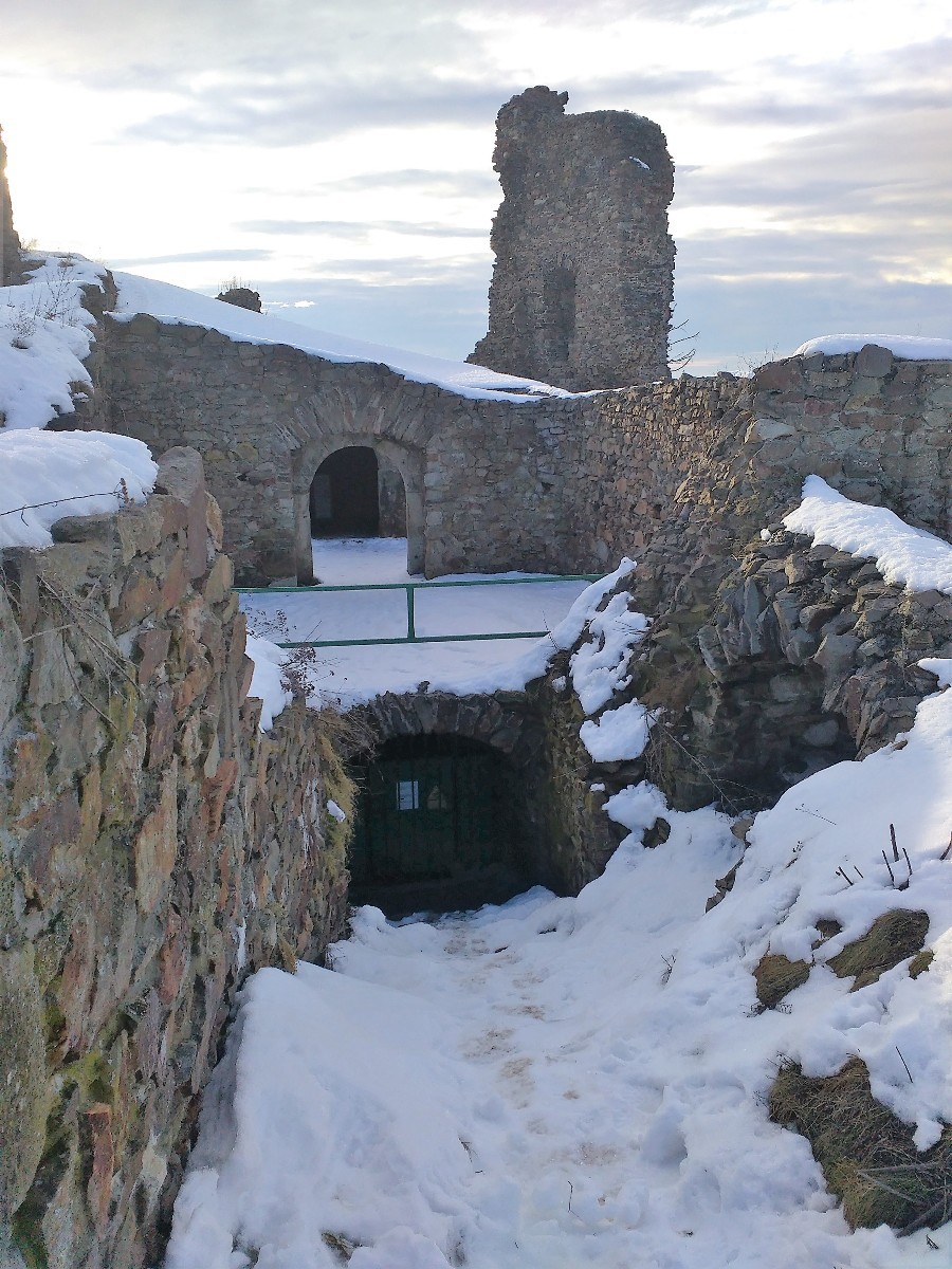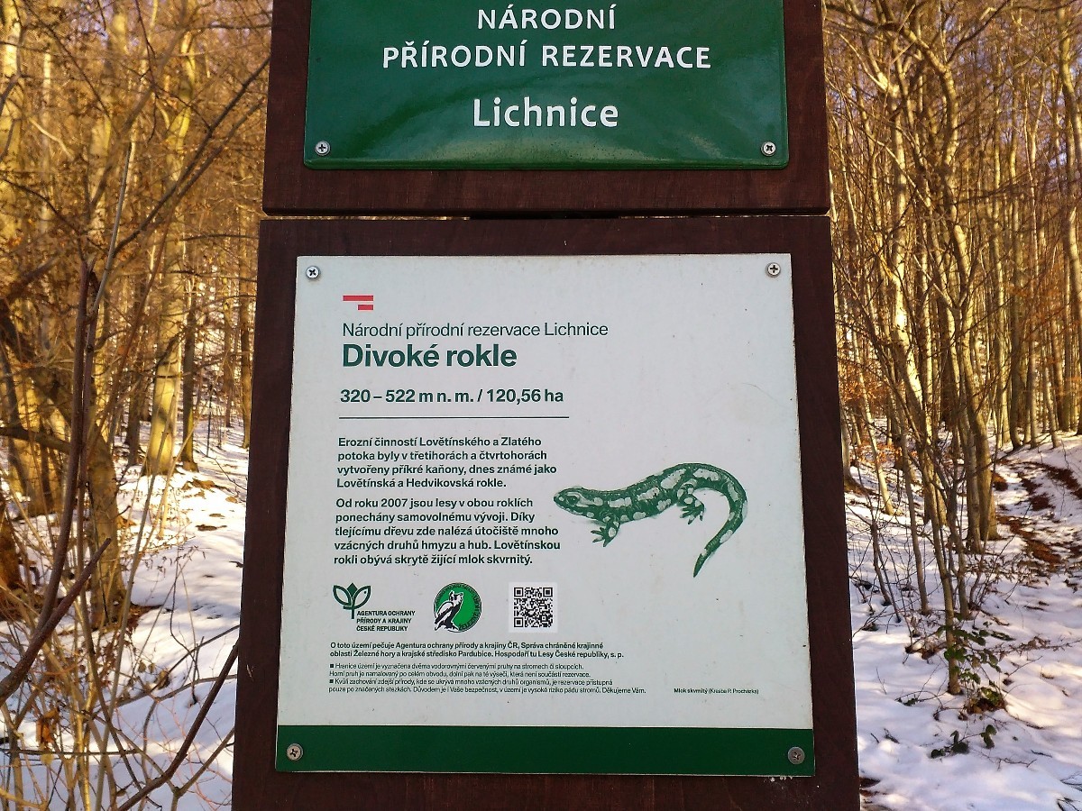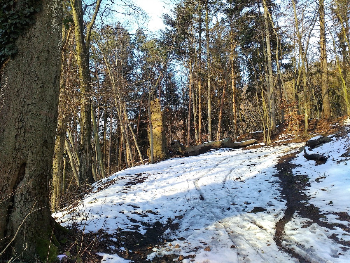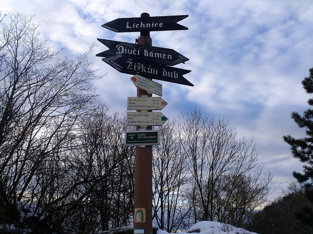 Lákalo mě podívat se někam, kde jsem ještě v zimě nikdy nebyla. S ohledem na všude přítomný koronavir jsem neměla chuť cestovat příliš daleko. Vydala jsem se tedy do Třemošnice. Autobus byl poloprázdný a na konečnou jel pouze řidič, pak nějaký pán středního věku, a já. Směřovala jsem po mostě nad Zlatým potokem k rozcestníku turistických cest. Mým cílem byla zřícenina hradu Lichnice. Od původního záměru jít po delší naučné stezce jsem ustoupila, když jsem si vyzkoušela, jak to všude po ledových zmrazcích klouže. Stoupala jsem tedy jen zhruba 3 km značenou lesní cestou. Potkala jsem pouze v dolní části dělníky, kteří tam likvidovali stromy z vývratů. Upozornili mě na nebezpečí klouzačky. Intuice mě také nabádala k opatrnosti. Pomalu a ostražitě jsem našlapovala a přibližovala jsem se k vytouženému cíli.