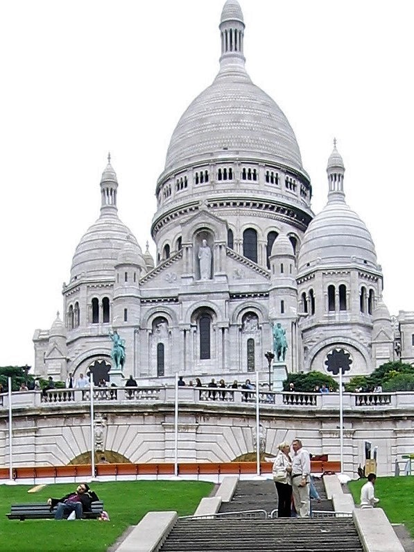 A když už jste v Paříži, musíte zkrátka i na Sacre Ceur, Moulin Rouge, vidět, kde stojí Olympia, kde vystupovala Edith Piaf a řada dalších umělců a samozřejmě se projít po Montmartru, místu malířů. La Defénse mne nenadchlo, Eiffelovku jsme viděli hned po příjezdu, když jsme dorazili autobusem a zrovna byl už večer a pršelo. A teď mám vlastně historickou fotku chrámu Notre Dame ještě se dvěma věžemi…
