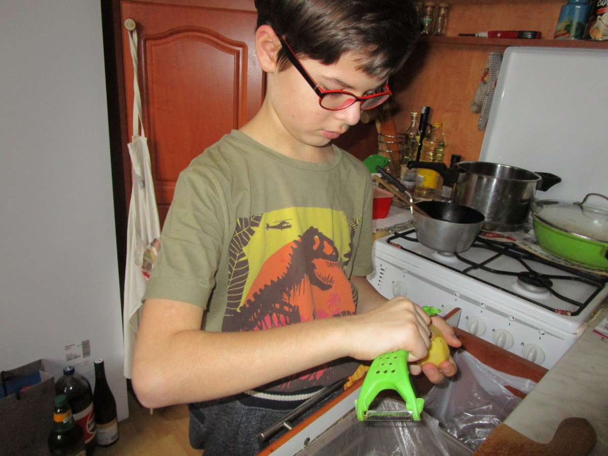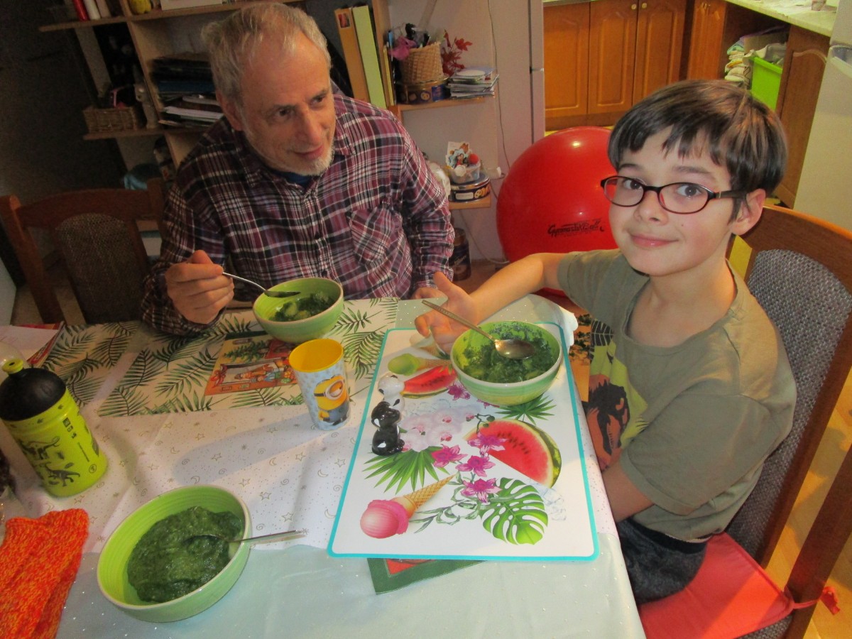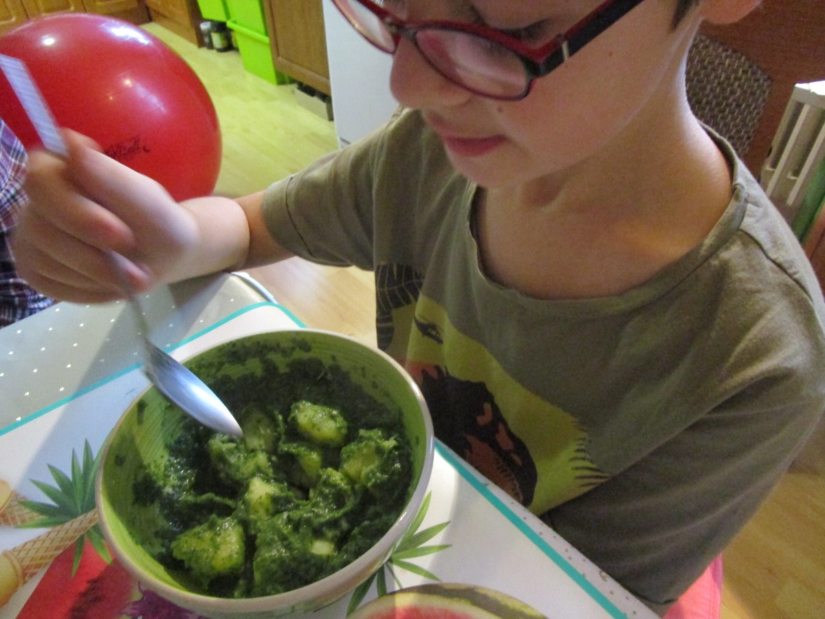 Máme dnes špenát a to úplně jinak chutná, když víš, že sis brambory naškrábal sám.
