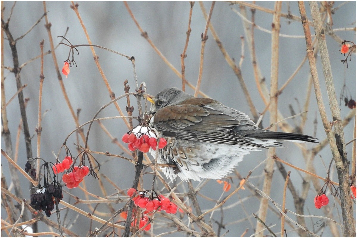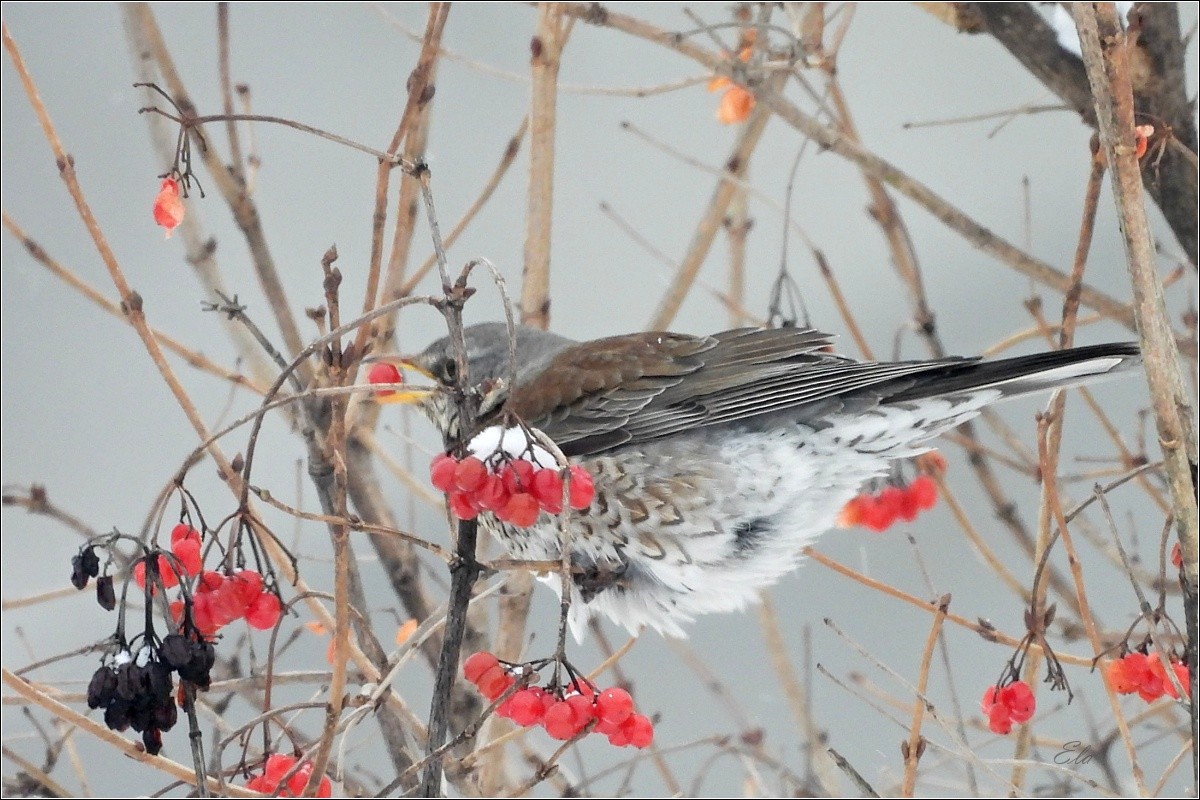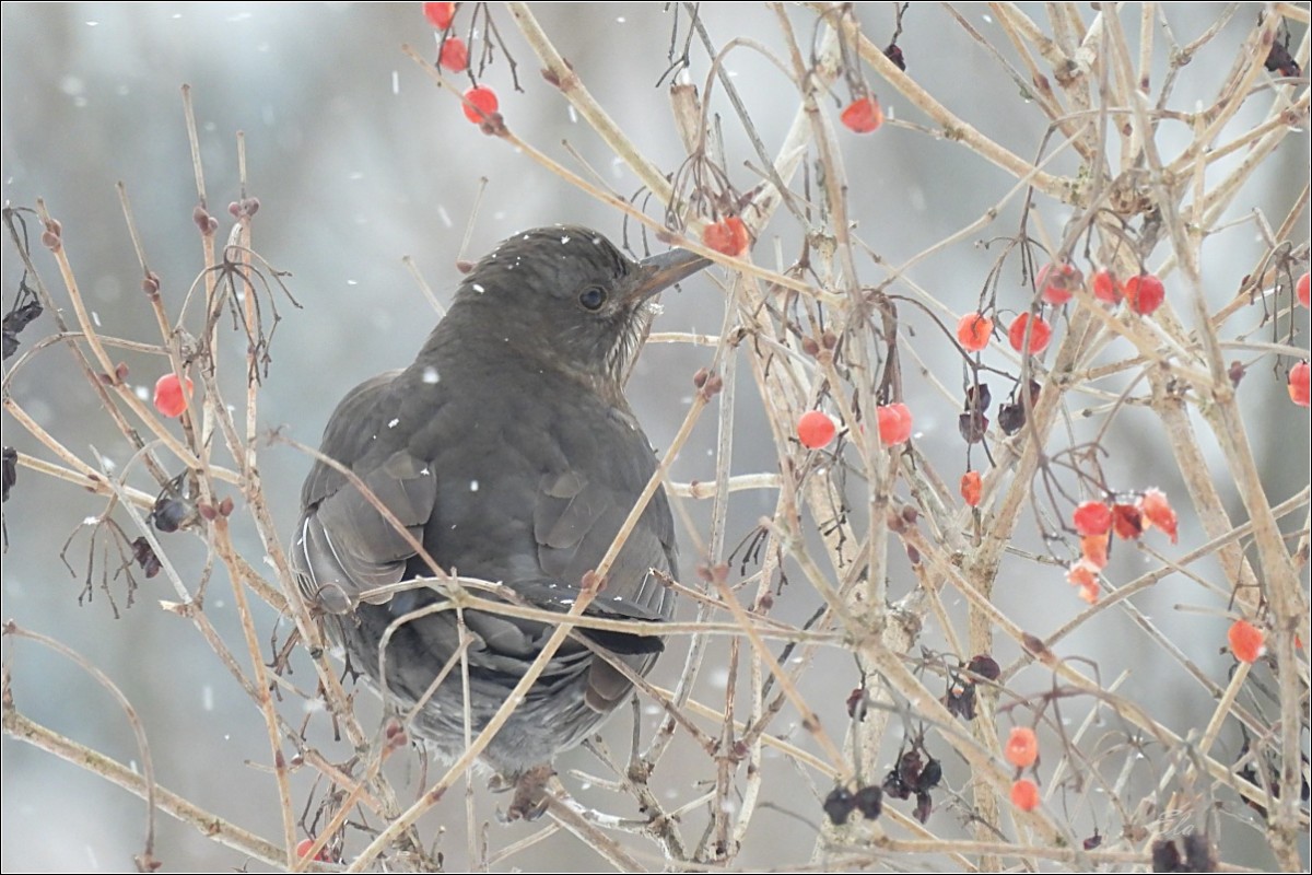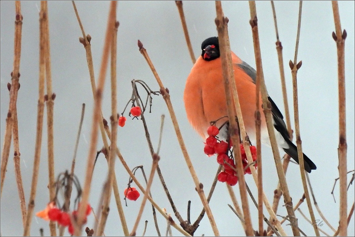 Ptačí říše je bohatá nejen na množství druhů ptáků, ale také na jejich barvy, hlasy a způsoby. V dlouhou a krutou zimu mnoho ptáků zahyne hladem, a tak mám opravdu radost ze všech těch krmítek, která vídám na svých toulkách. Keře a stromy jsou již většinou holé, bobule snězené, a to i ty, jež zůstávají v mírných zimách nepovšimnuté až do jara.